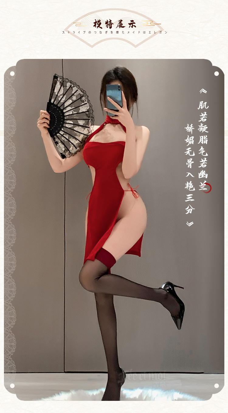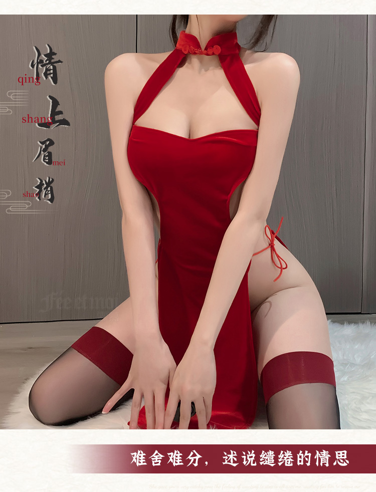 【情趣内衣】霏慕 高开衩分片绑带丝绒旗袍6701 情趣内衣诱惑制服激情