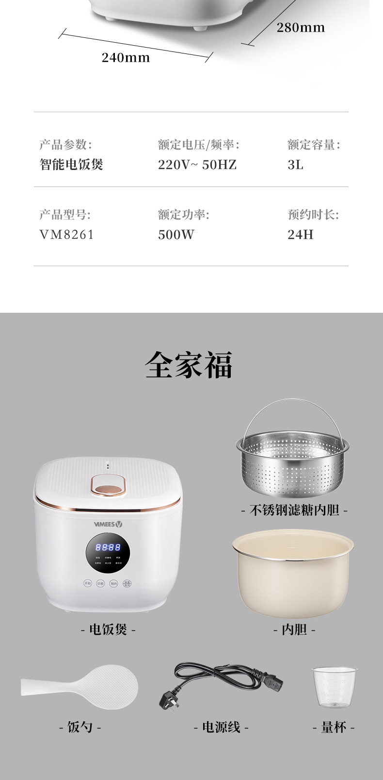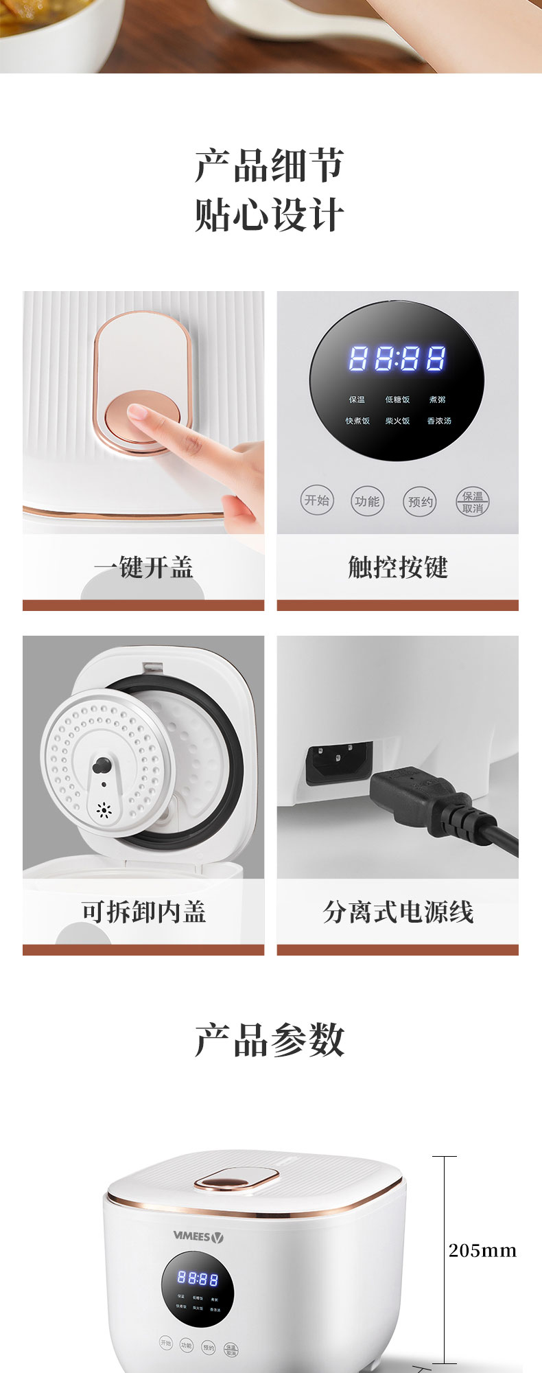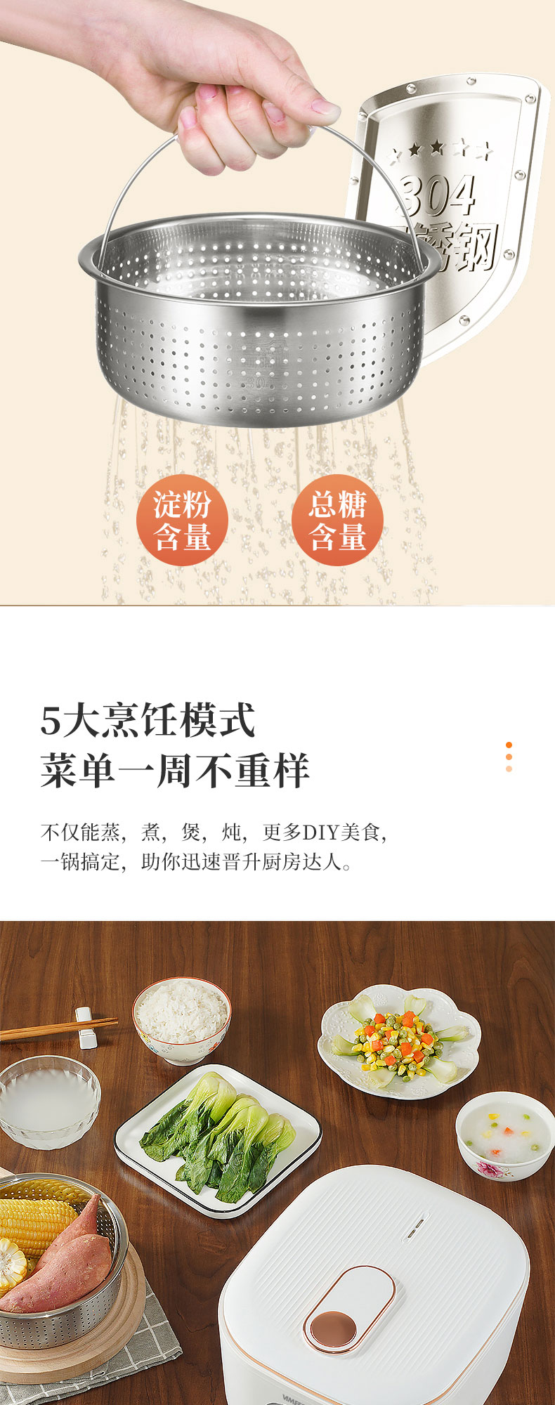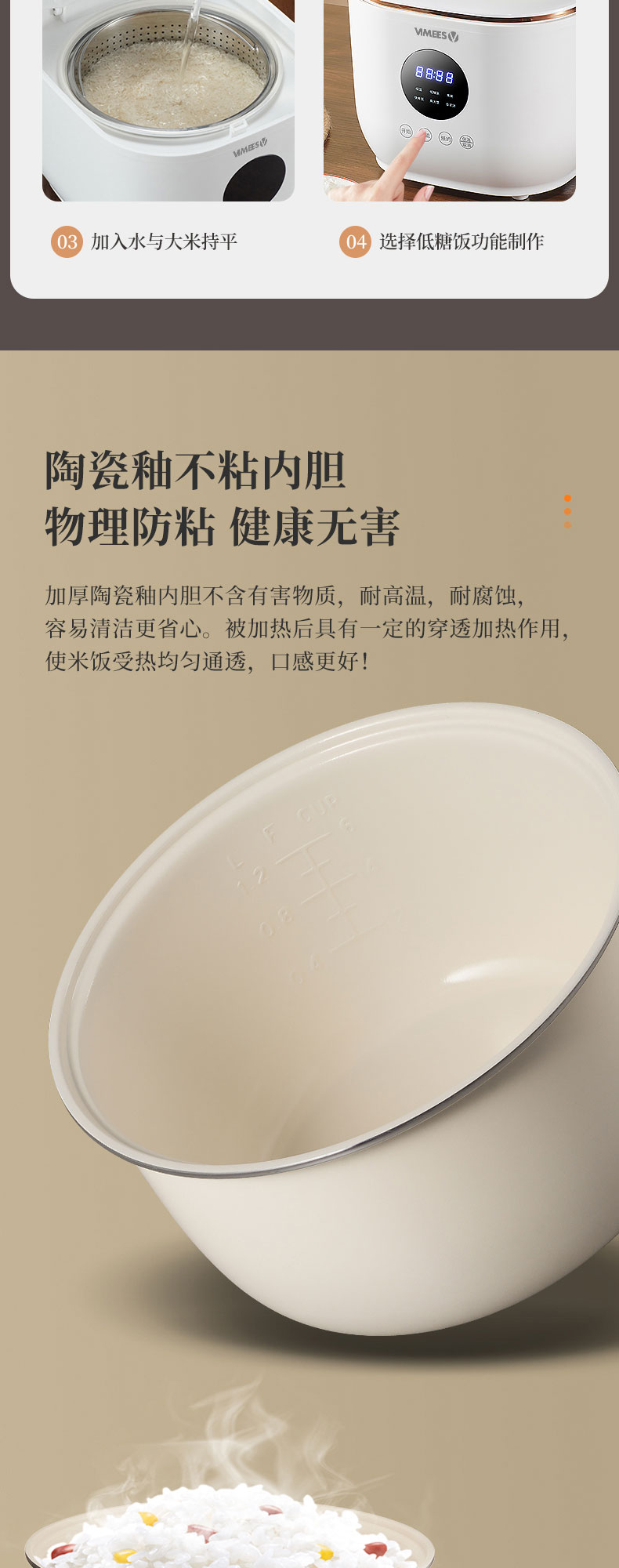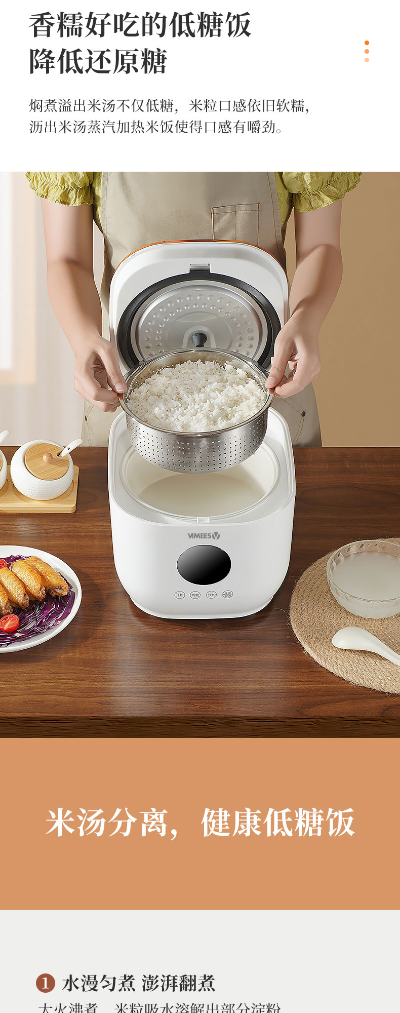 维米仕(vimees)3L智能脱糖电饭煲 白色VM8261