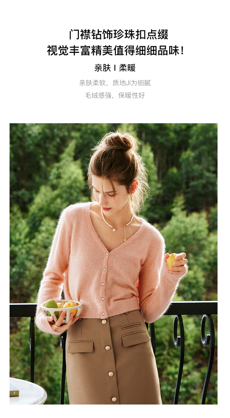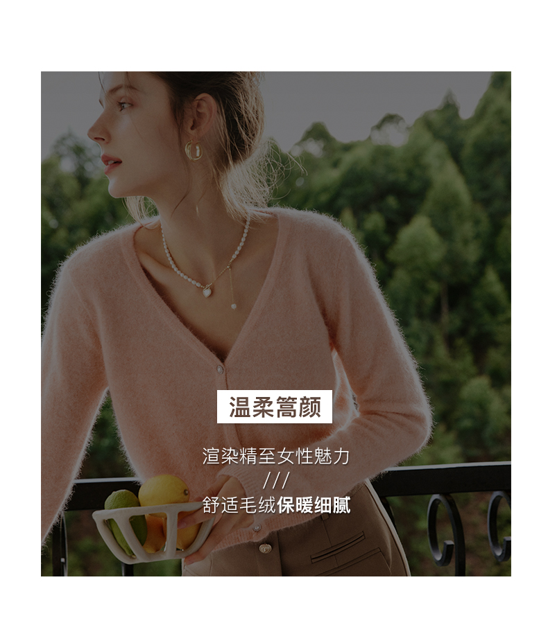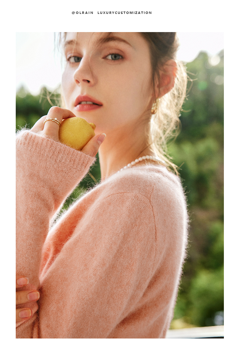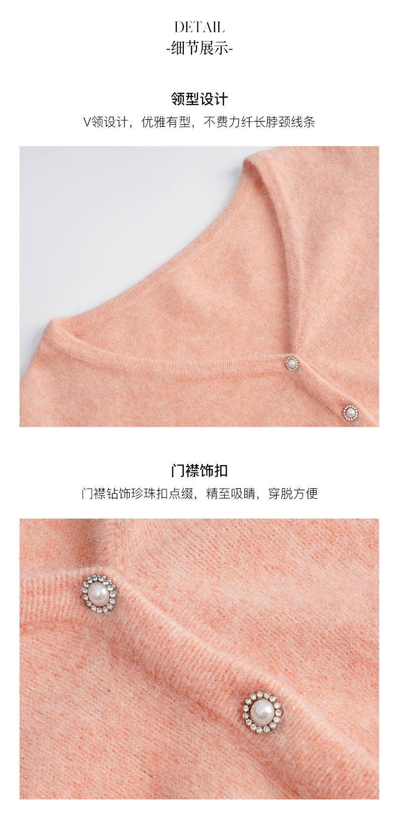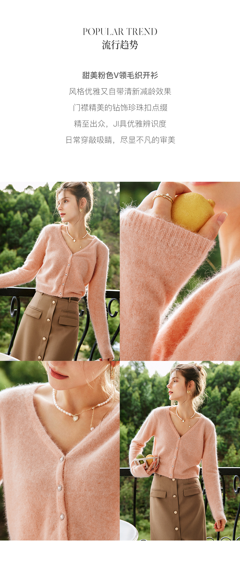 OLrain法式粉色针织开衫女早秋2022新款气质甜美薄款v领毛衣外套