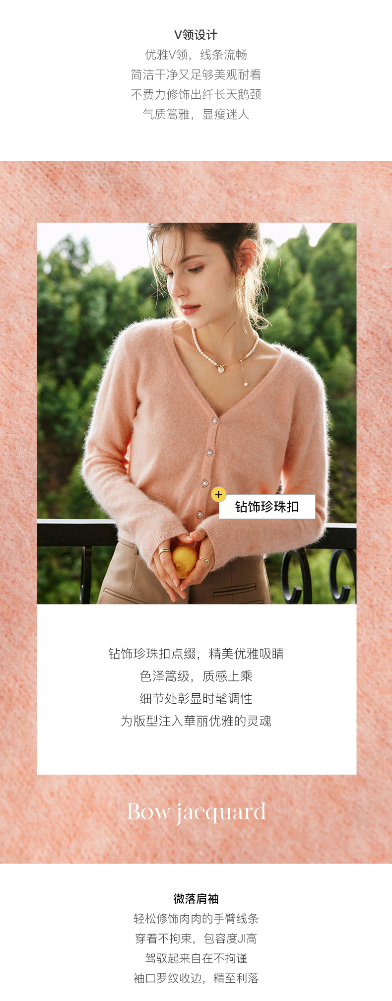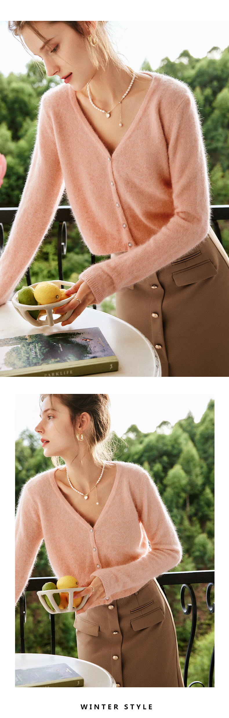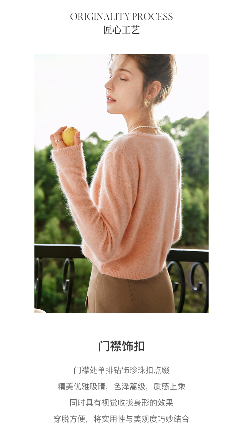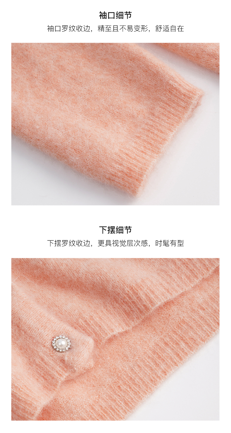 OLrain法式粉色针织开衫女早秋2022新款气质甜美薄款v领毛衣外套
