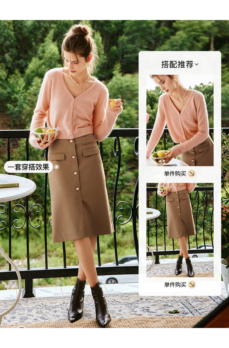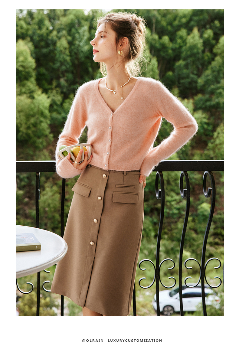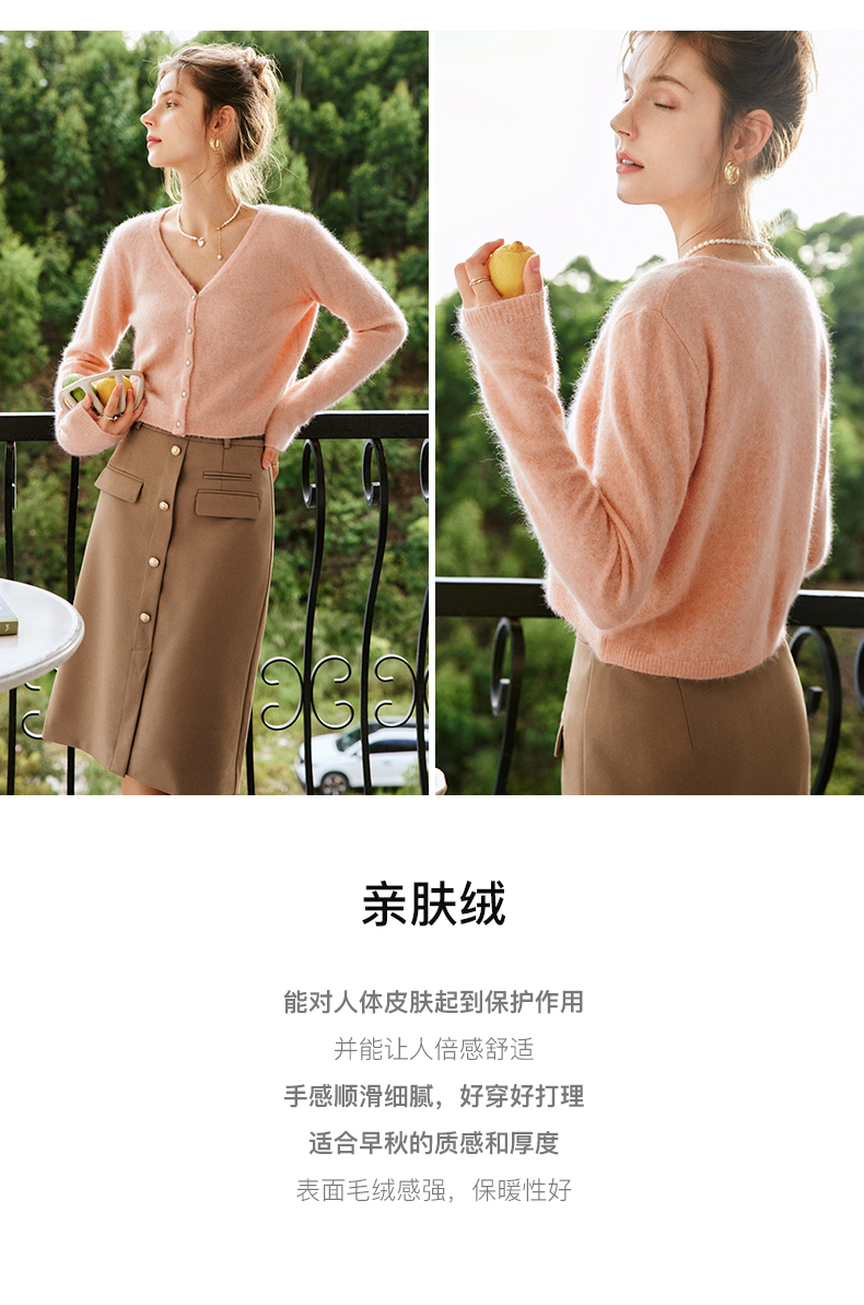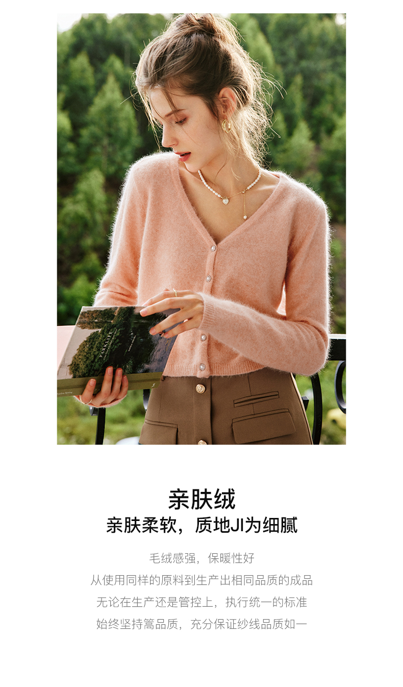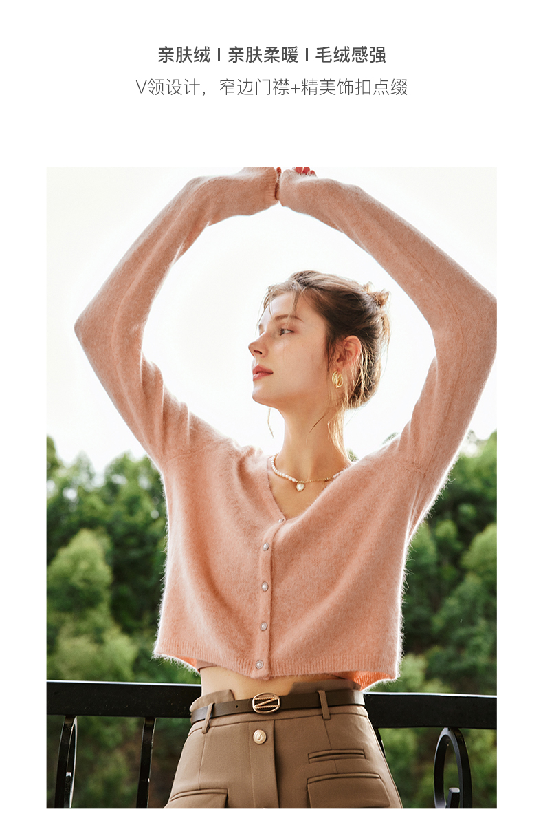 OLrain法式粉色针织开衫女早秋2022新款气质甜美薄款v领毛衣外套