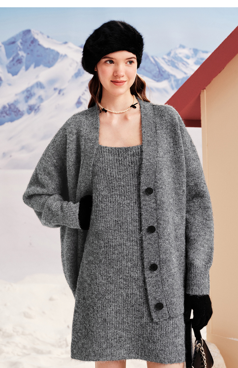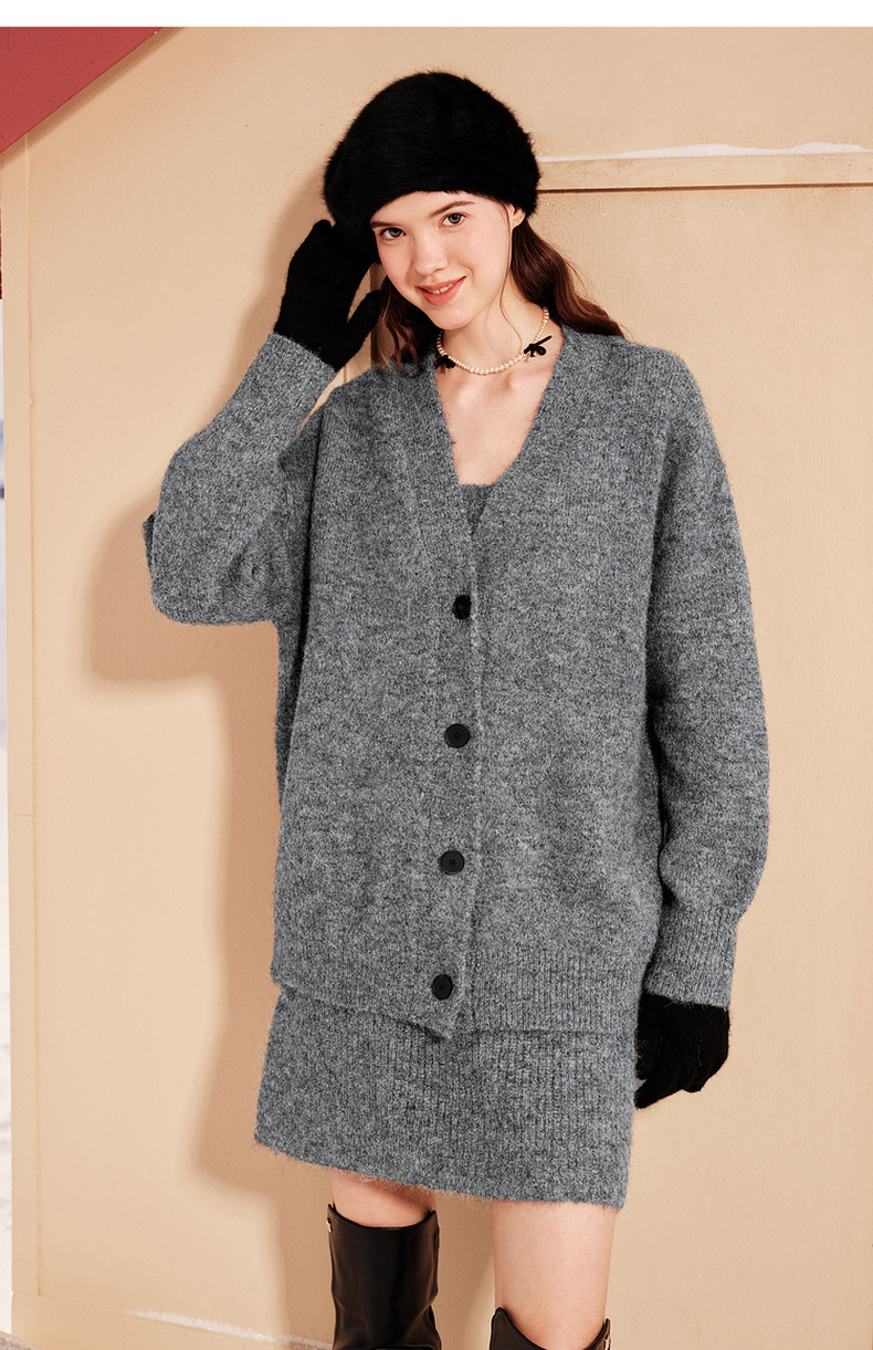 【严选】诗凡黎冬宽松羊驼毛开衫SEA431401
