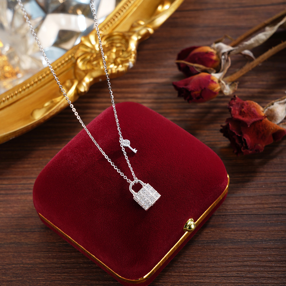 【寓意】:纯银项链,钥匙与锁扣相映成趣,寓意在时光长河中缔结独一无二的契约,收获真挚与圆满。