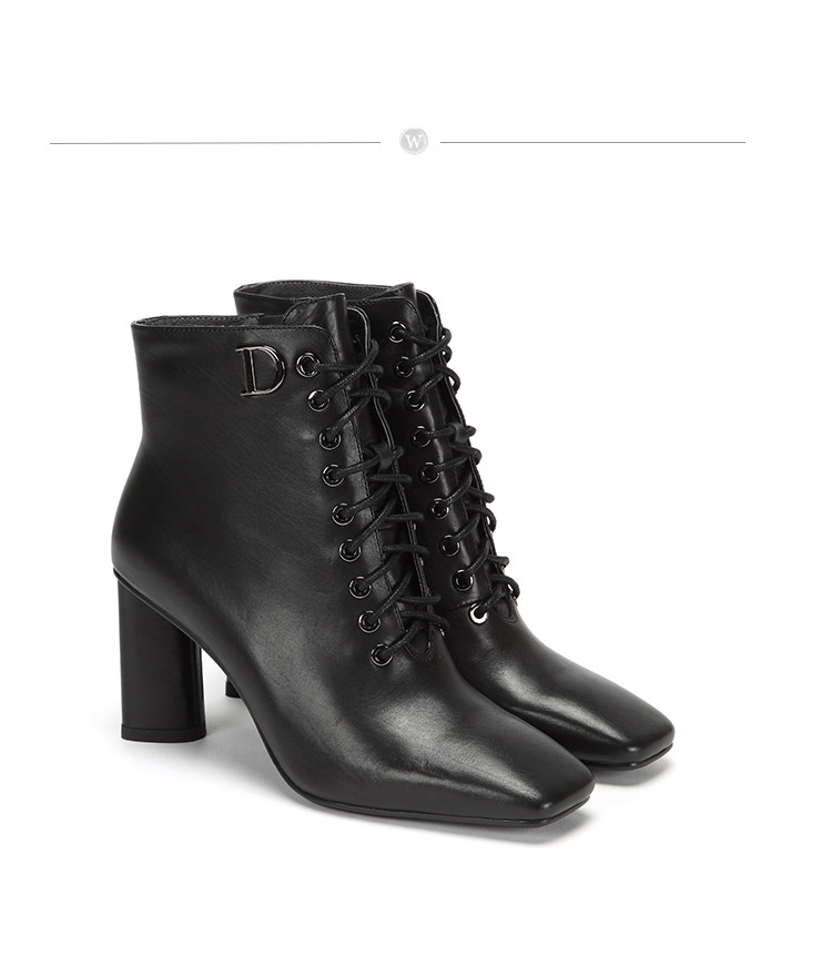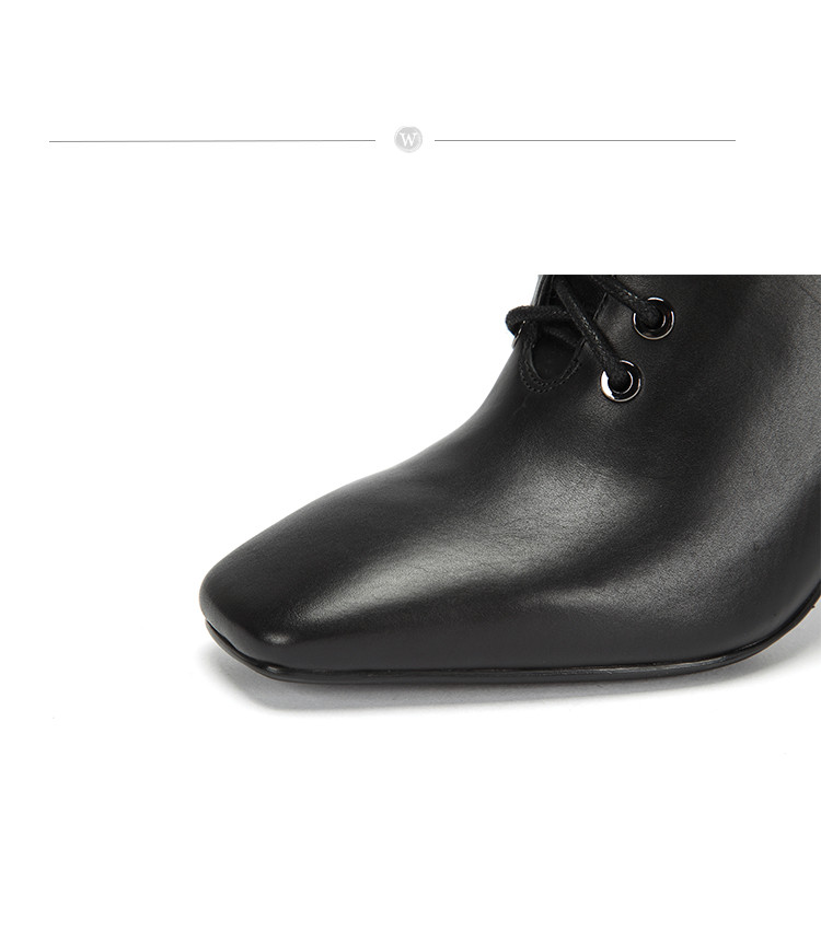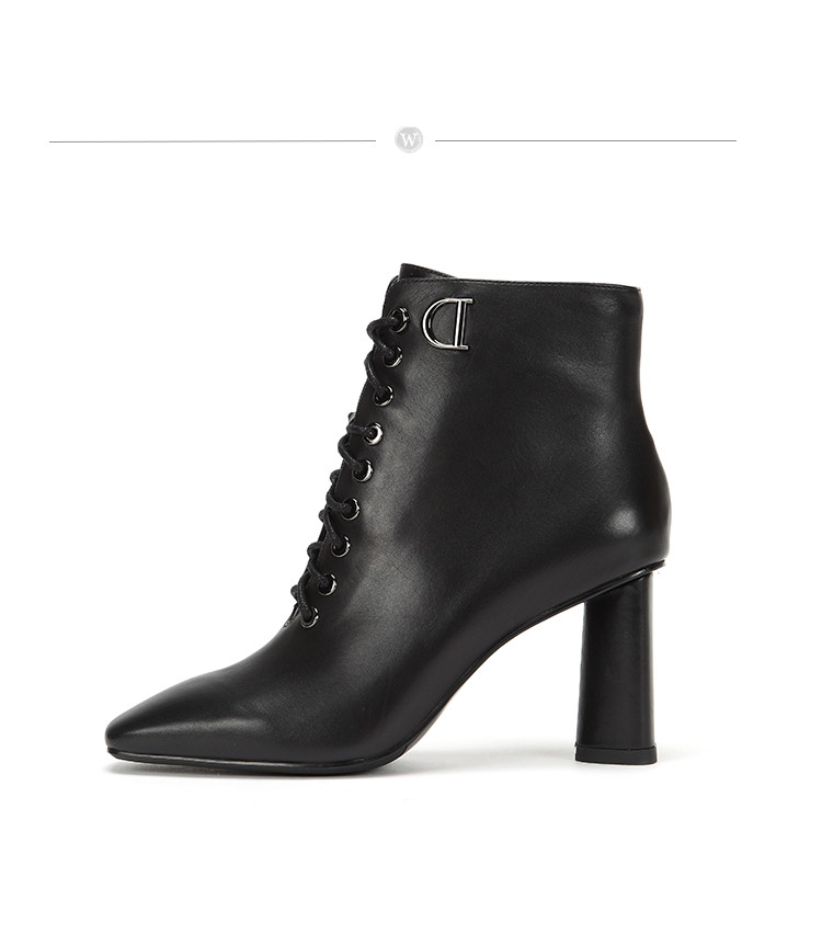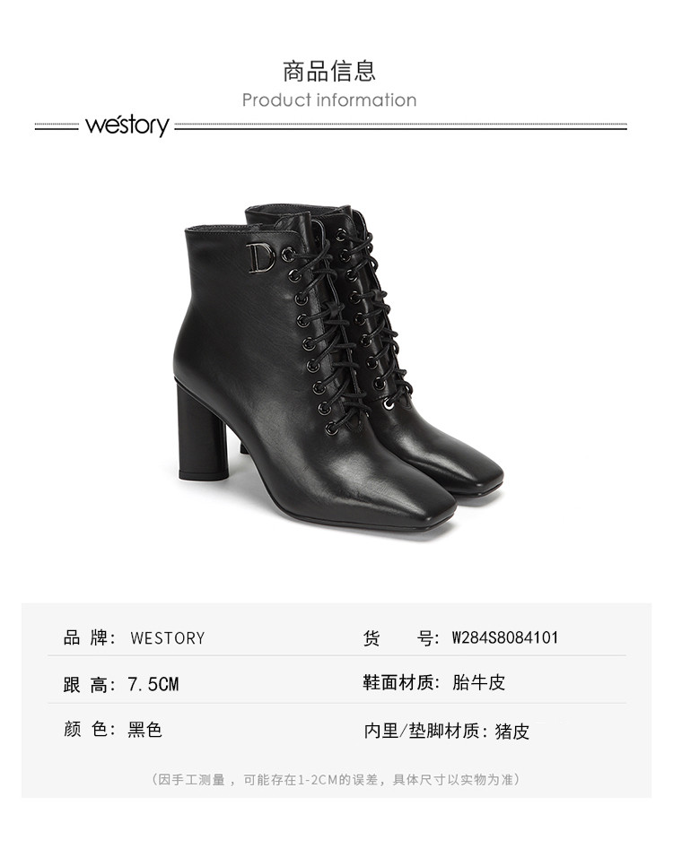 westory商场专柜同款胎牛皮简约纯色百搭社交职场方头扁跟短靴W284S80841