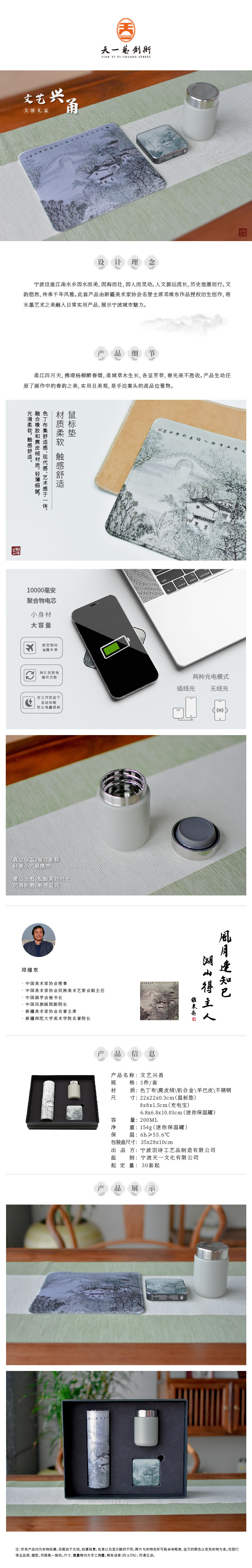 羽诗制造出品 文艺兴甬套装邓维东宁波写生款鼠标垫充电宝焖烧杯文创礼盒