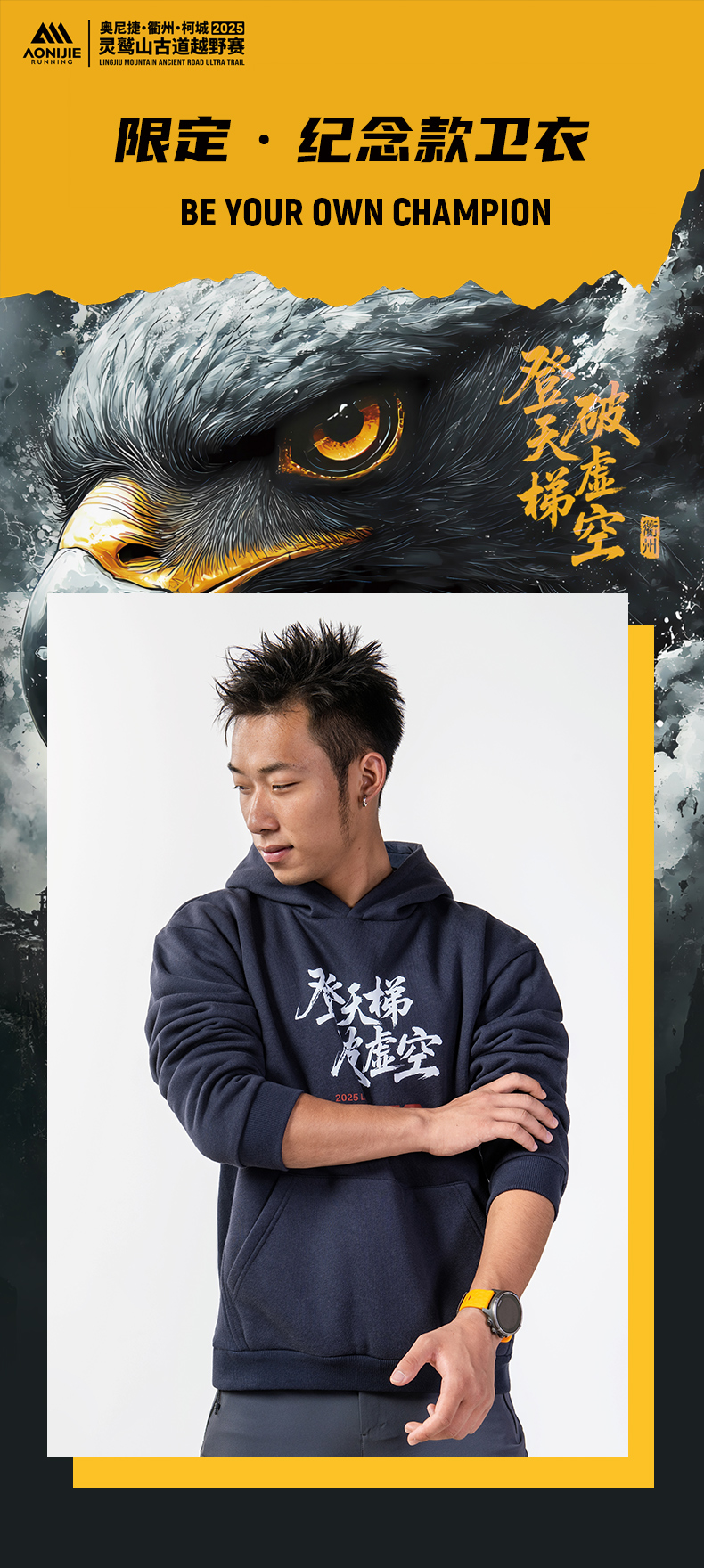 奥尼捷灵鹫山越野赛纪念版卫衣加绒运动休闲连帽运动卫衣