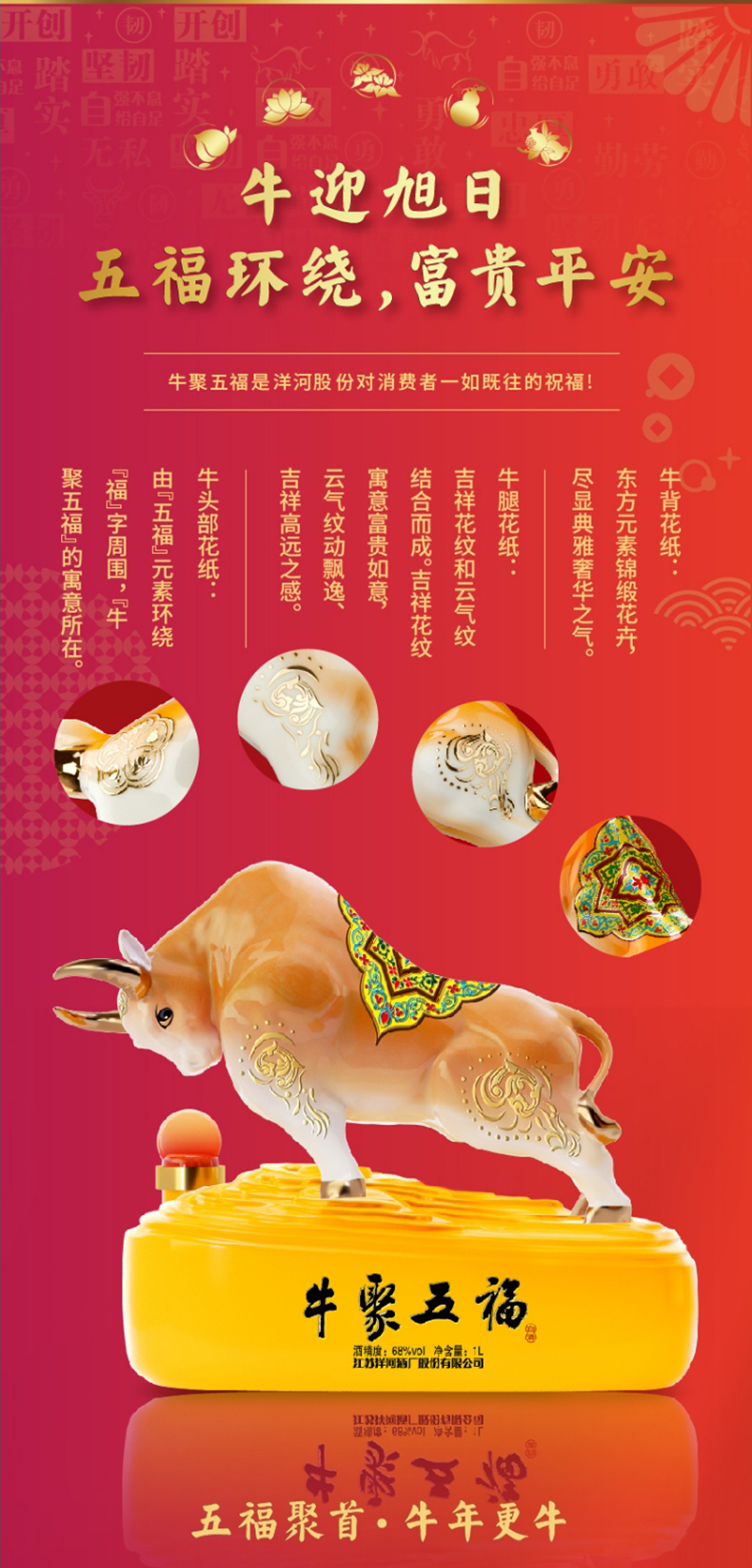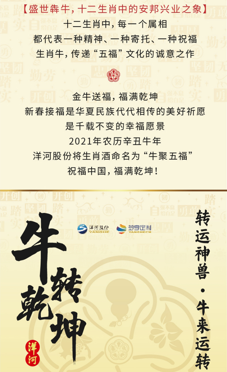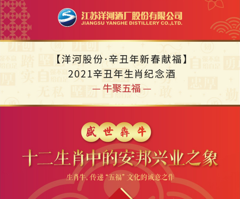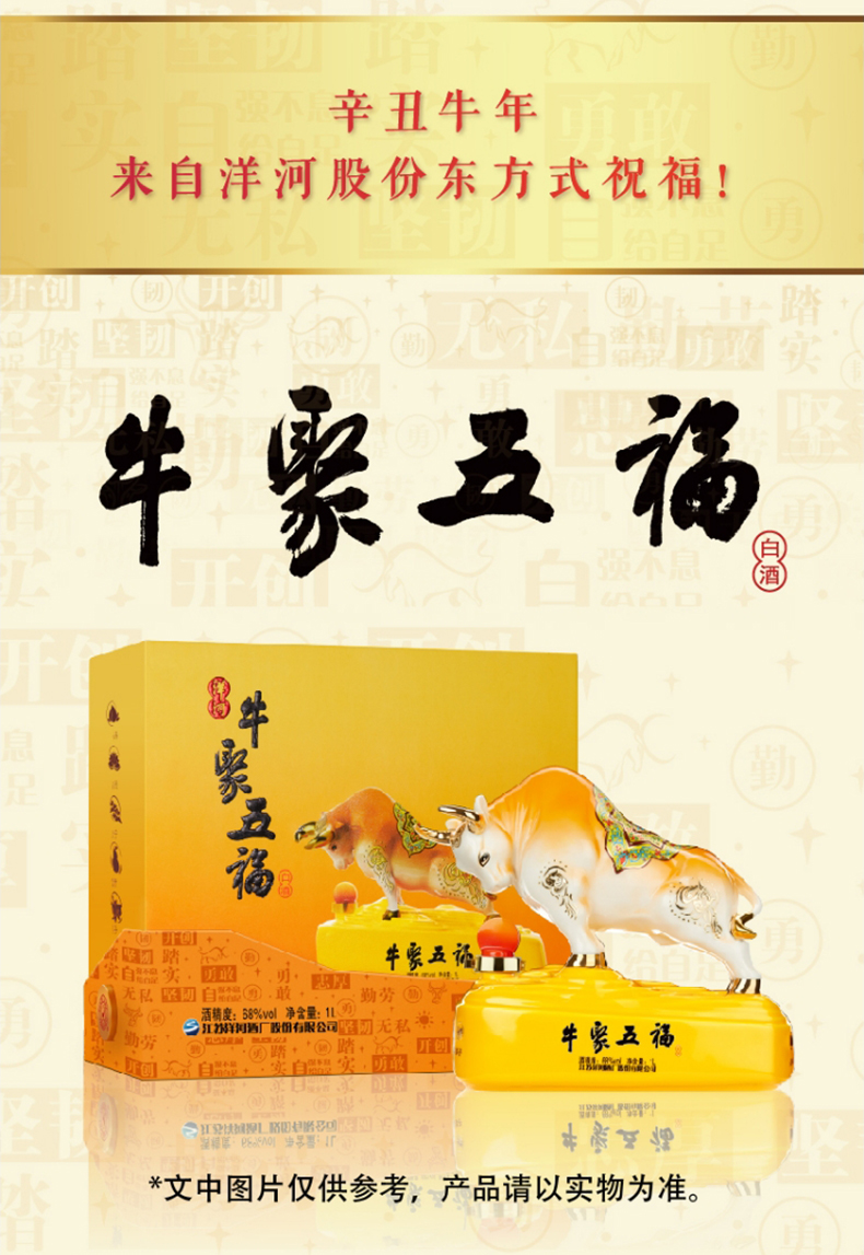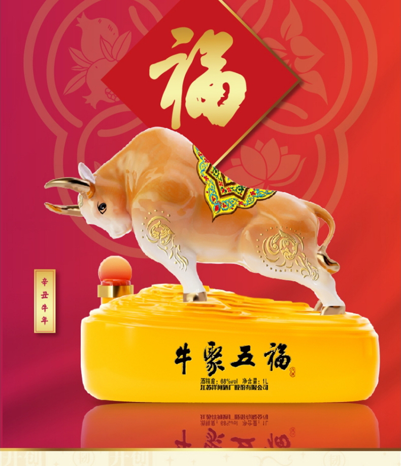 洋河牛年生肖酒 牛聚五福 68度1L(1000ml)礼盒装 高端收藏 传承佳酿 72小时发货 谢师宴
