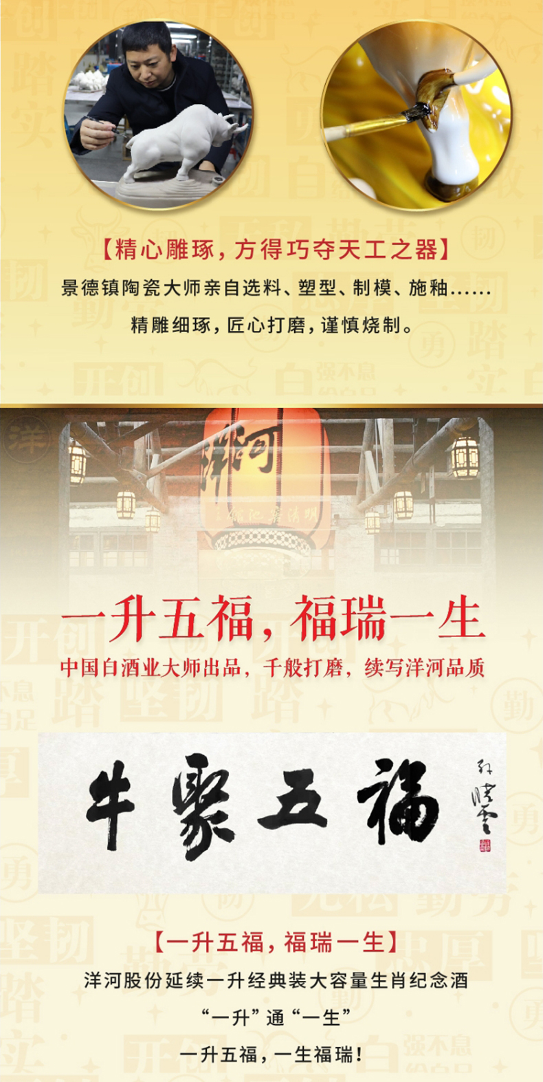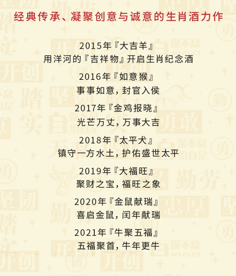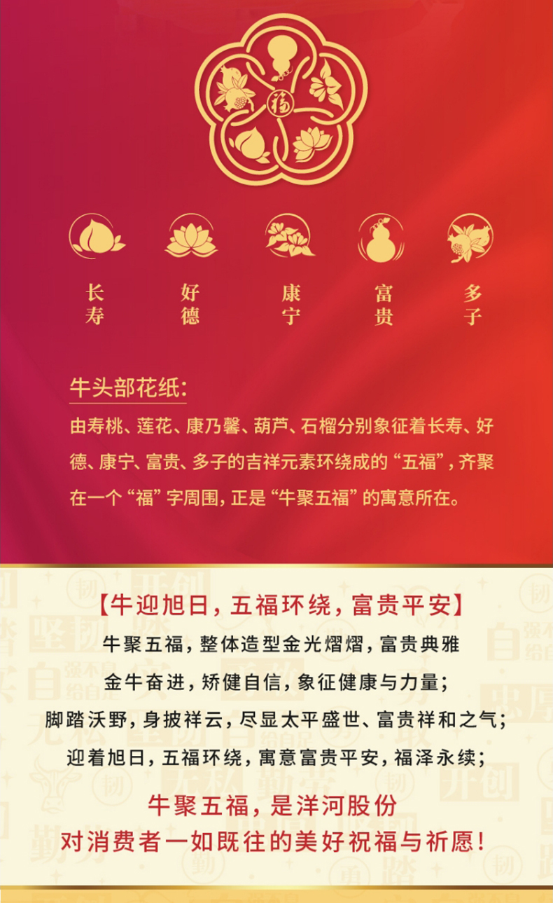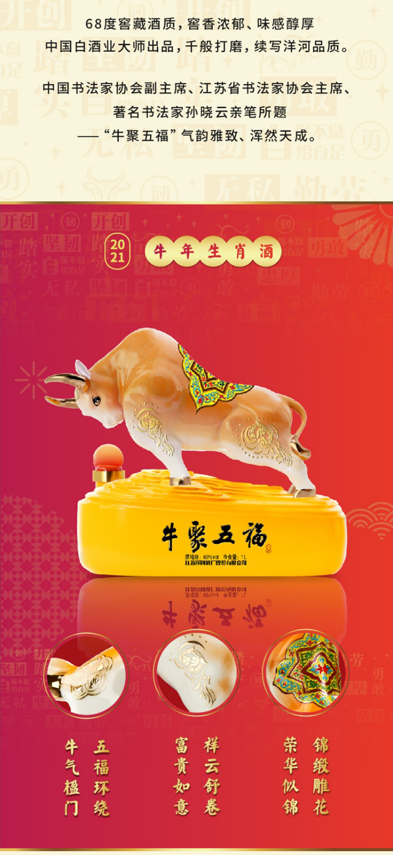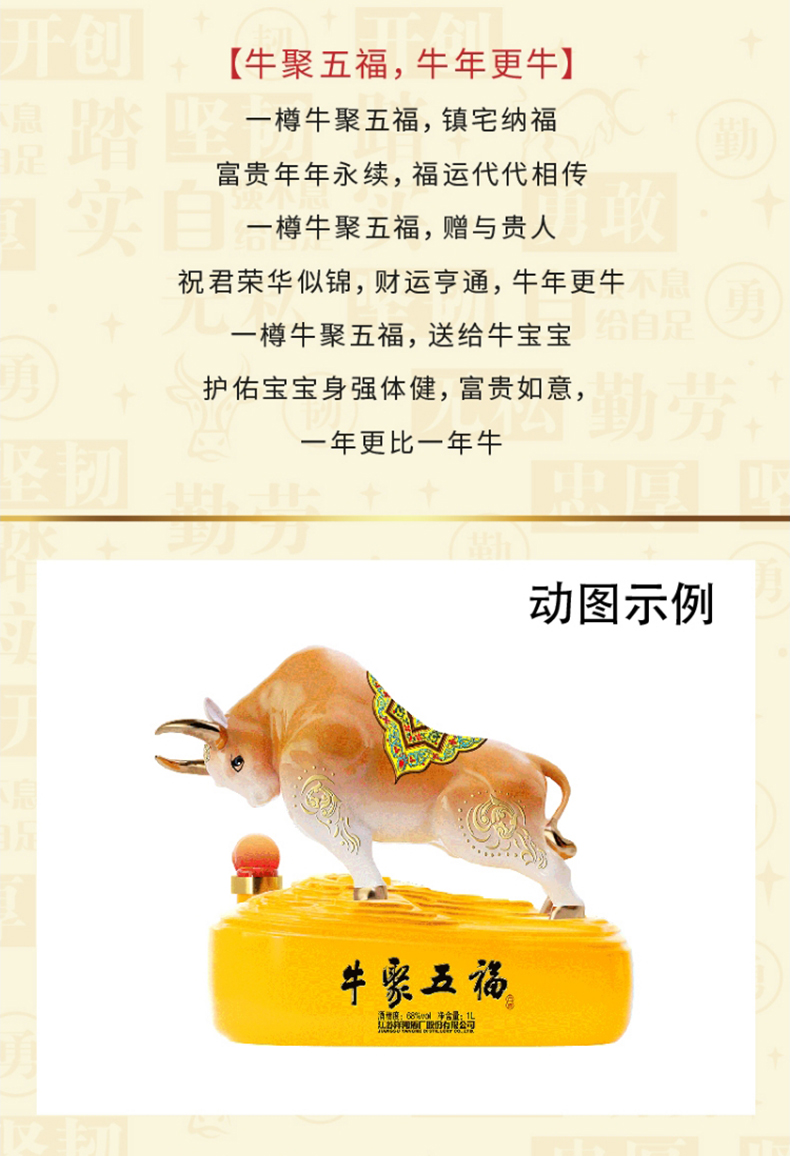 洋河牛年生肖酒 牛聚五福 68度1L(1000ml)礼盒装 高端收藏 传承佳酿 72小时发货 谢师宴