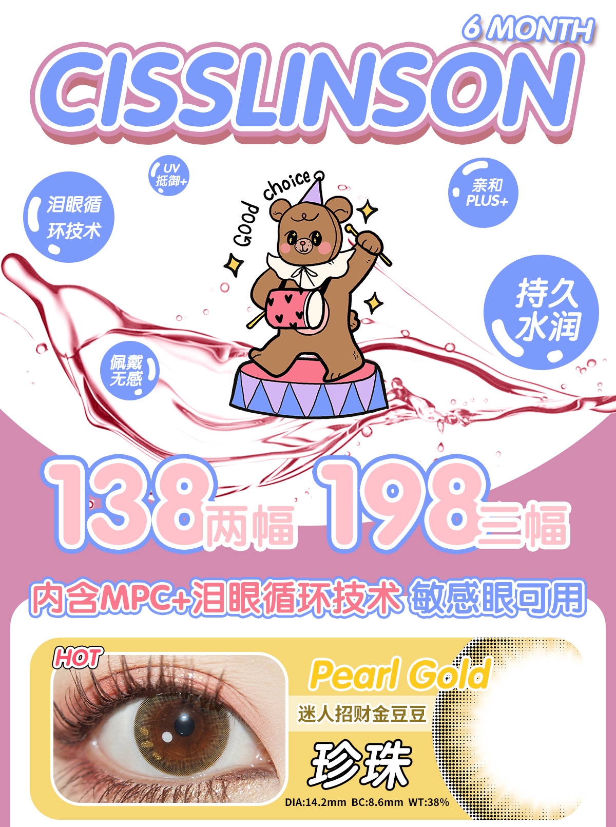 cisslinson月抛,138/两副,198/三副( 最高度数有1000)