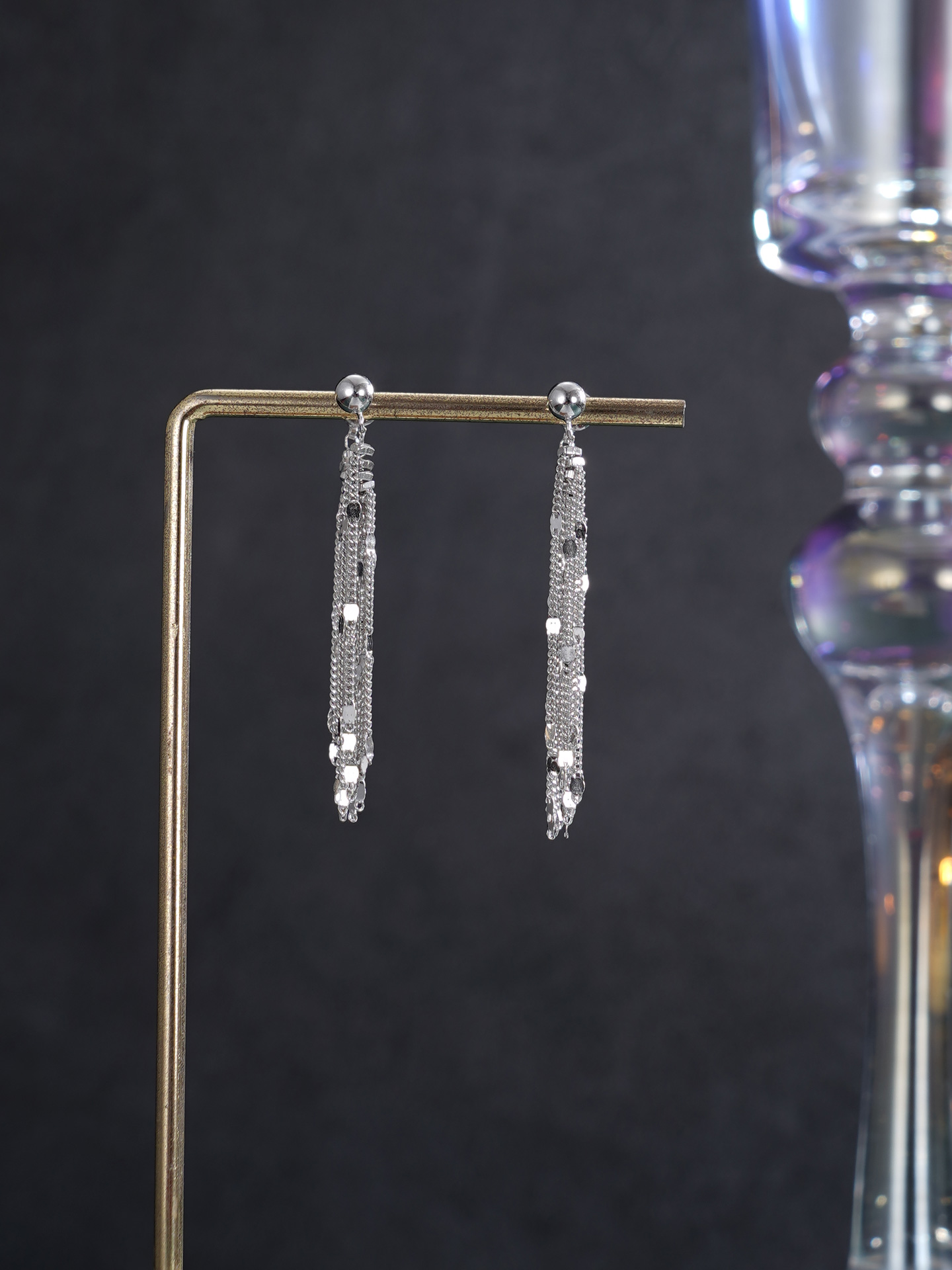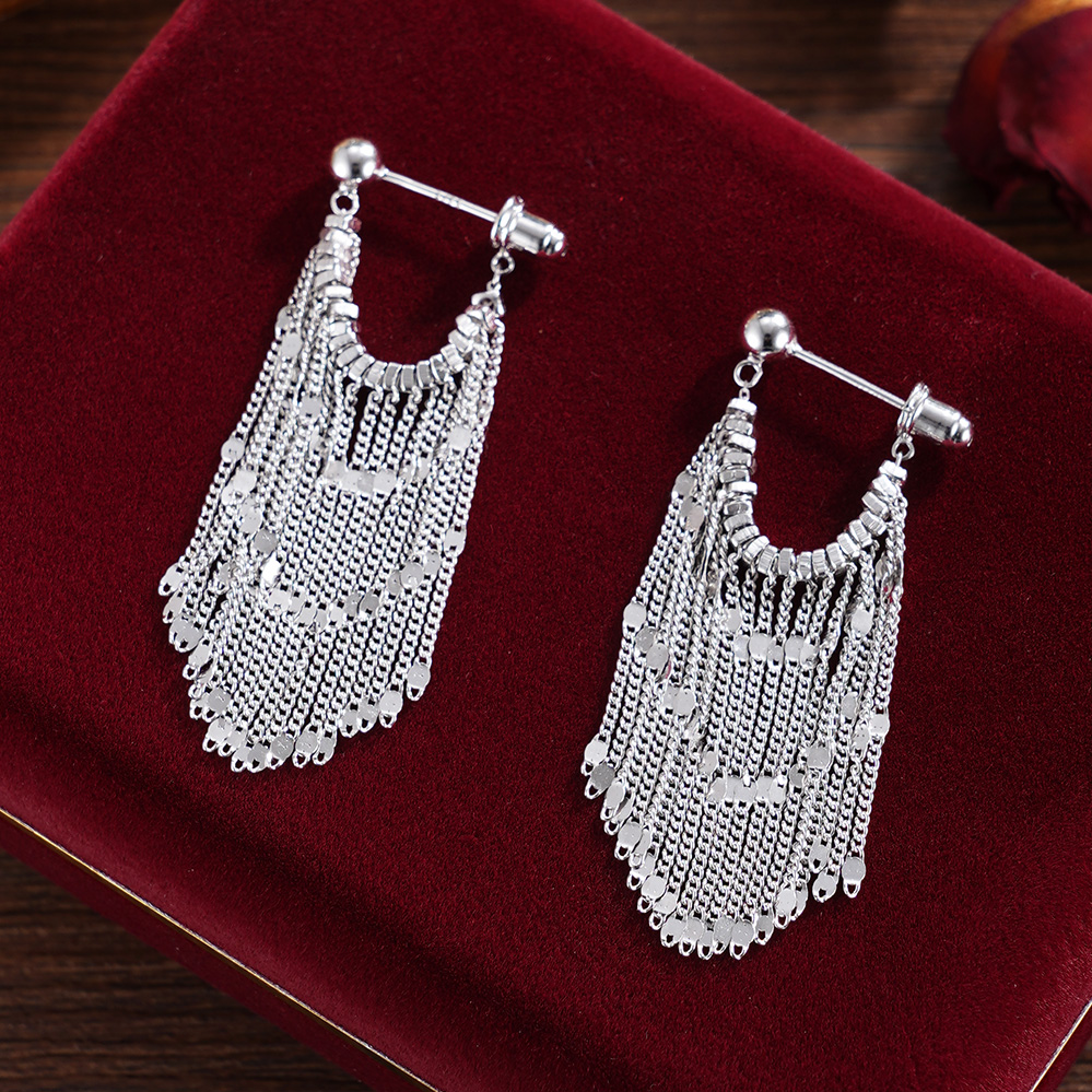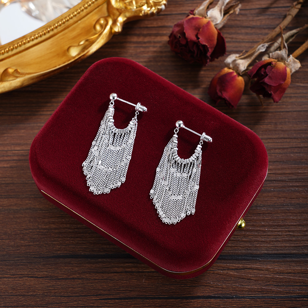 【寓意】:以纯银勾勒流苏耳饰,编织成流动的诗篇。耳畔轻摇间,光华流转,寓意温柔坚韧、生生不息。
