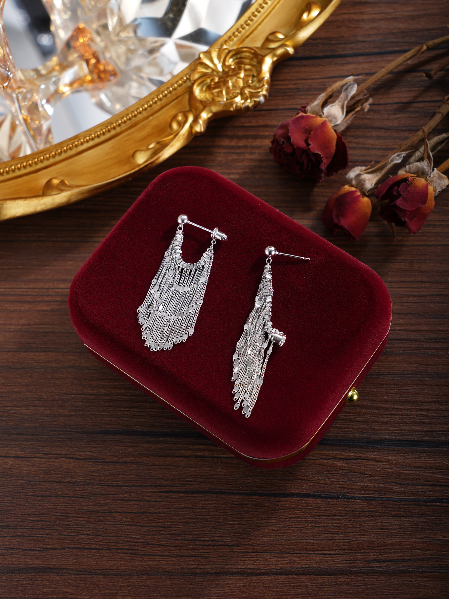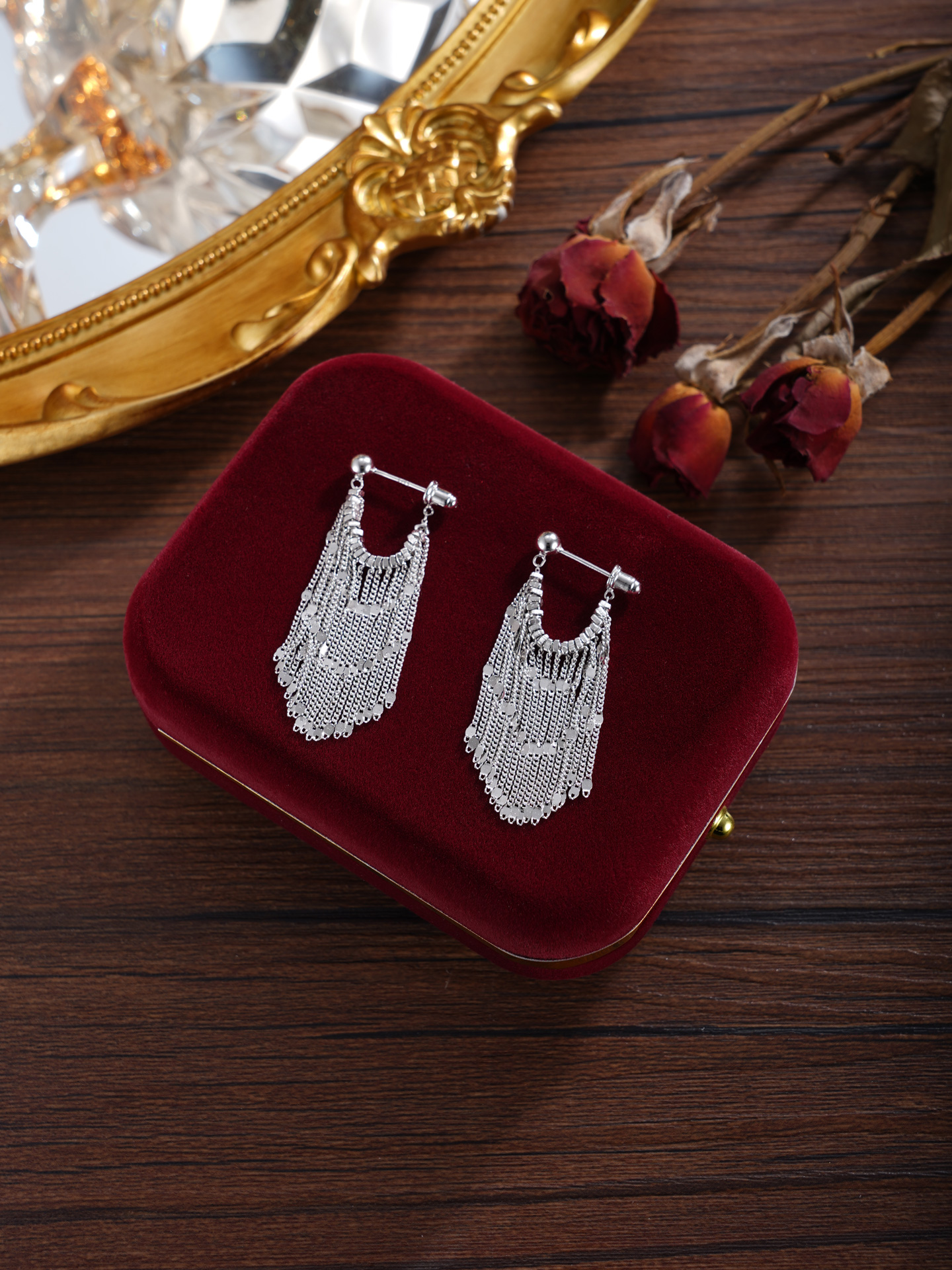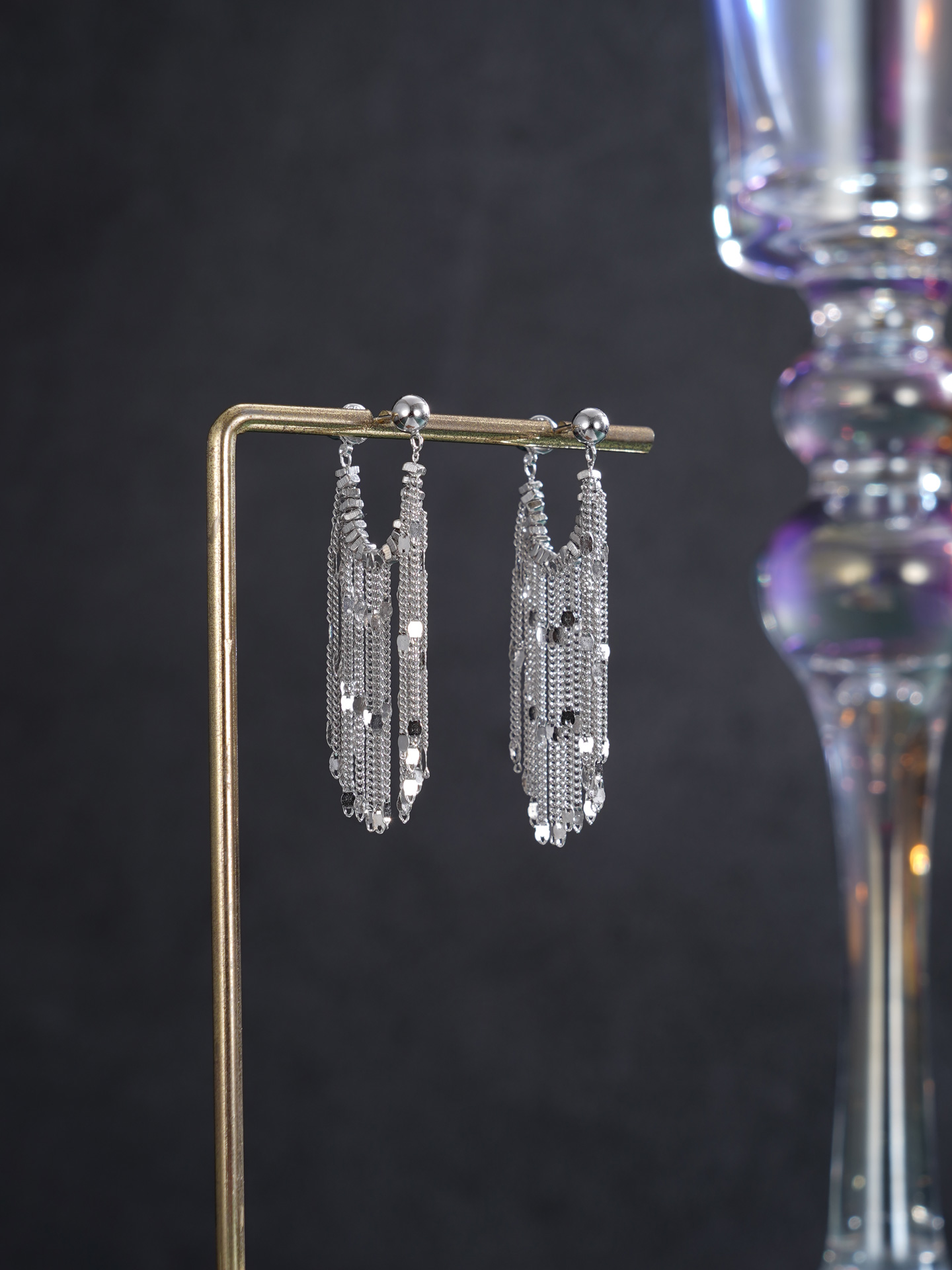 【寓意】:以纯银勾勒流苏耳饰,编织成流动的诗篇。耳畔轻摇间,光华流转,寓意温柔坚韧、生生不息。