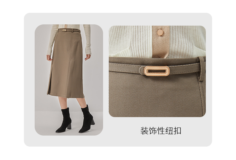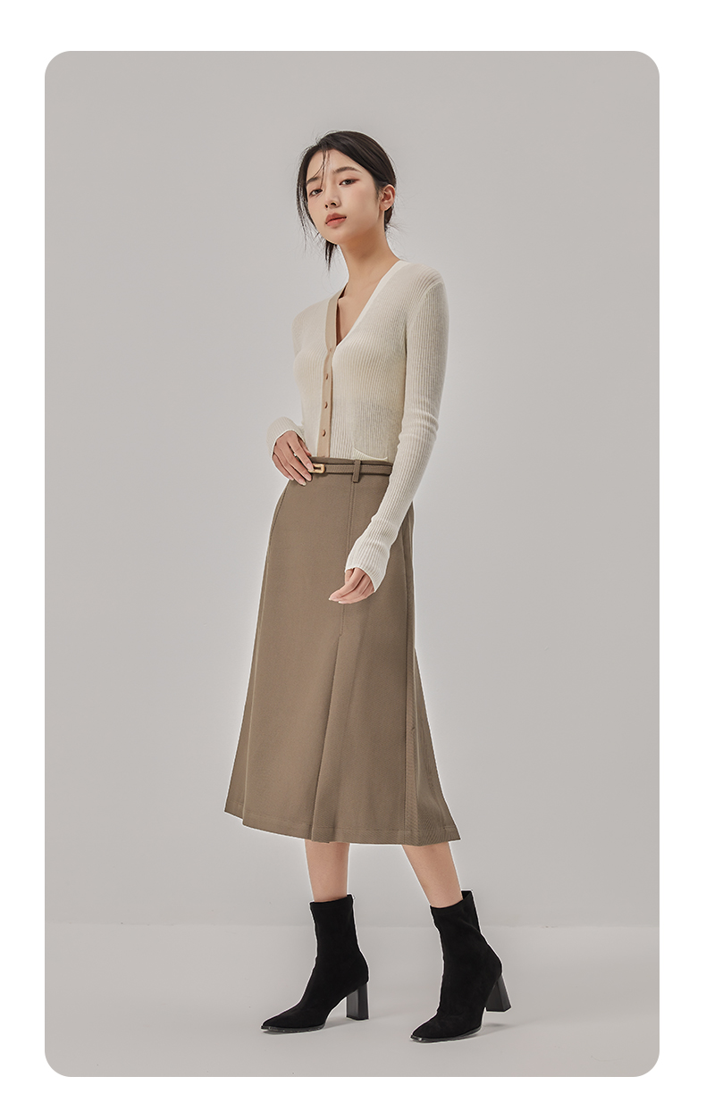 oldcolour2022冬季新款复古纯色气质高腰显瘦A字中长款半身裙女