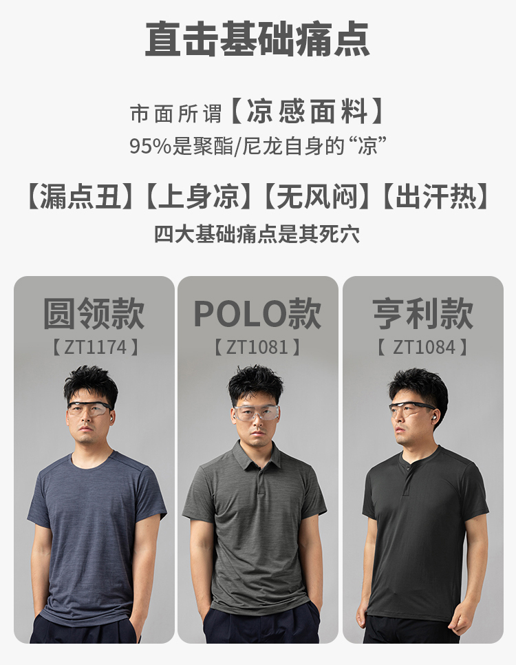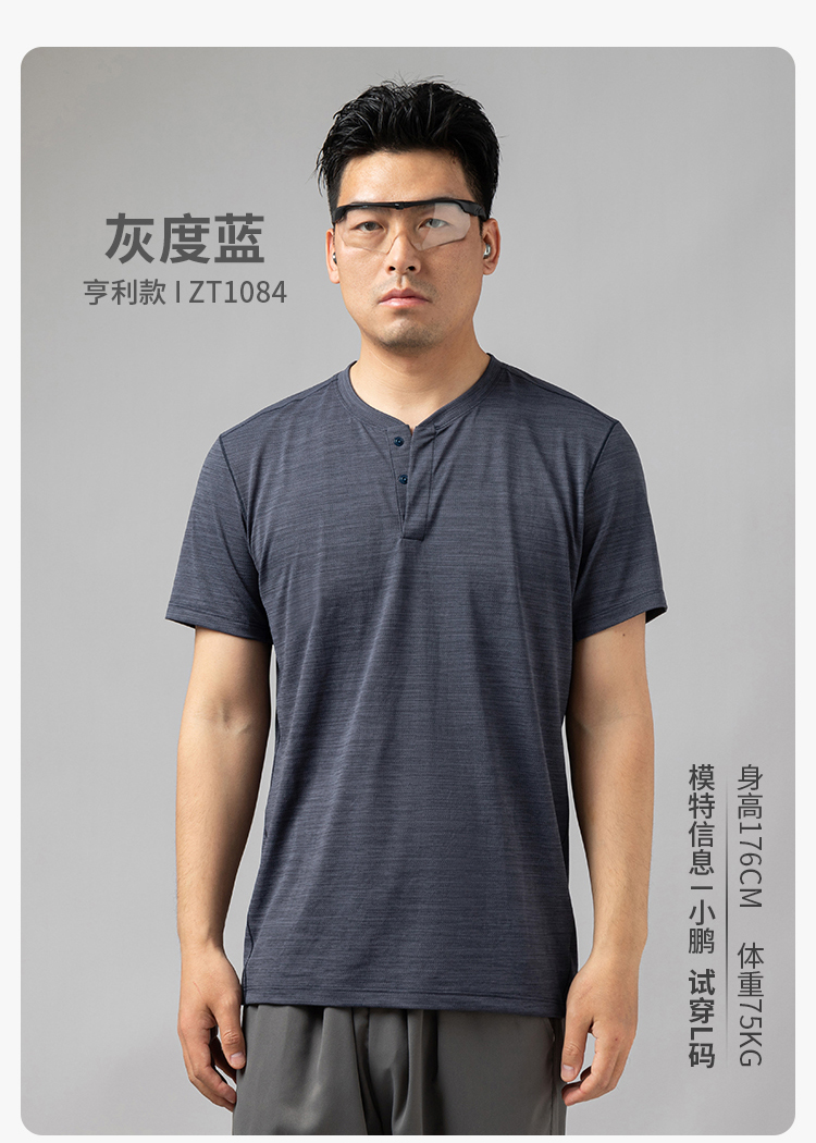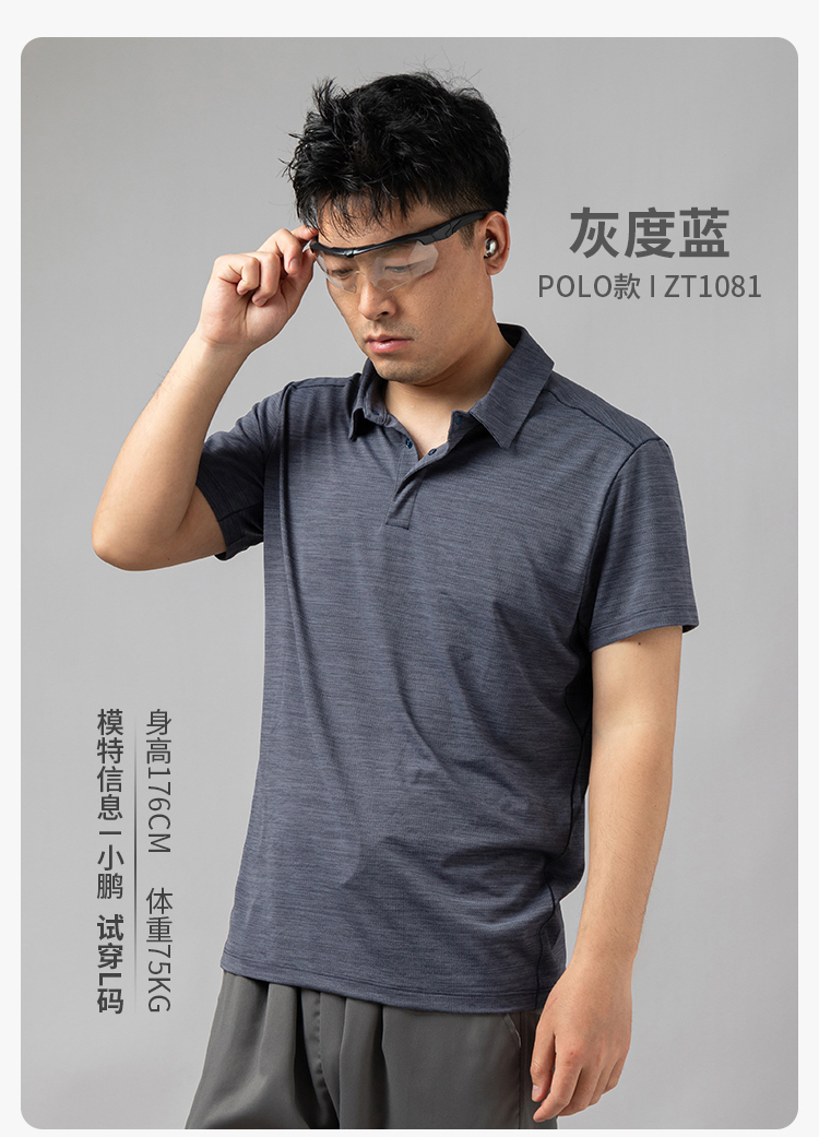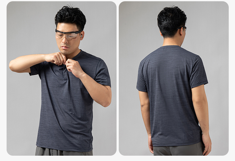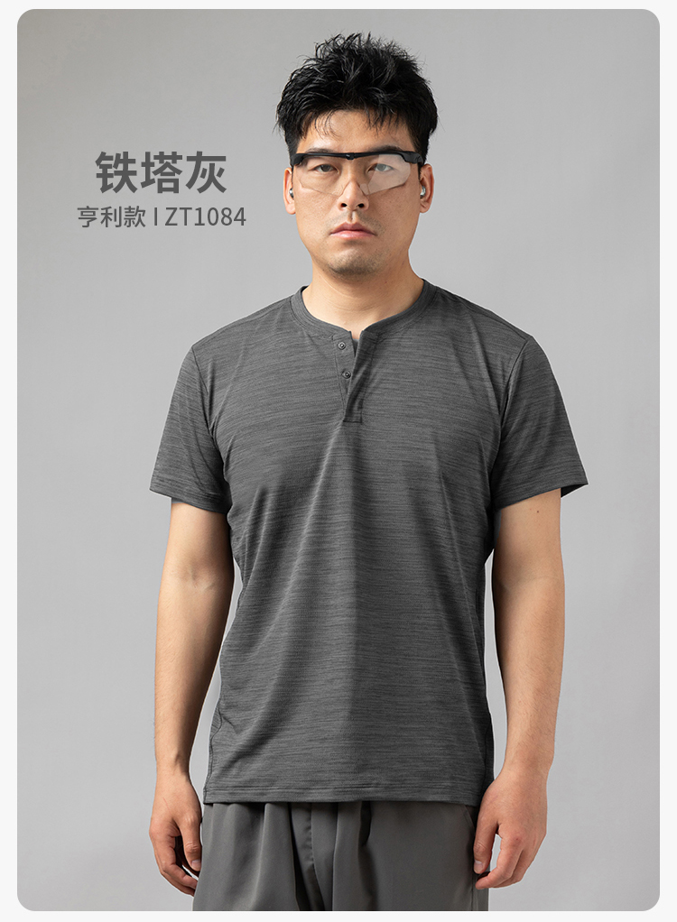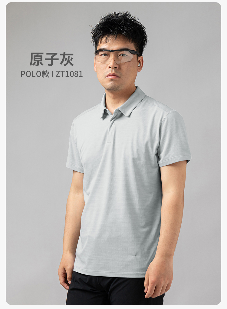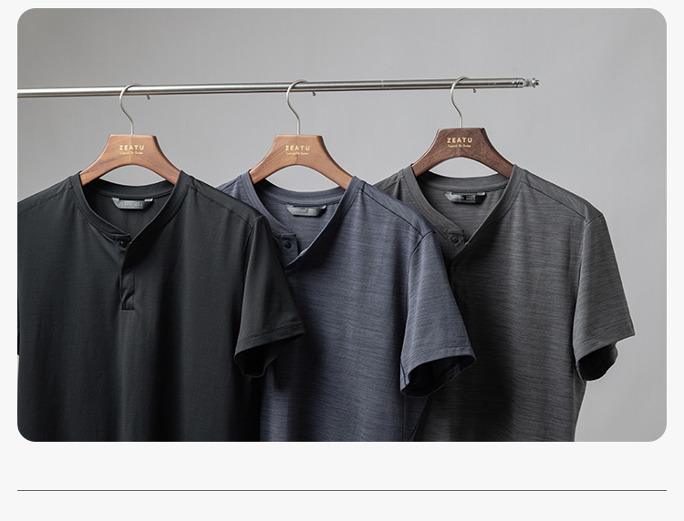 男士夏季植物仿生3D立体排汗速干短袖T恤亨利领polo衫通勤户外
