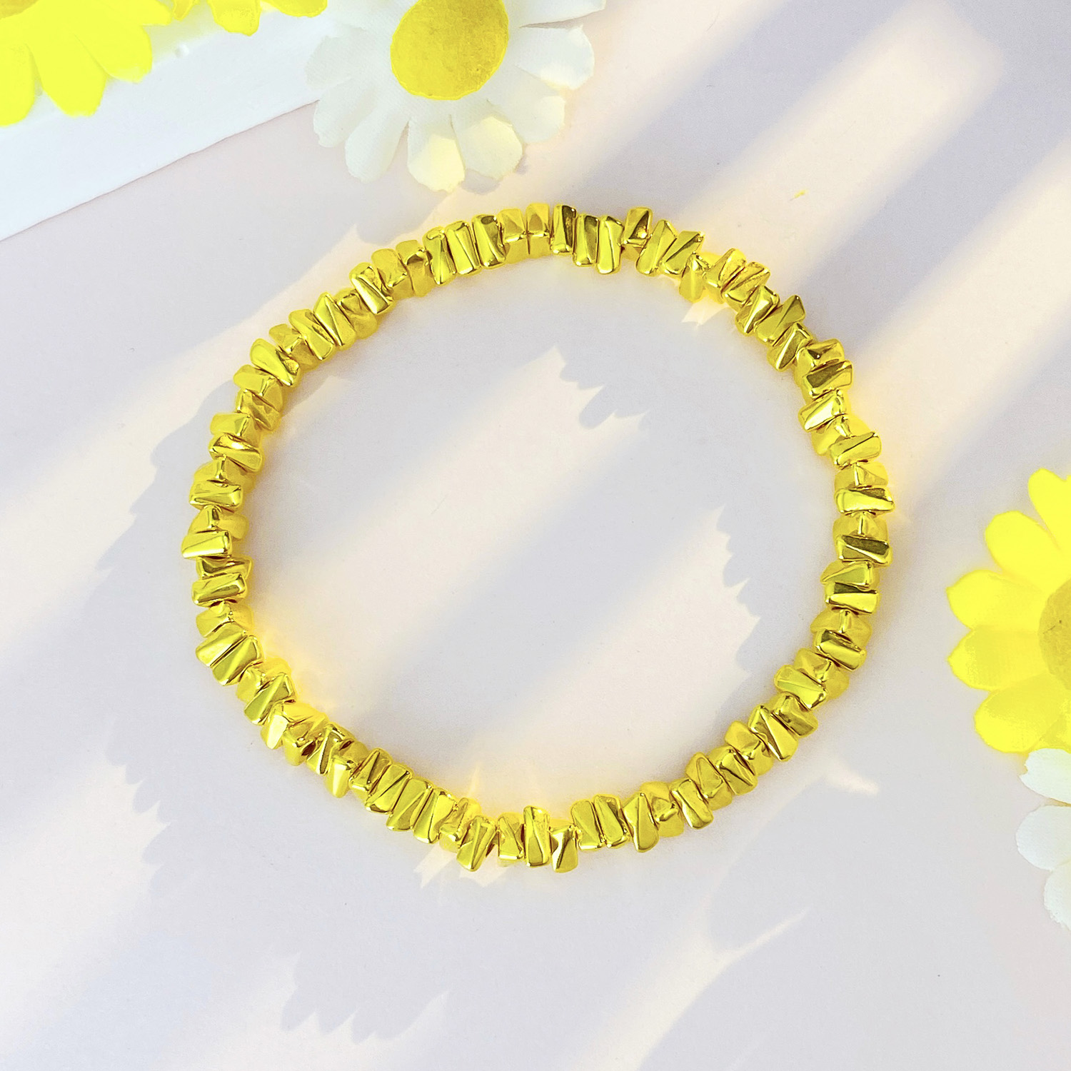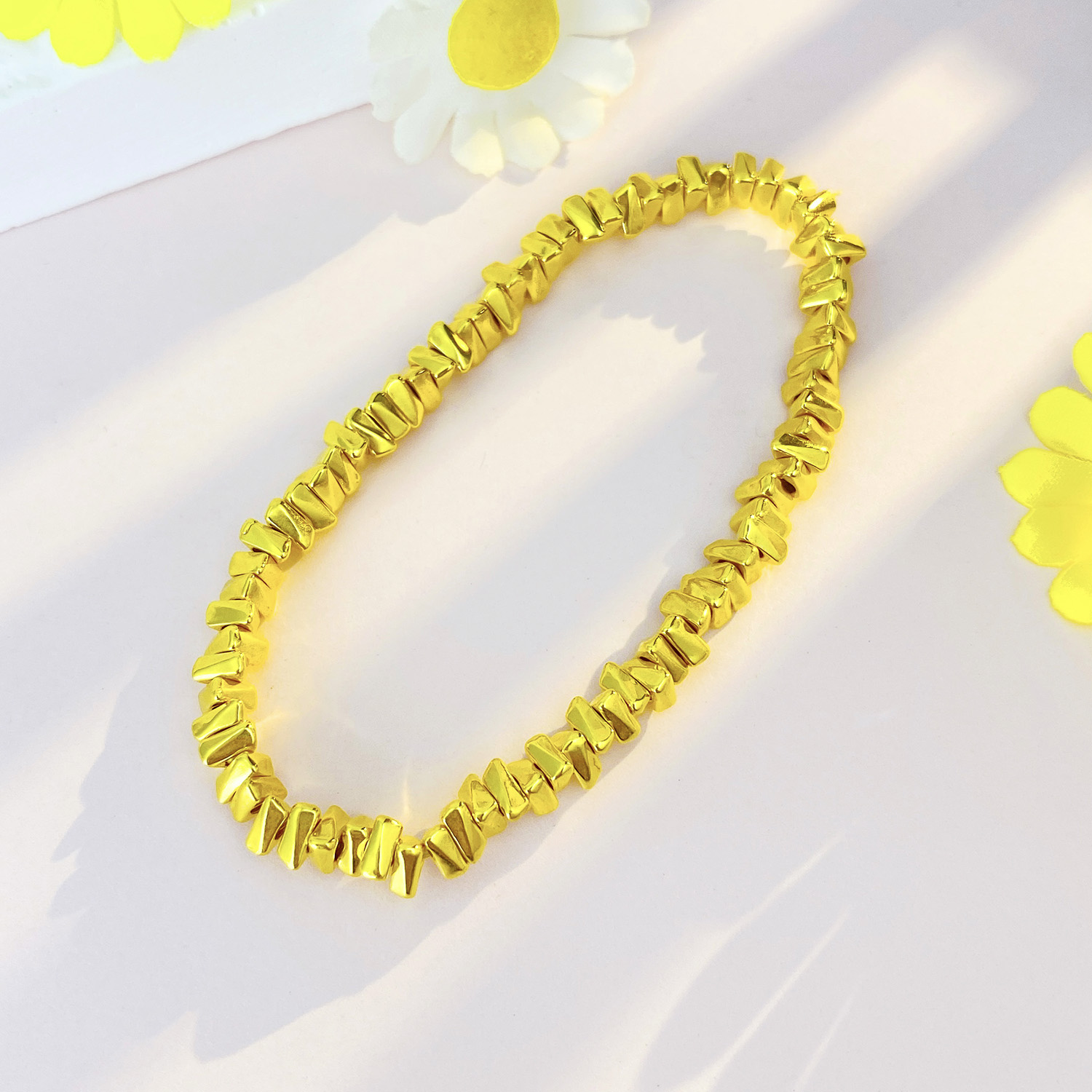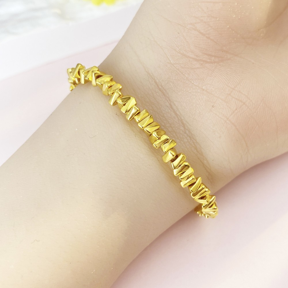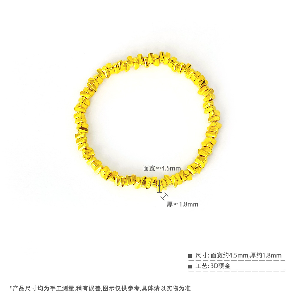 【限时克减150元】足金 #电商超轻 3D硬金几何三角碎碎金手链弹力绳手串(AK3DSC00007)(预售产品下单后不退款不退货不换货不补差价)(预售产品下单后不退款不退货不换货不补差价)