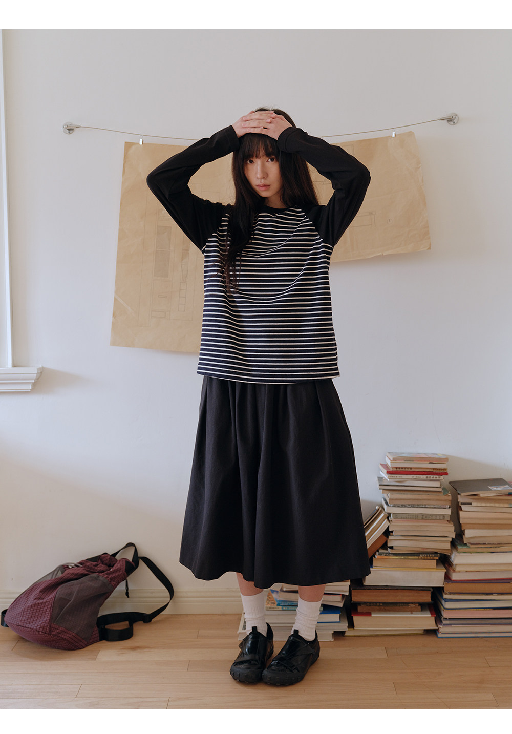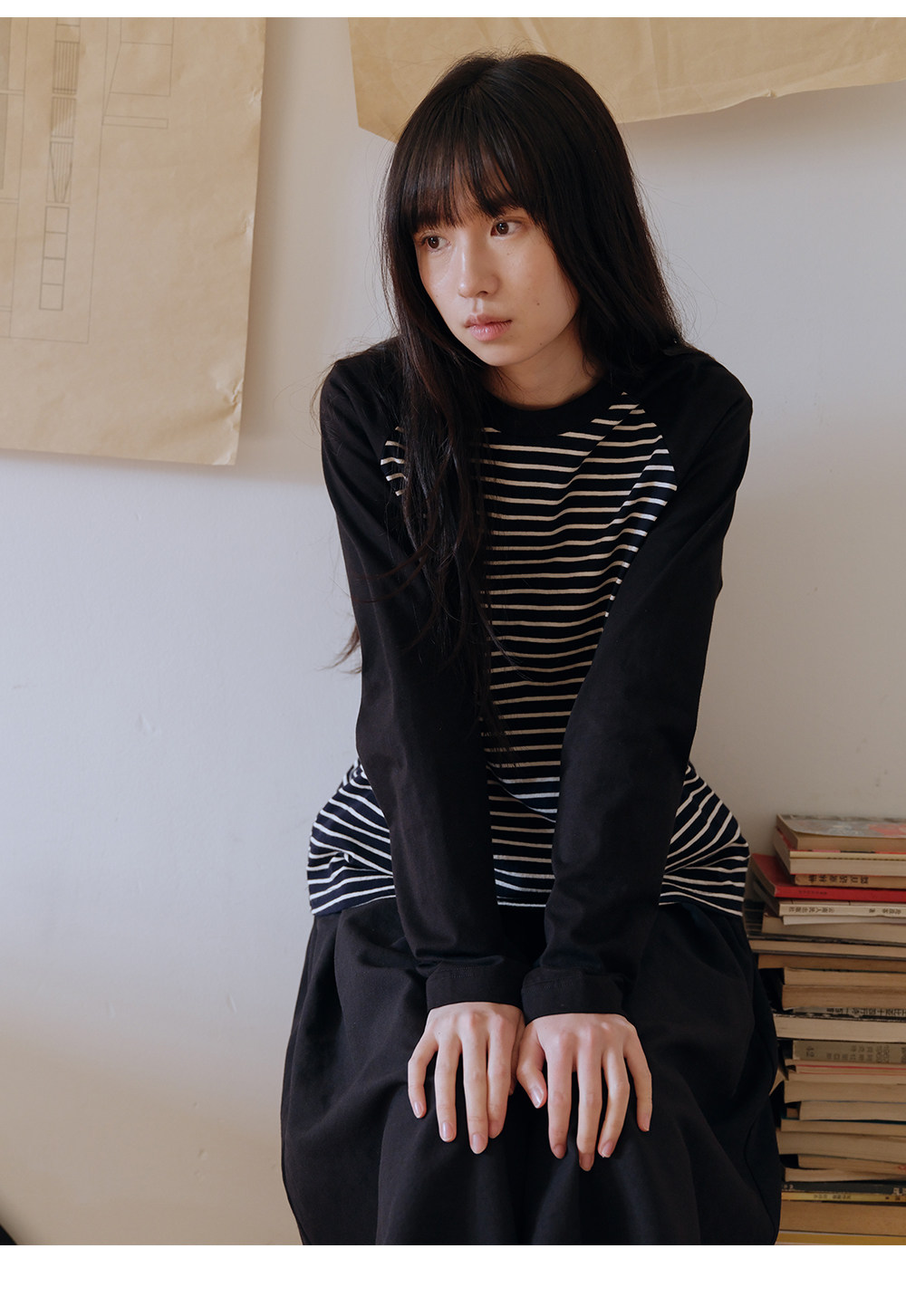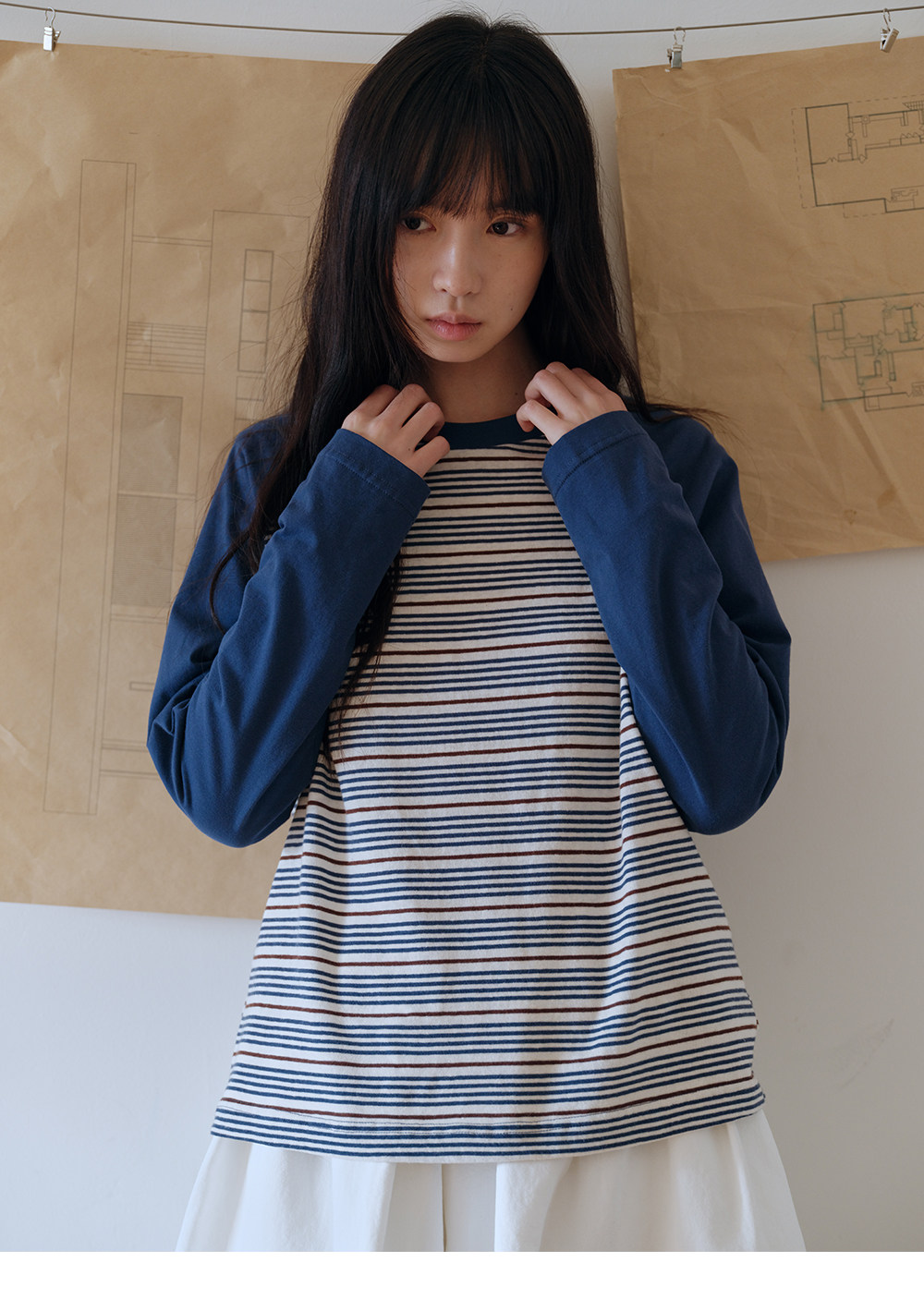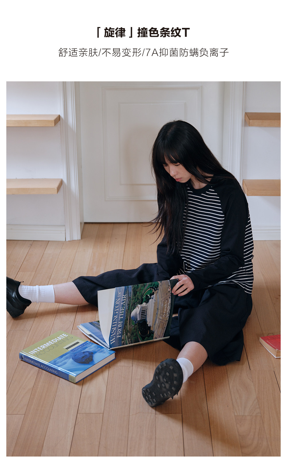 步履不停/6A16107C/防螨撞色条纹T