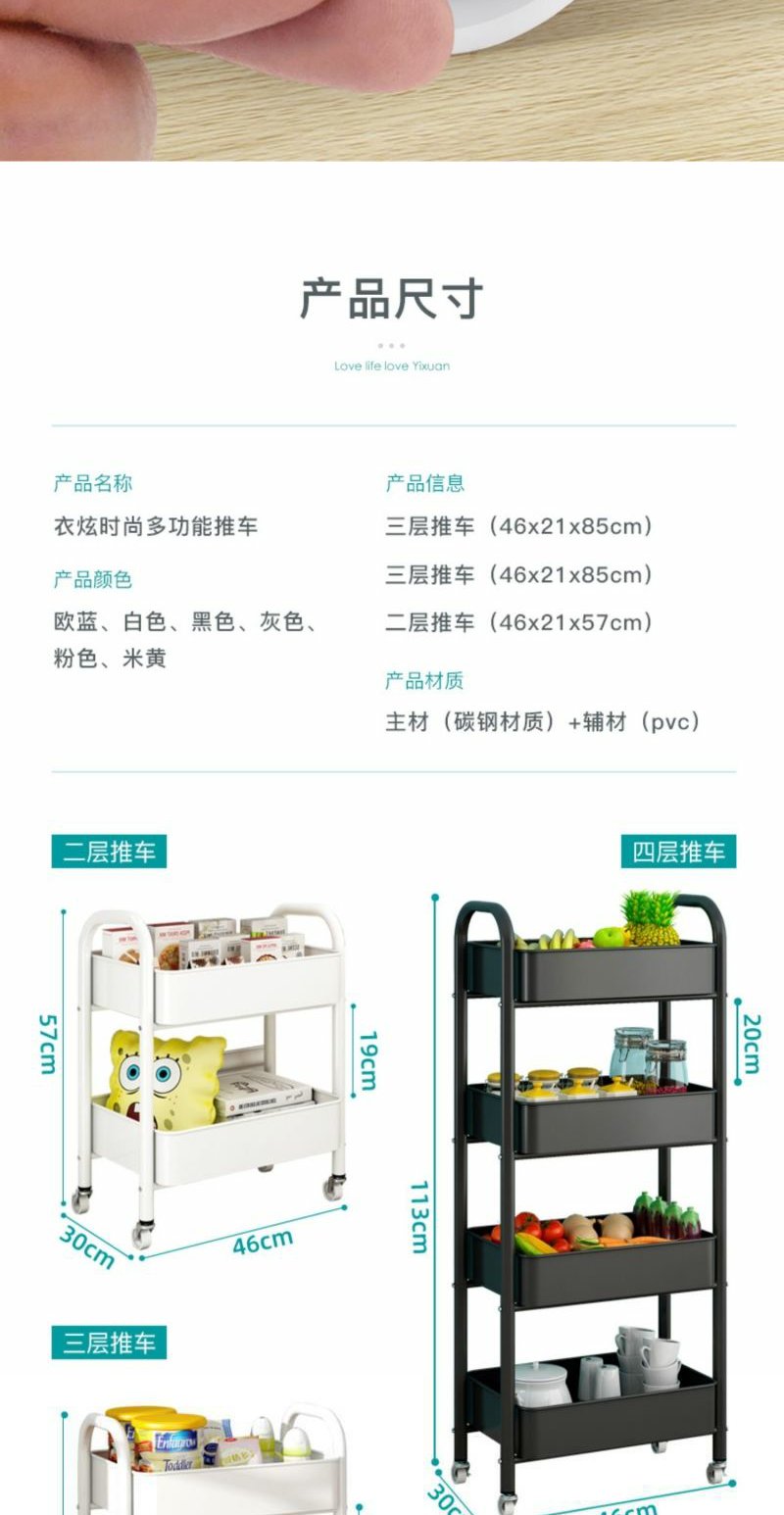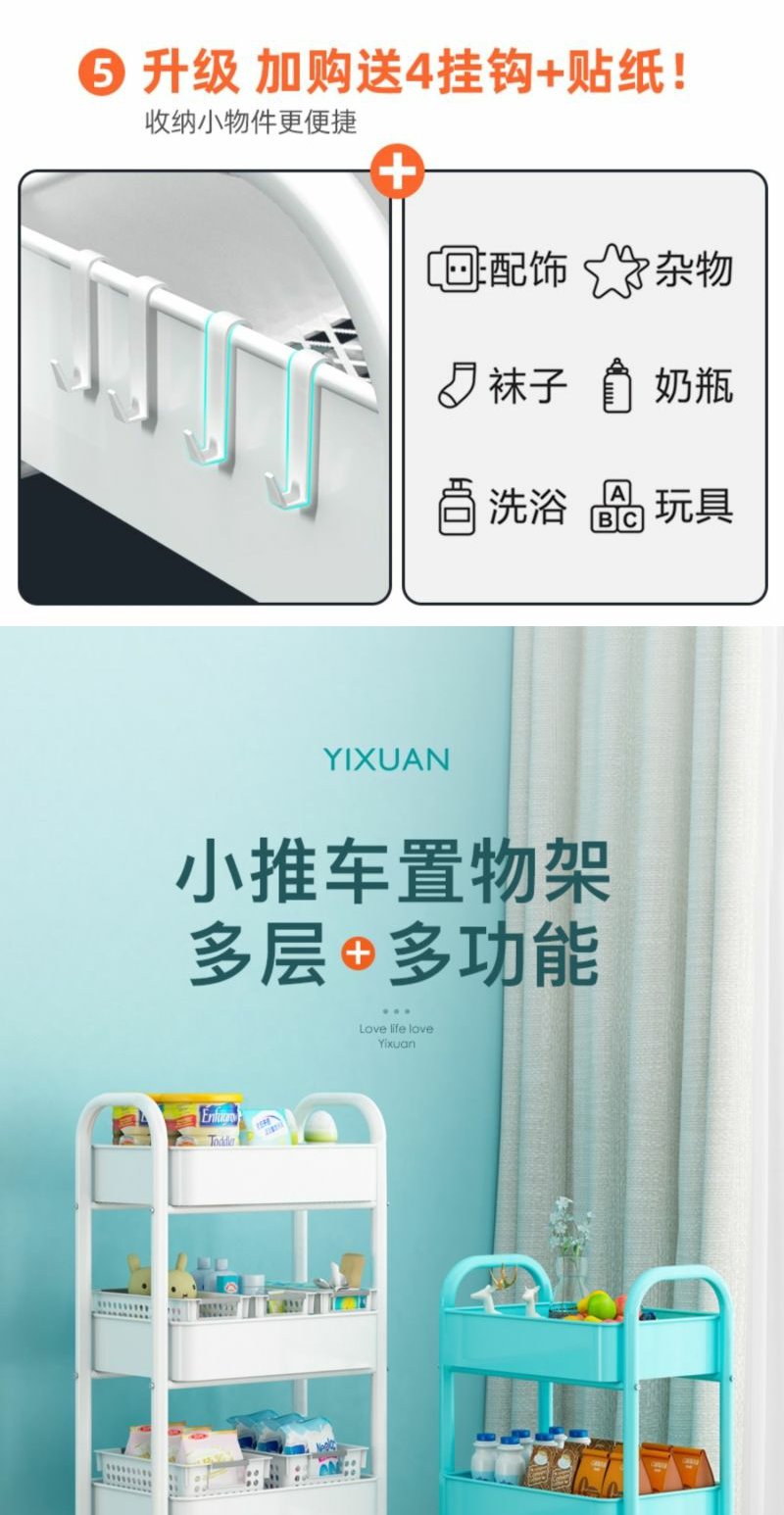 小推车置物架落地厨房浴室移动零食卫生间多层卧室床头收纳储物架