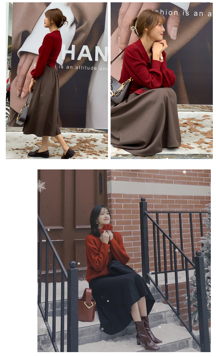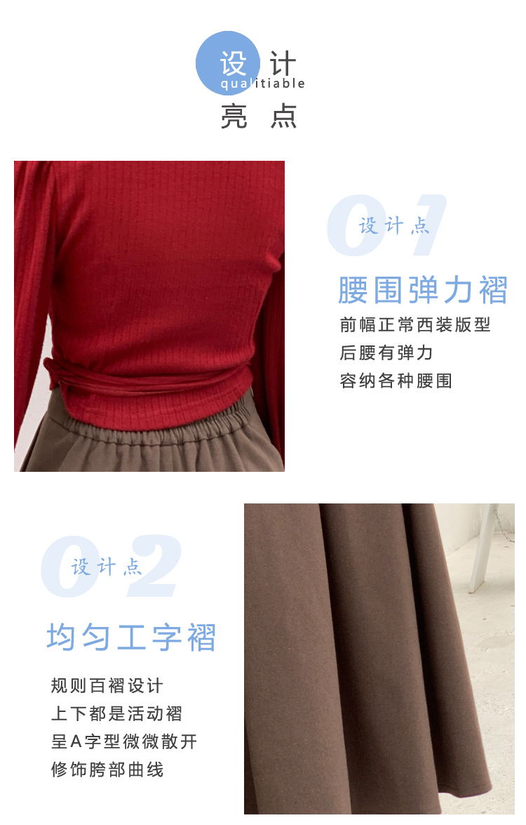 【百图 lulu 定制】【赫本伞裙】高腰百褶裙A字 毛呢百褶裙
