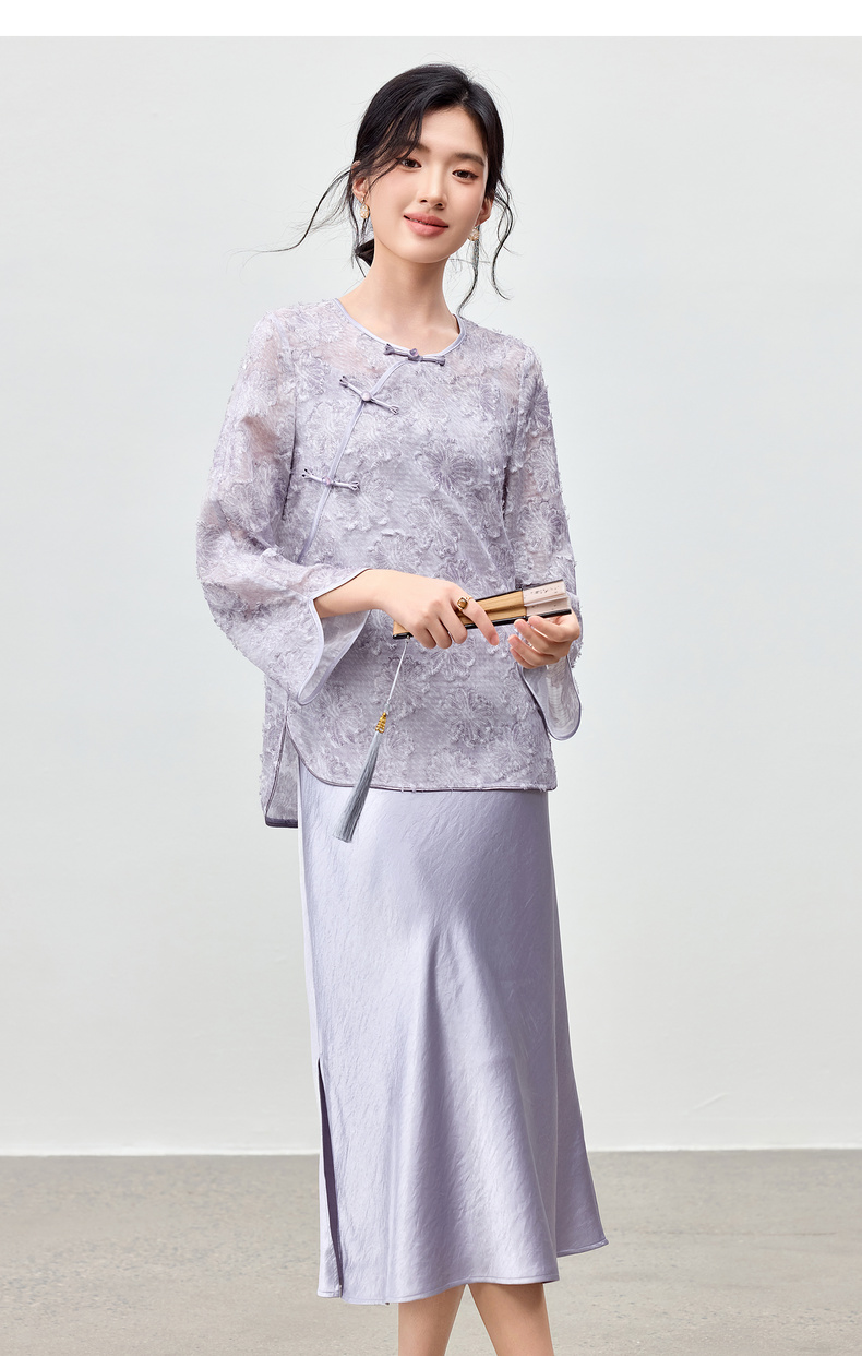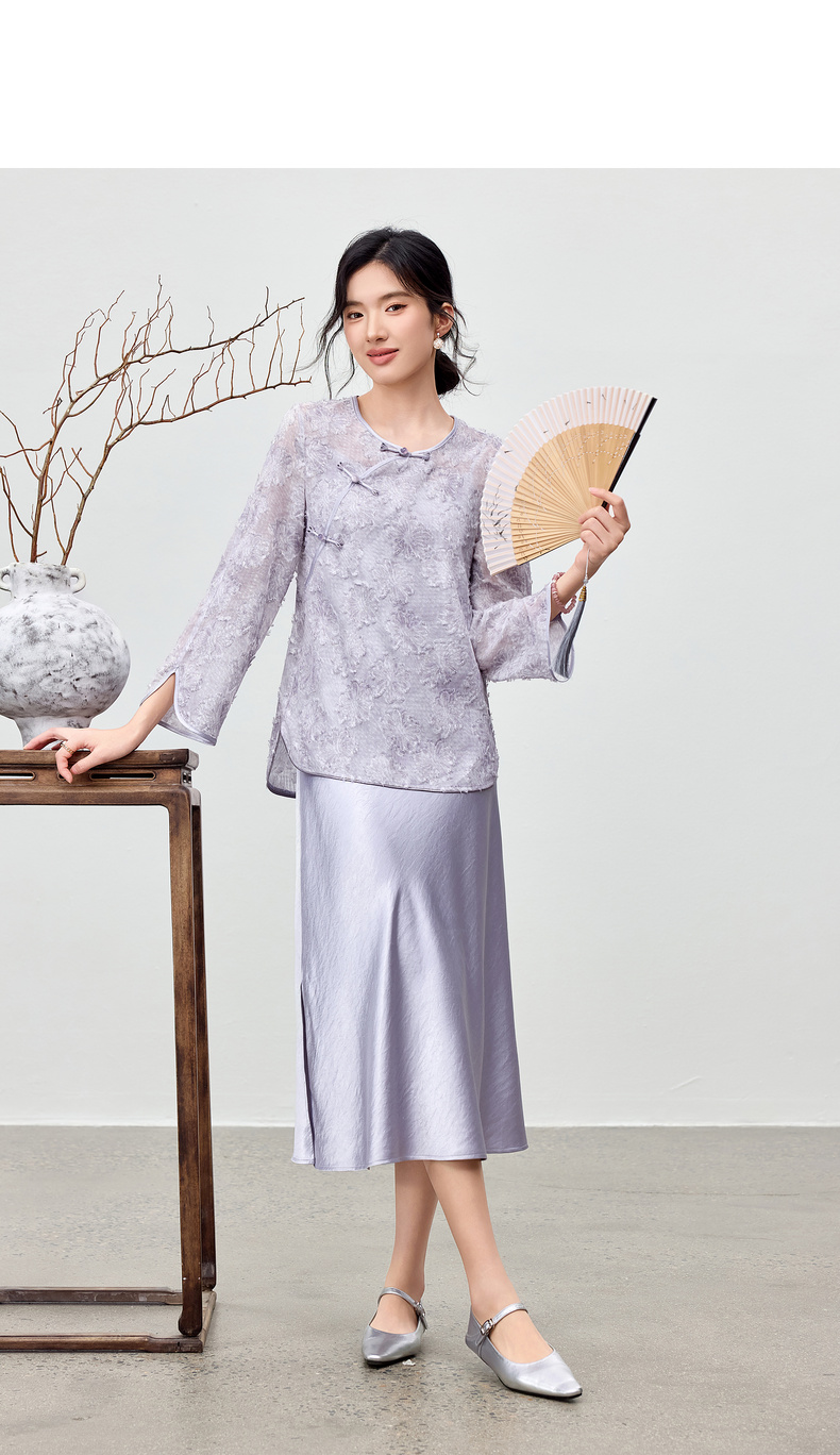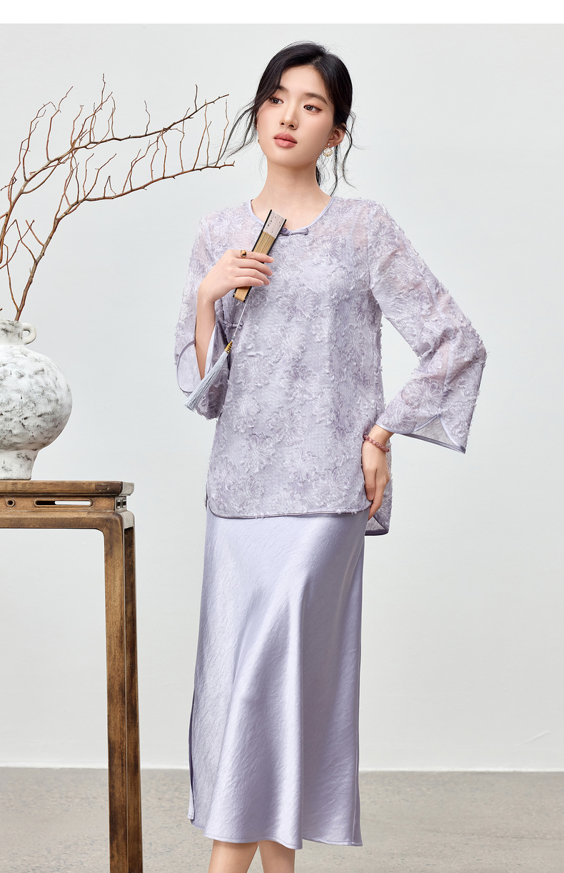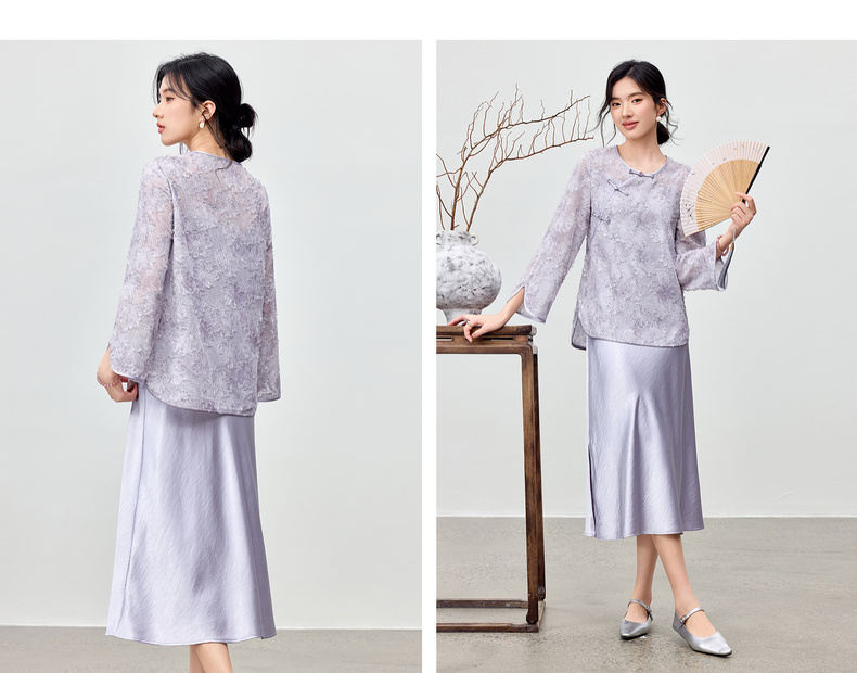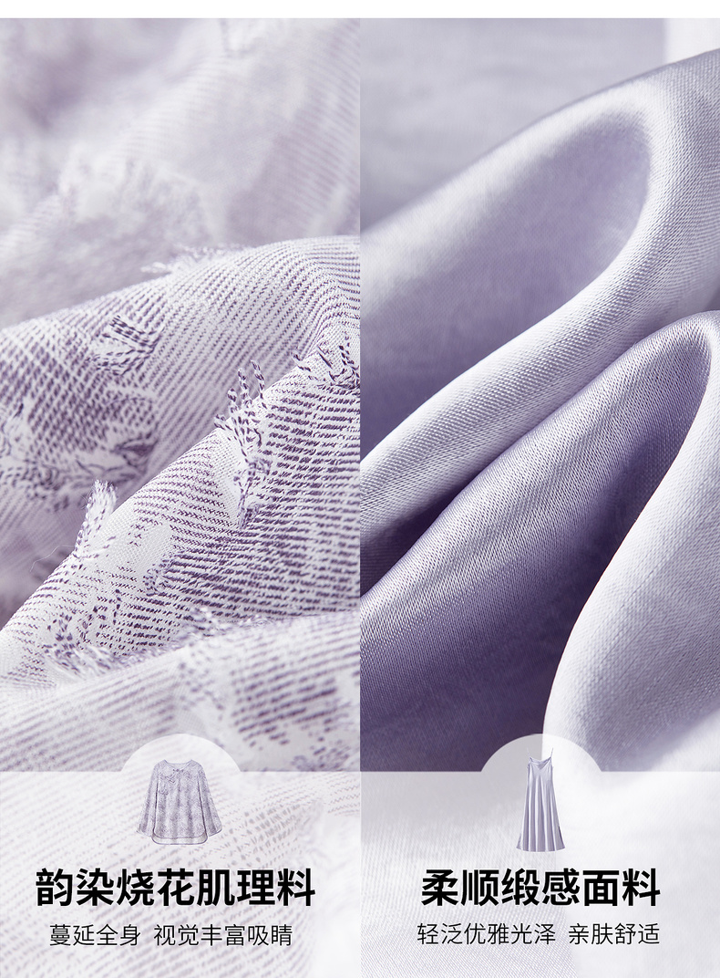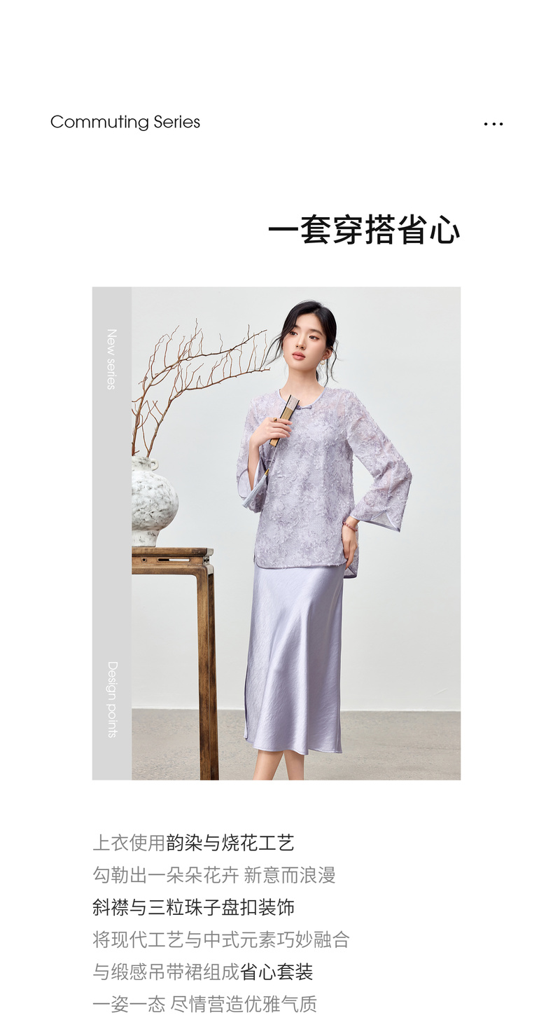 【内购】【免搭配套装】云岫花影系列优雅圆领烧花上衣&V领缎感吊带连衣裙-Q53ZB3988
