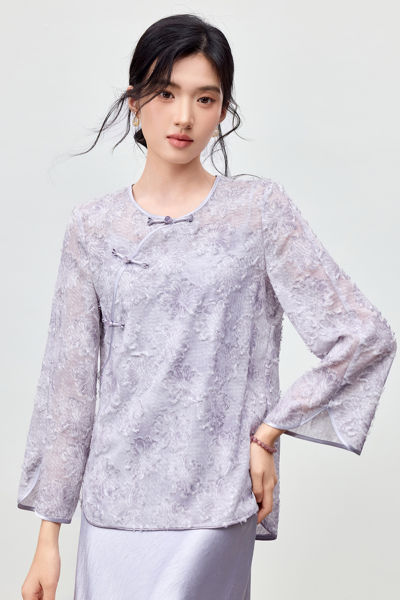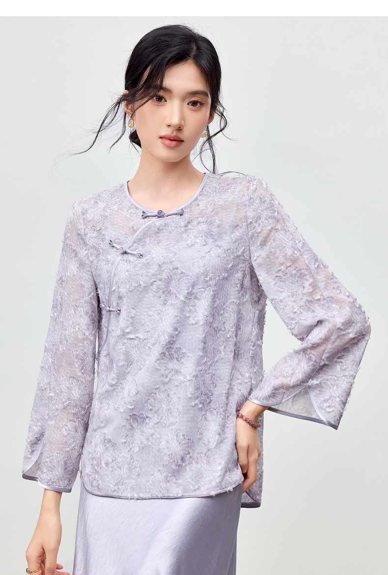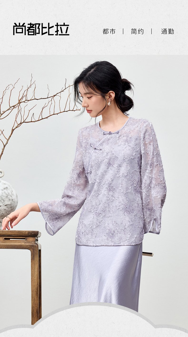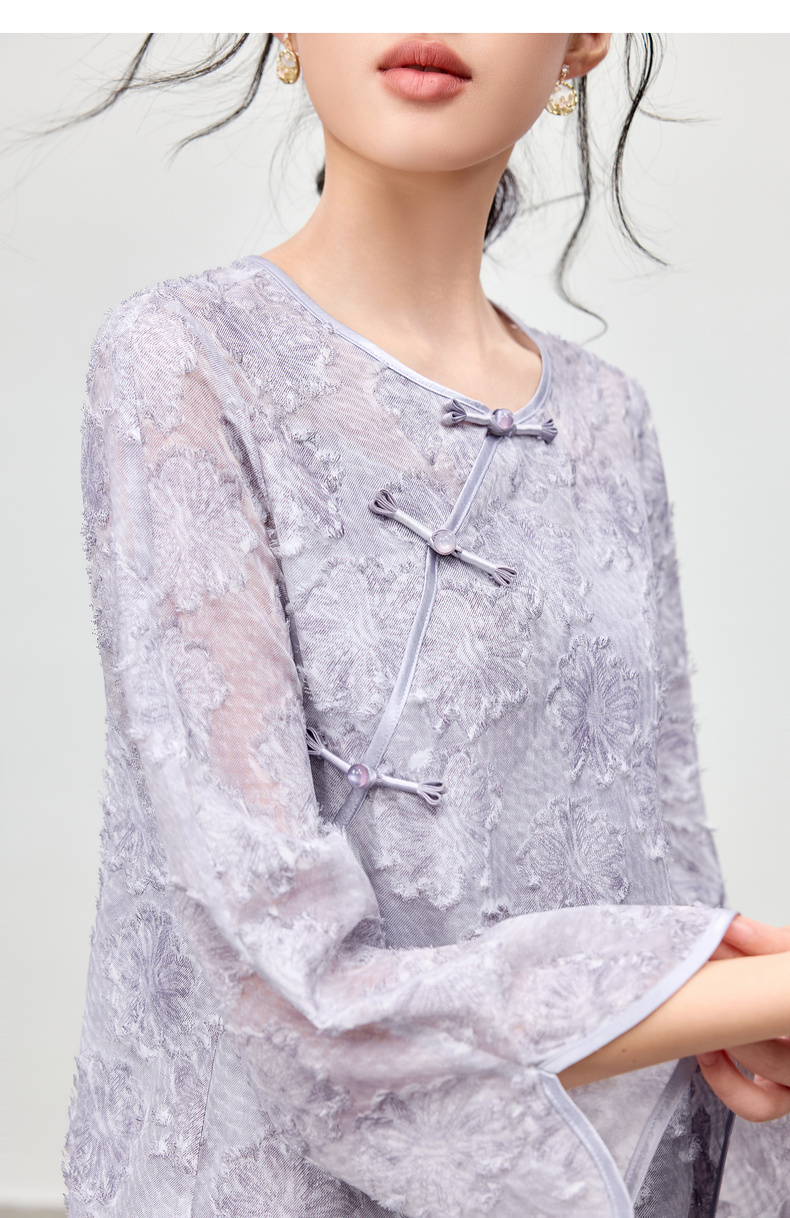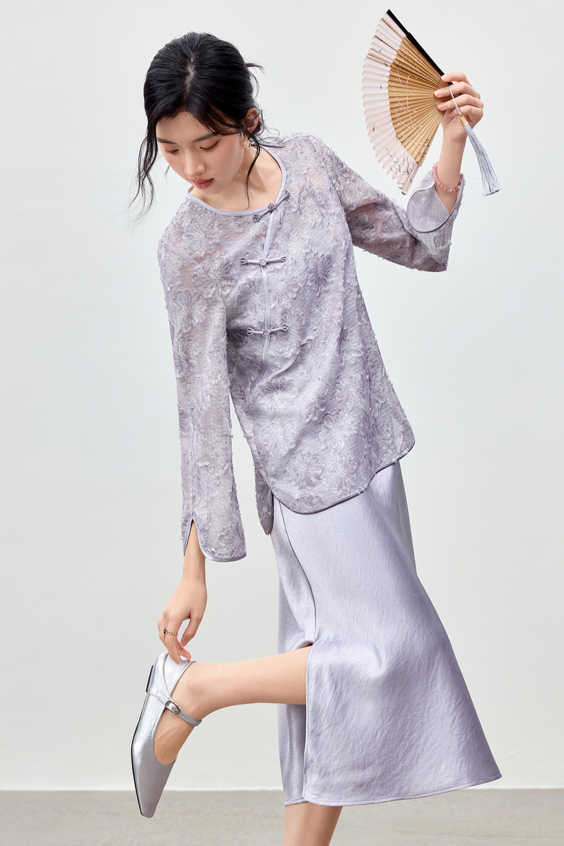 【内购】【免搭配套装】云岫花影系列优雅圆领烧花上衣&V领缎感吊带连衣裙-Q53ZB3988
