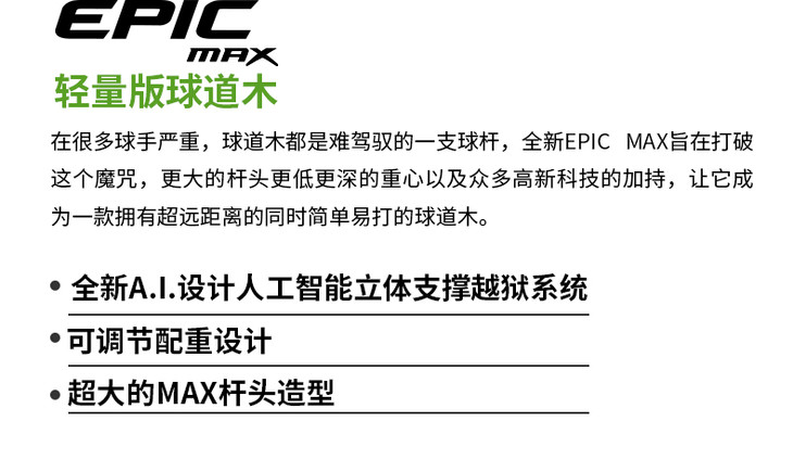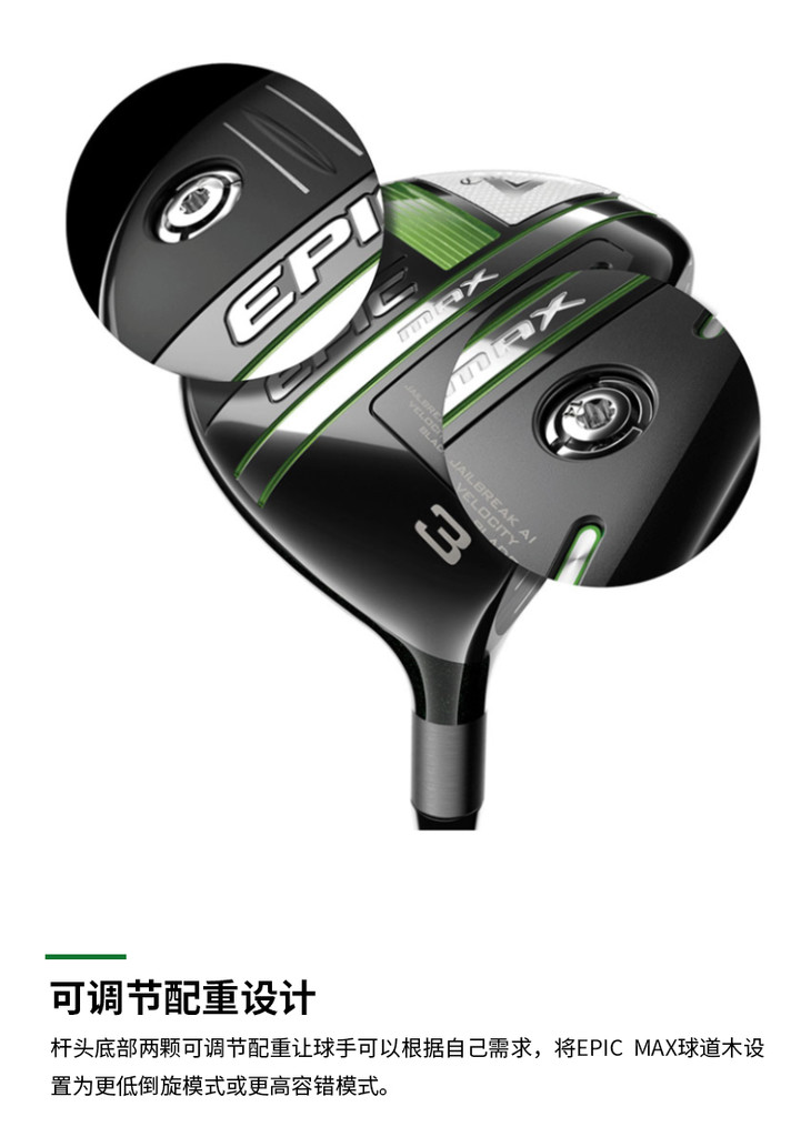 Callaway卡拉威 2021年高尔夫男士EPIC人工智能杆面球道木