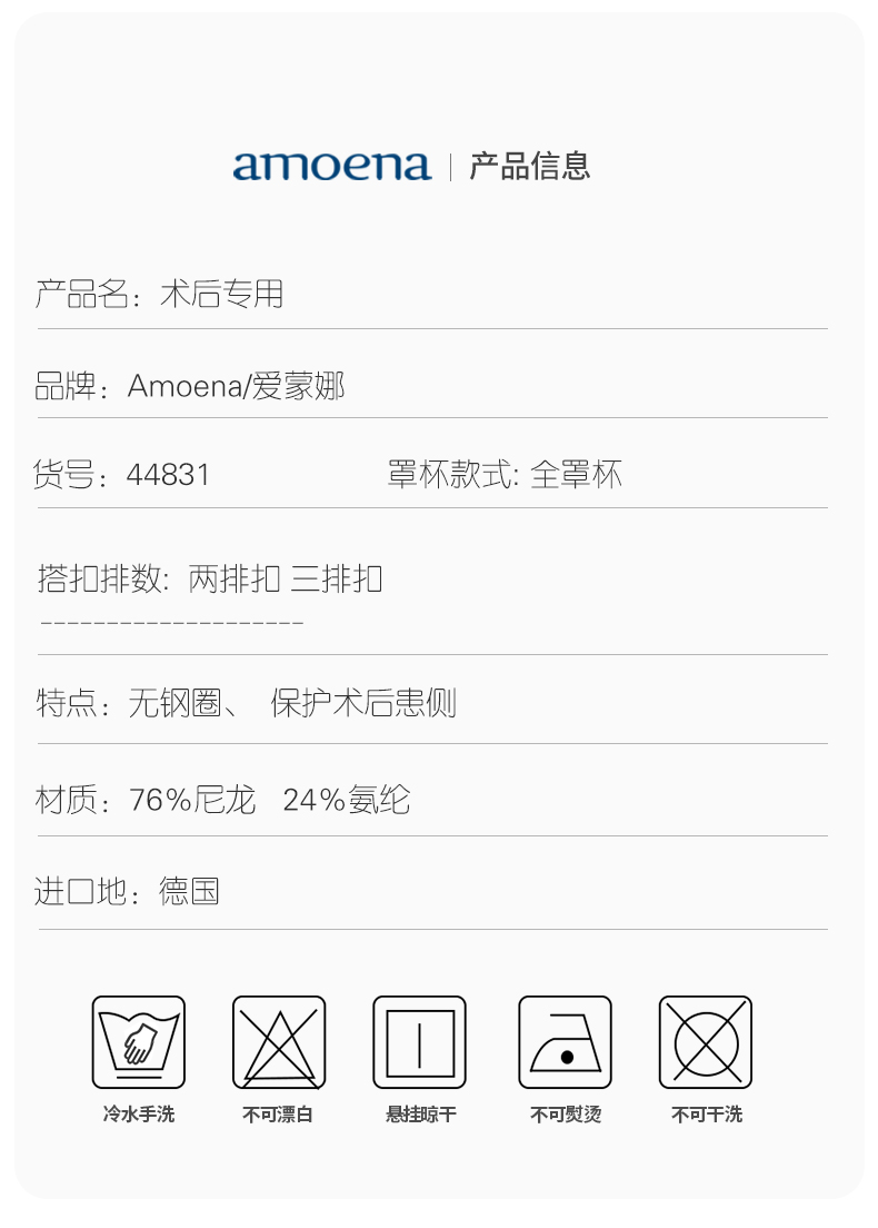 【优惠详情咨询客服】Amoena德国进口 爱蒙娜义乳文胸乳腺术后胸罩无钢圈舒适 44831
