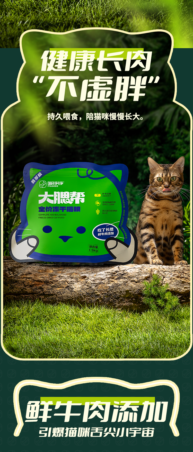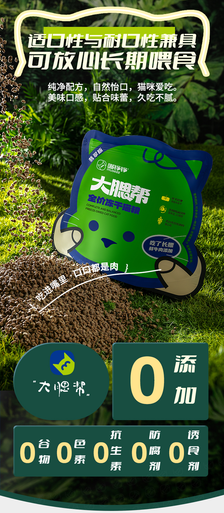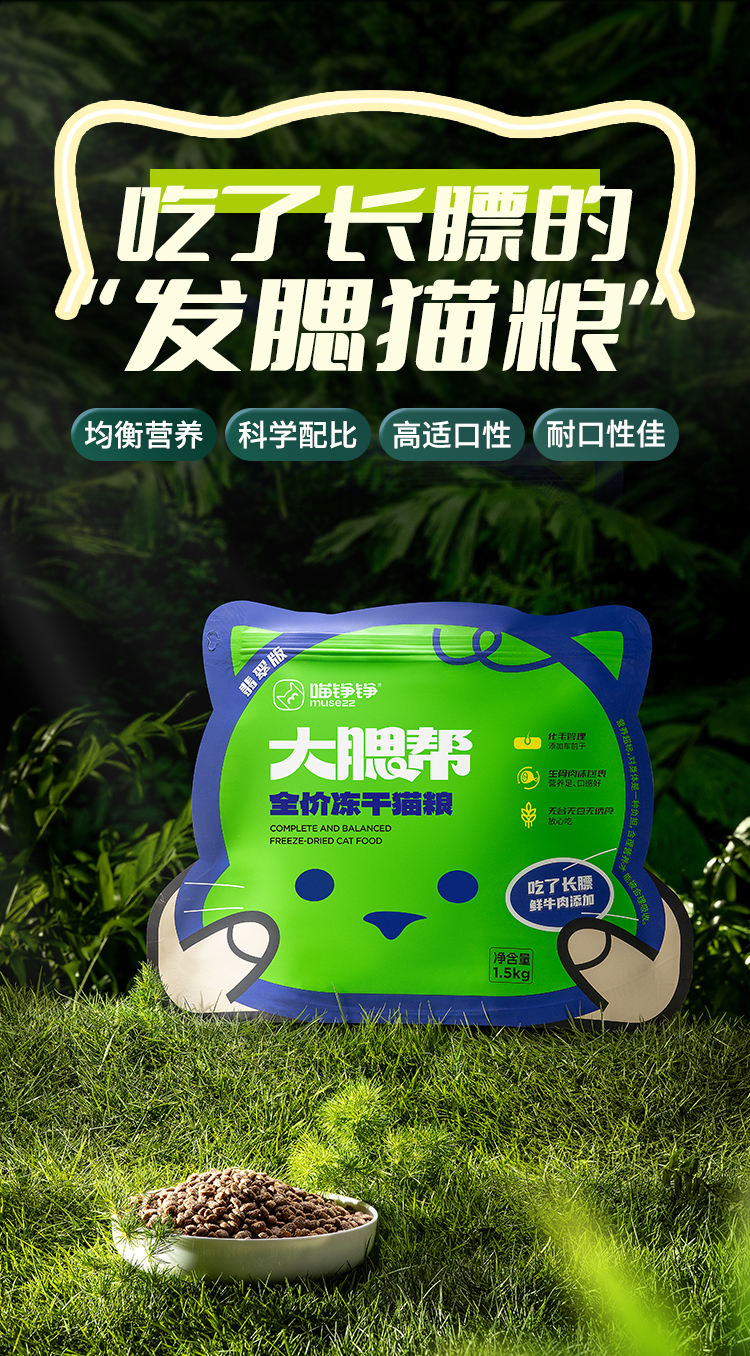 心选丨【翡翠版】喵铮铮大腮帮全价冻干猫粮 3斤/包鲜牛肉生骨肉沫猫粮