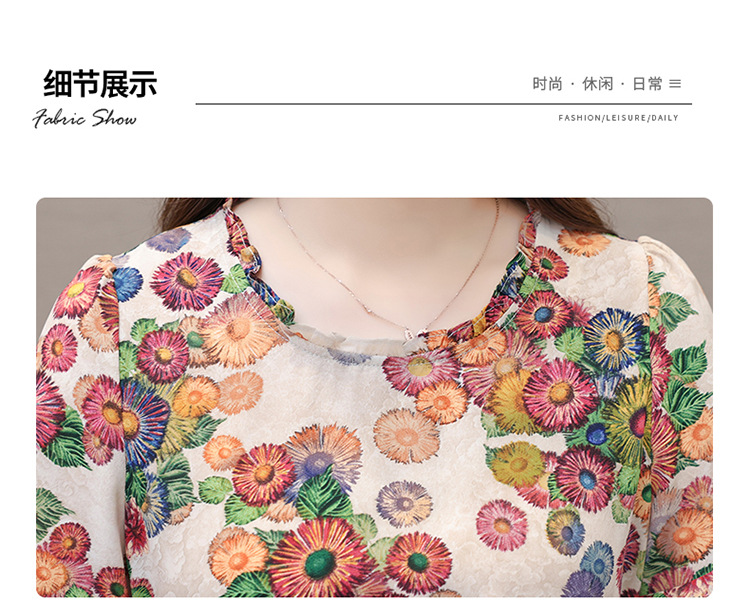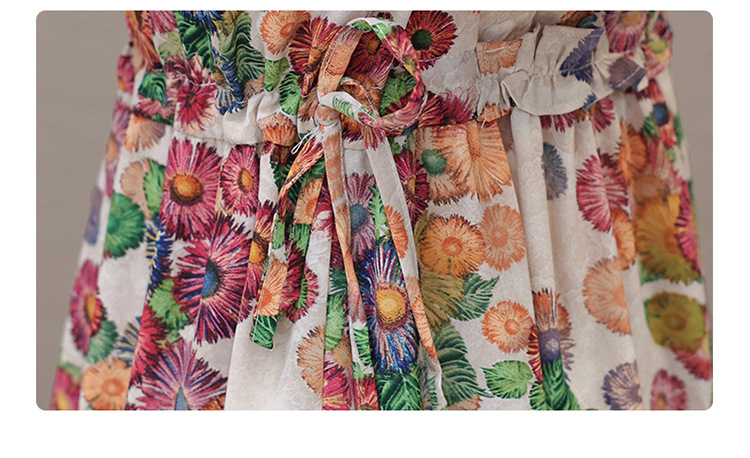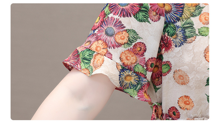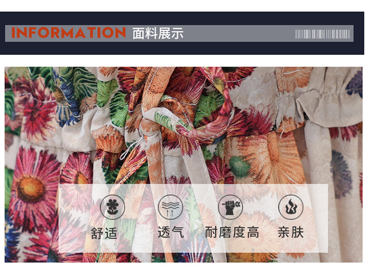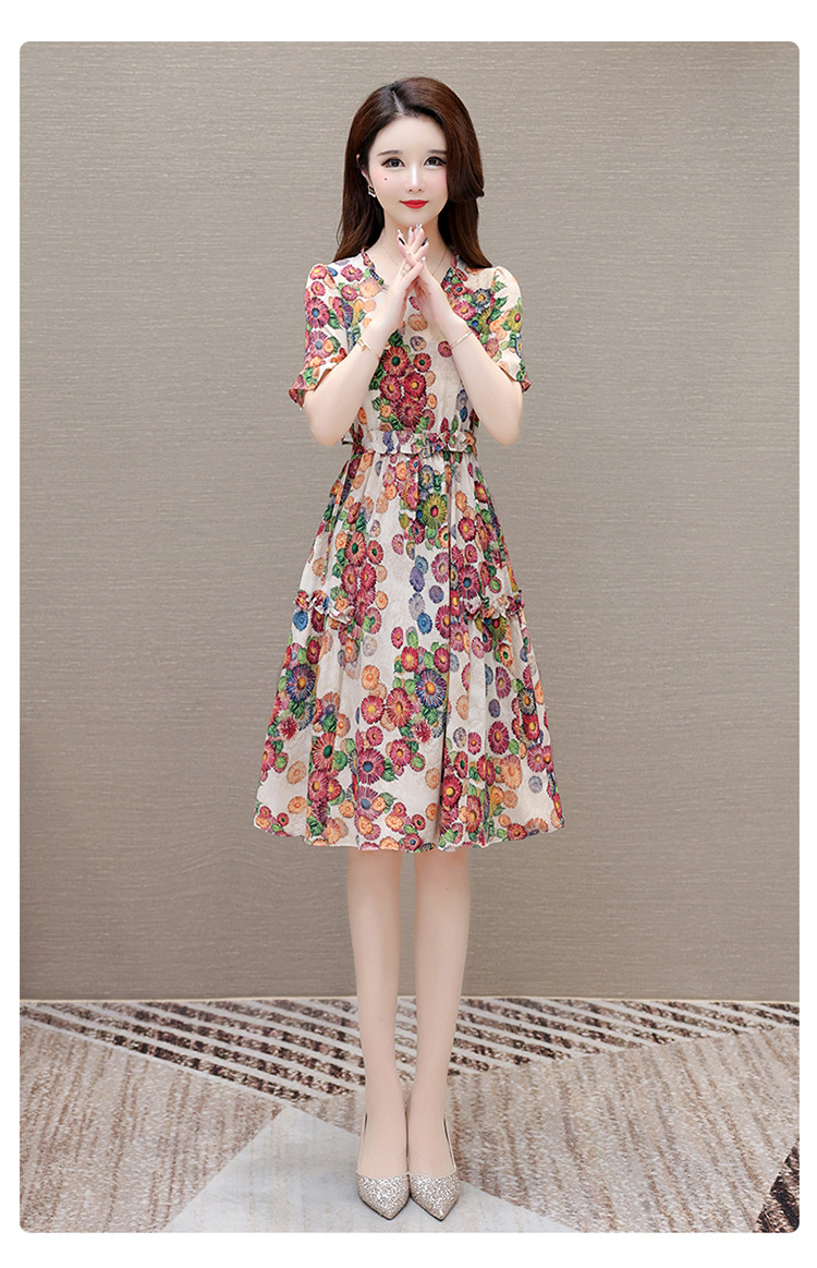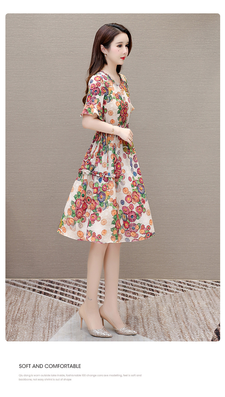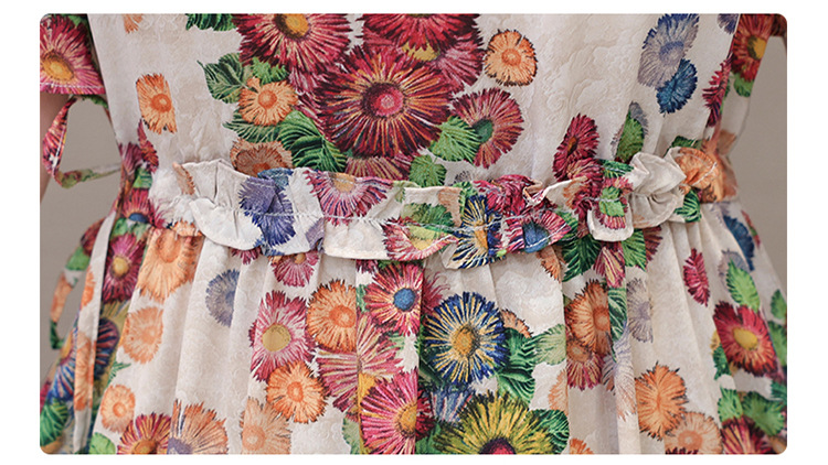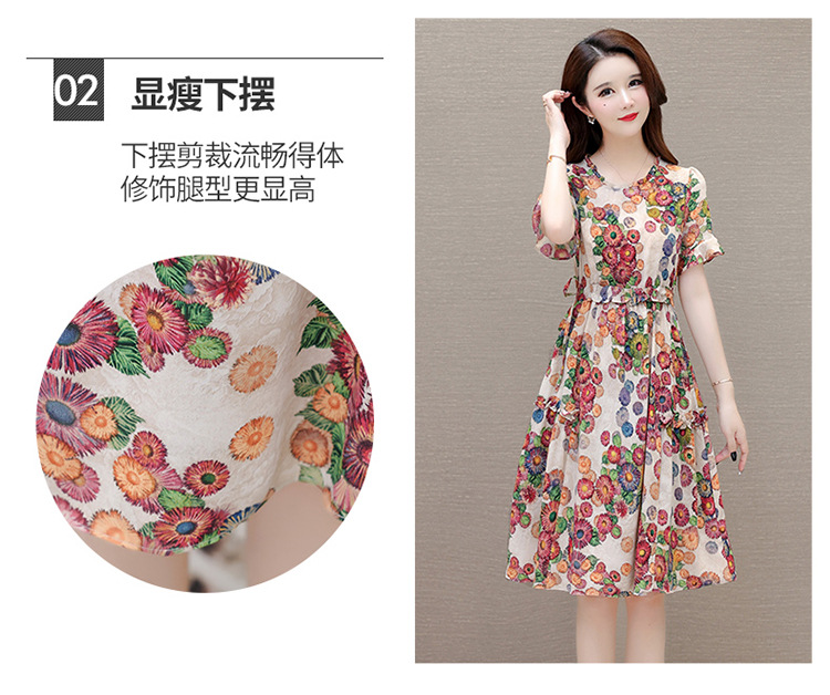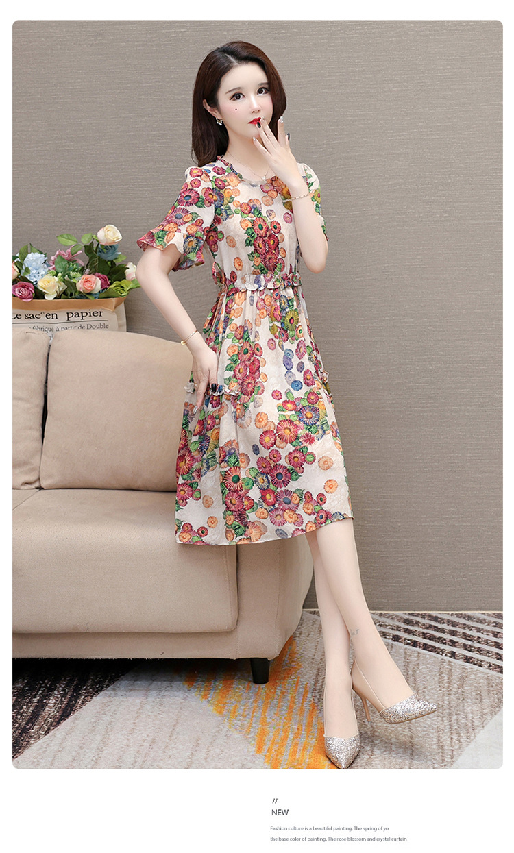 短袖圆领印花连衣裙,洋气收腰中长款A字裙QYM- JJ-HB246623-Y