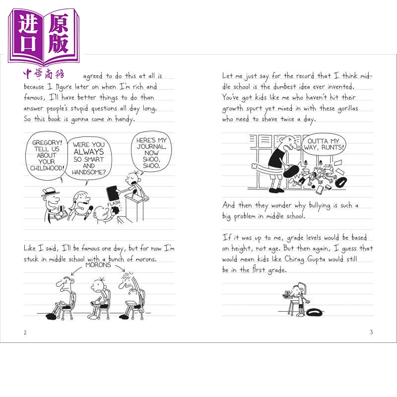 预售 【中商原版】企鹅小书 布面彩边 小屁孩日记 Diary of a Wimpy Kid Book 1 英文原版 儿童读物 Puffin85周年珍藏版 畅销经典