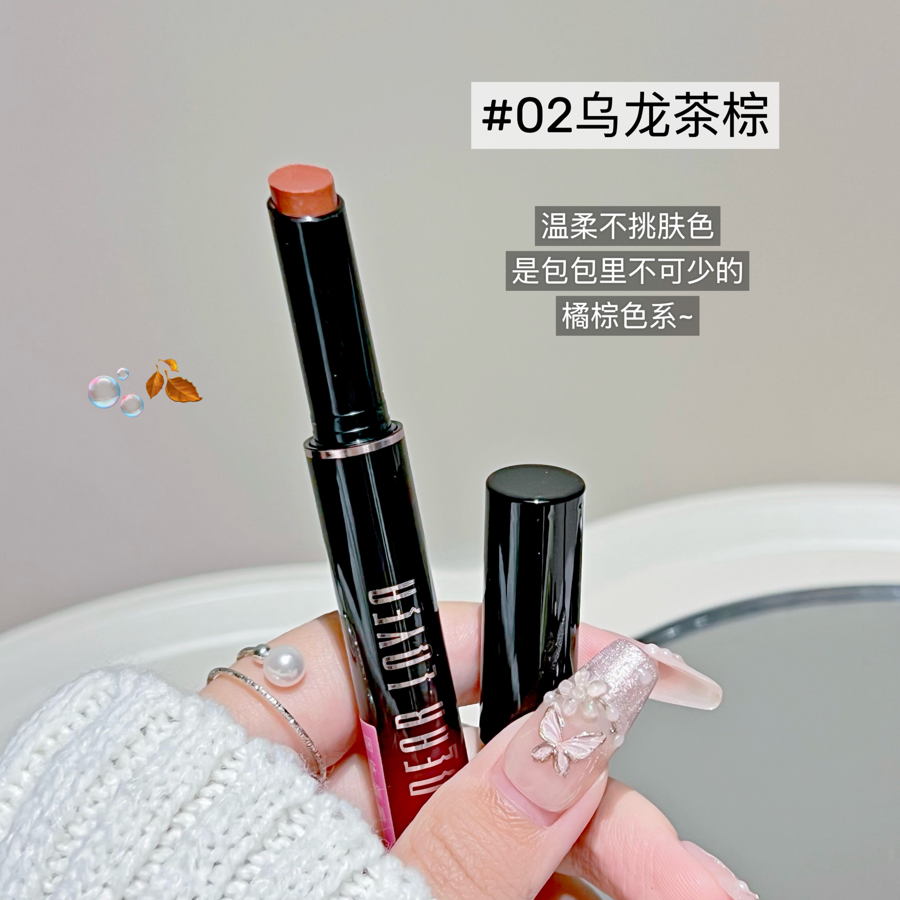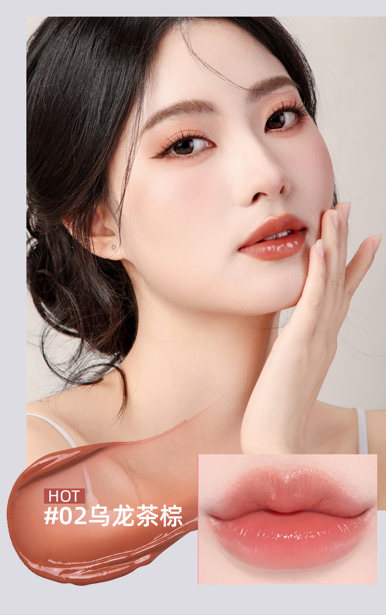 02 乌龙茶棕 清冷拽姐必备!低饱和茶棕色🌰 薄涂是慵懒白开水,厚涂秒变韩剧财阀千金~ 自带高级疏离感,黄皮上嘴显白三度! 水光感糅合棕调,像抿了一口冰乌龙茶,冷艳又高级!