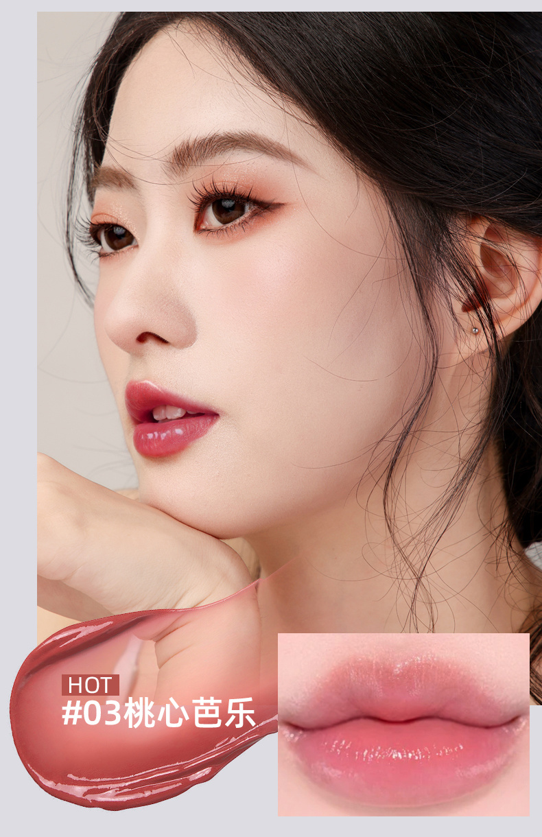 03 桃心芭乐 夏日心动狙击!蜜桃芭乐粉🍑 薄涂是少女脸颊的自然红晕,厚涂是明艳女团水光唇! 显白到发光,深唇也能涂出通透感~ 甜中带嗲,约会涂它直接被夸“今天超好看”!