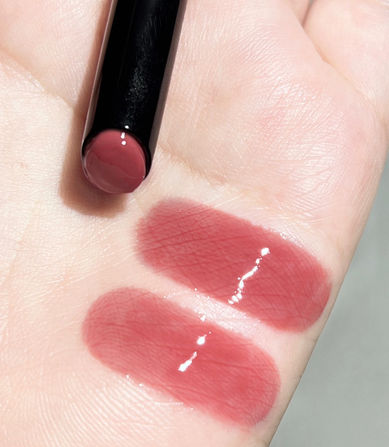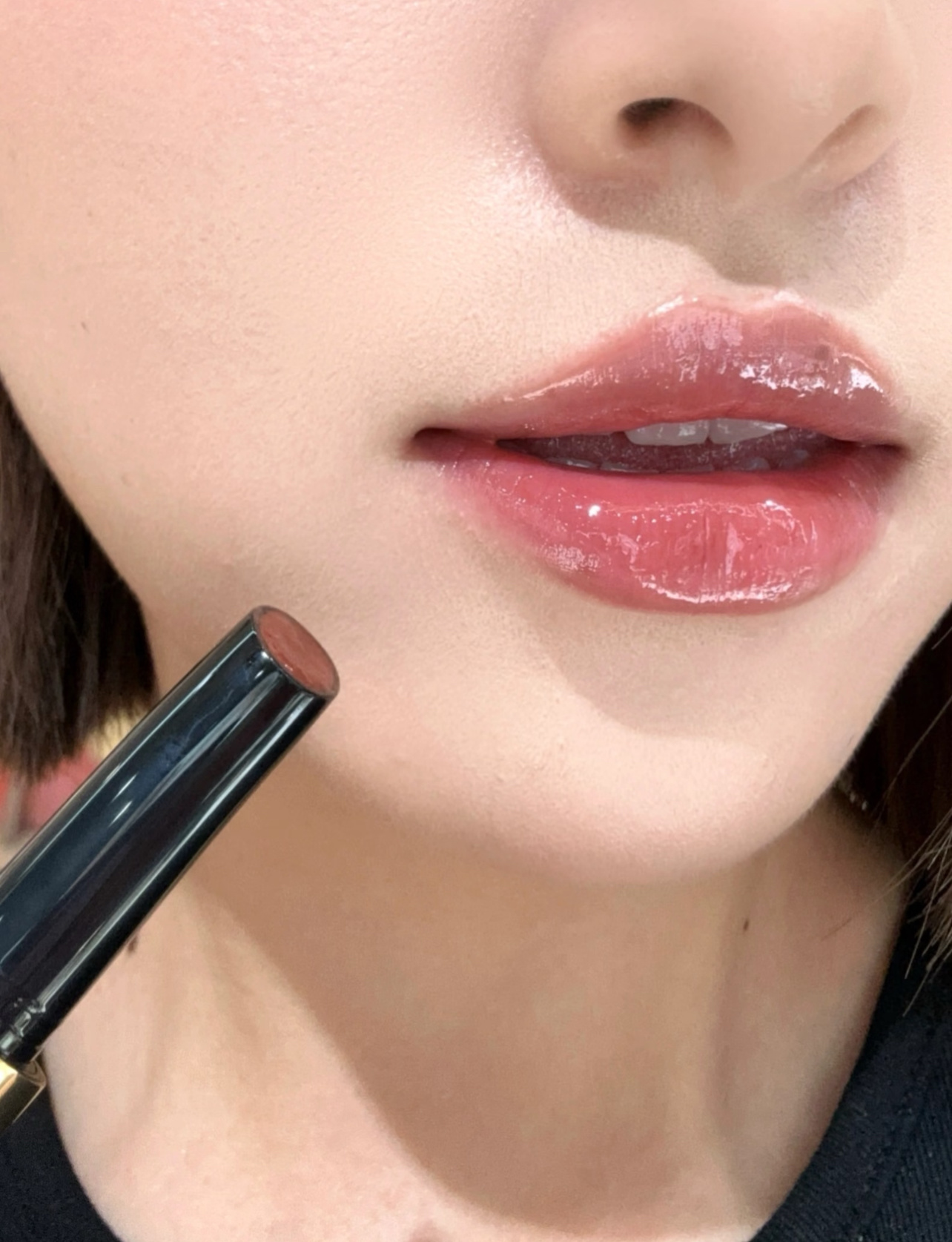 真的就是说一涂就化开了… 镜面感好piu亮✨ 显得嘴唇水嘟嘟配浓妆也绝了 整个妆容显得都很干净, 我愿称之为气质乖乖女色~~ 奶呼呼的好抬气色! 上班/约会都给我去涂这个!