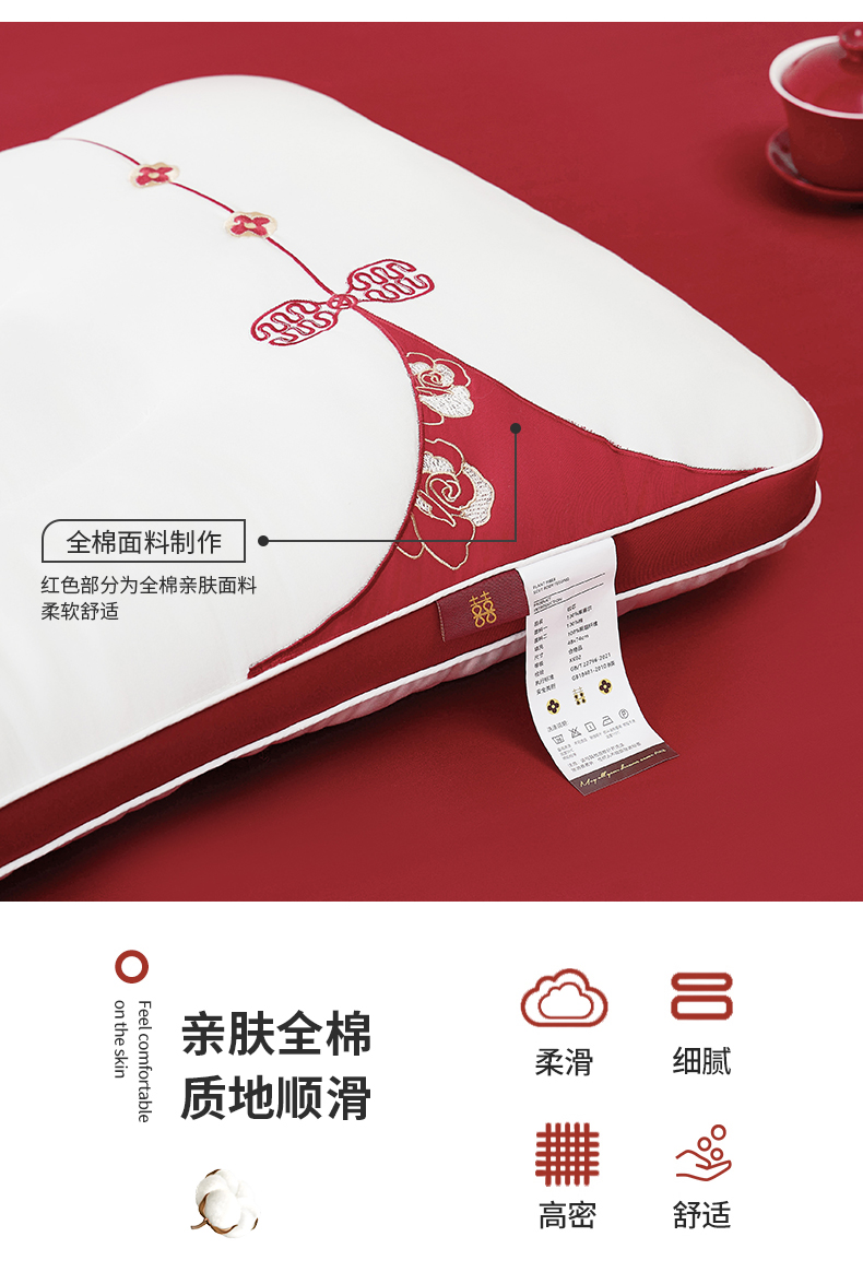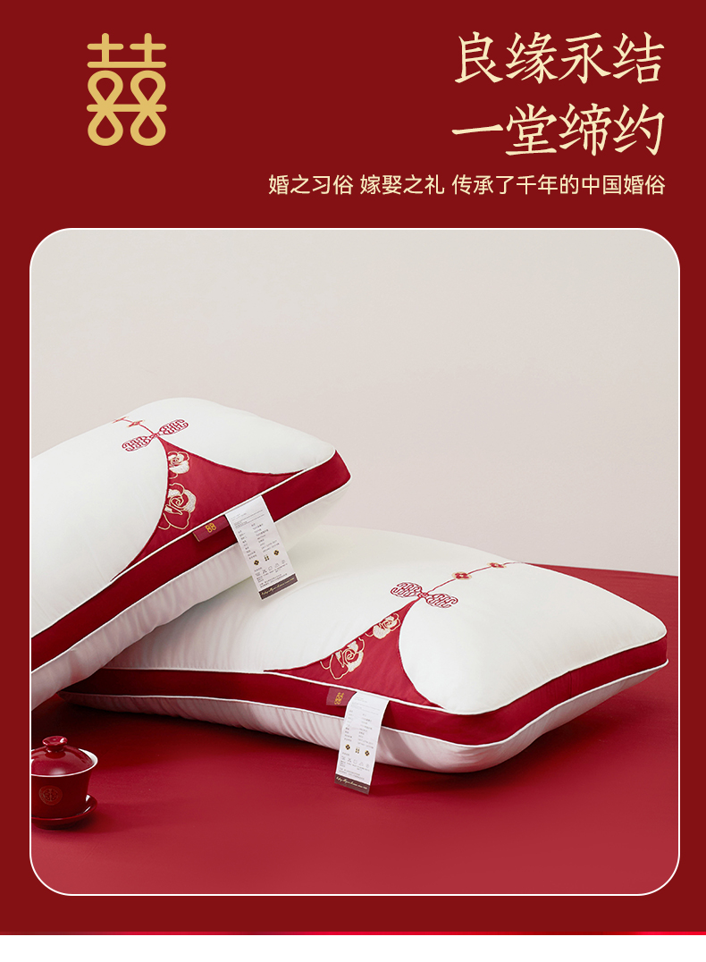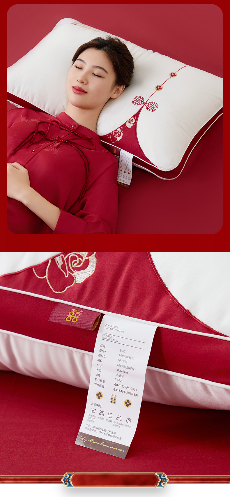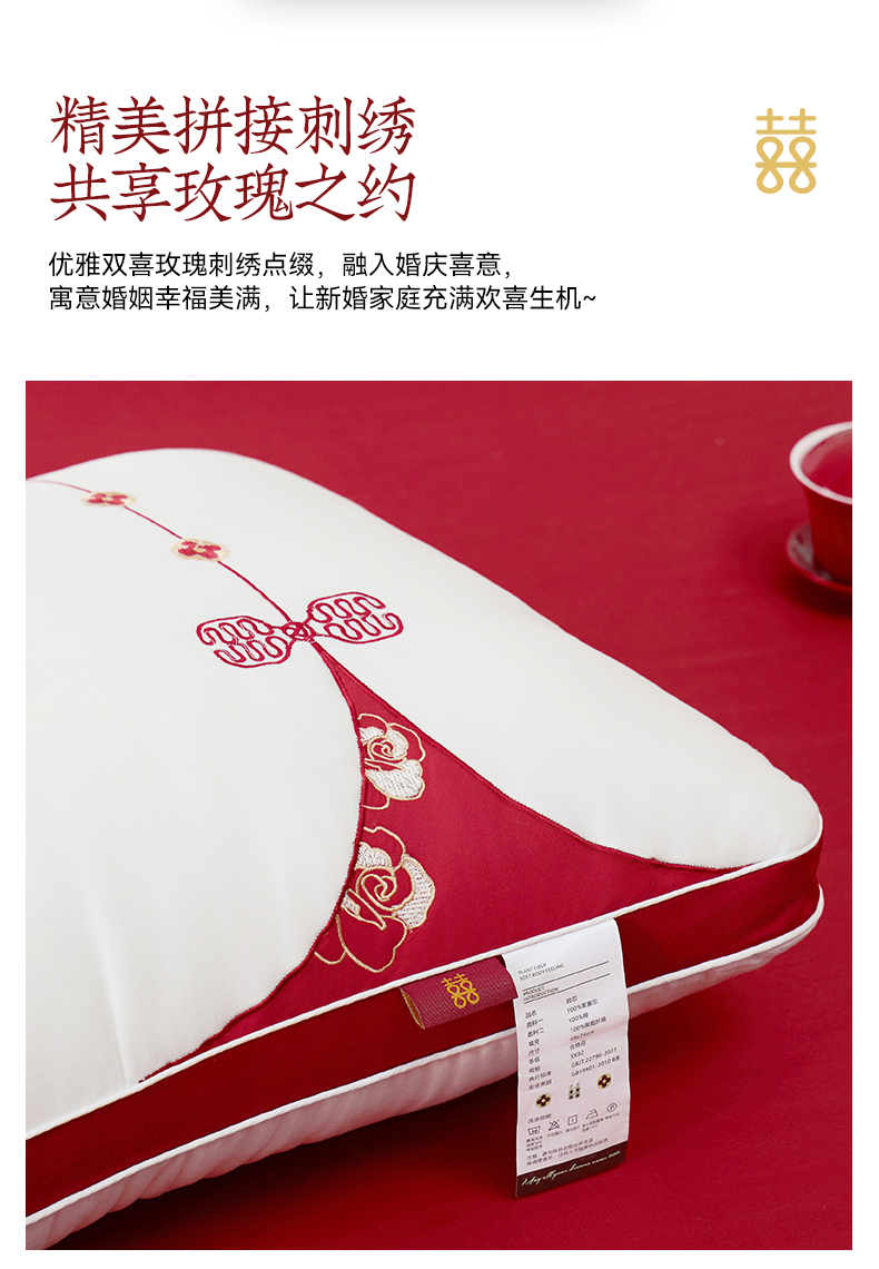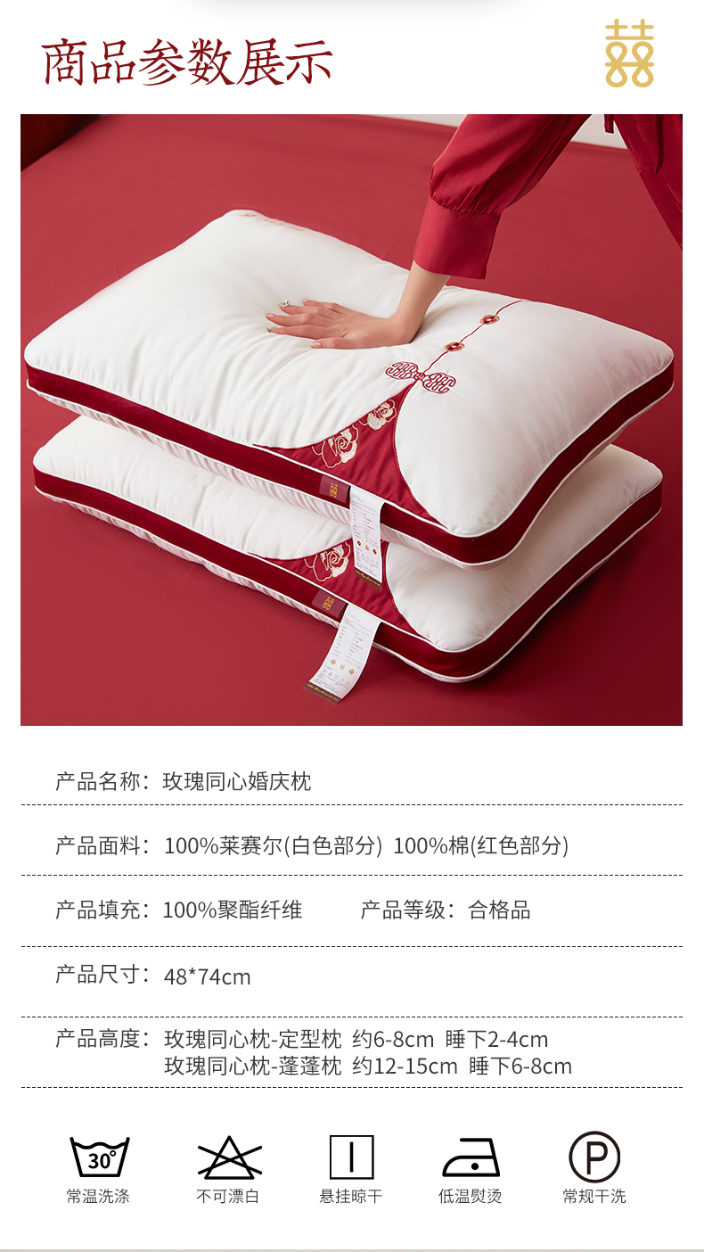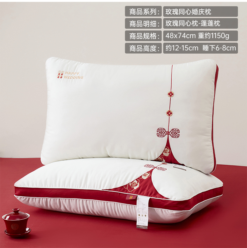 玫瑰同心婚庆枕 高端全棉莱赛尔天丝结婚枕芯