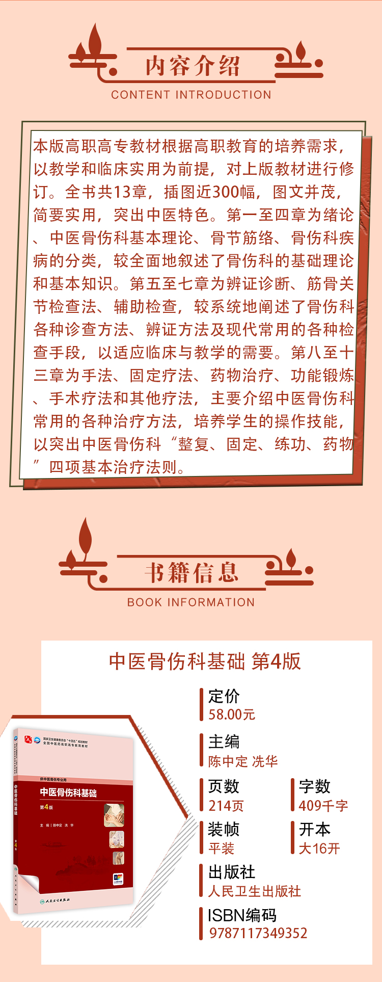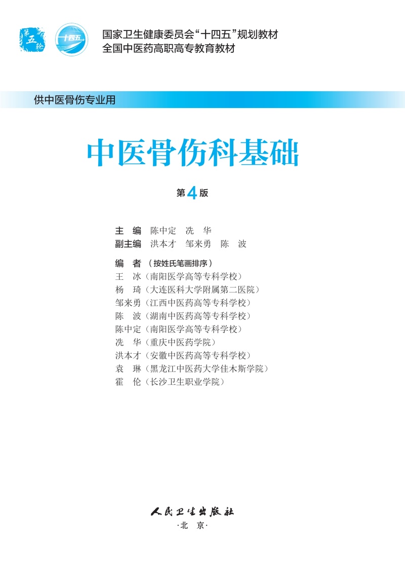 中医骨伤科基础 第4四版 十四五规划教材 全国中医药高职高专教育教材 陈中定 冼华 供中医骨伤专业用9787117349352人民卫生出版社