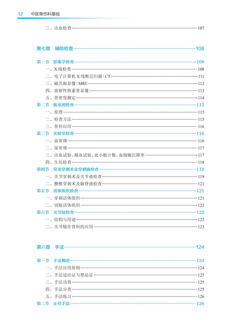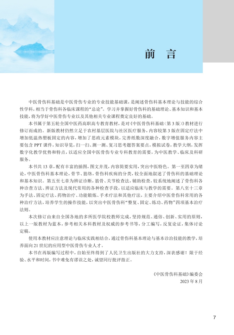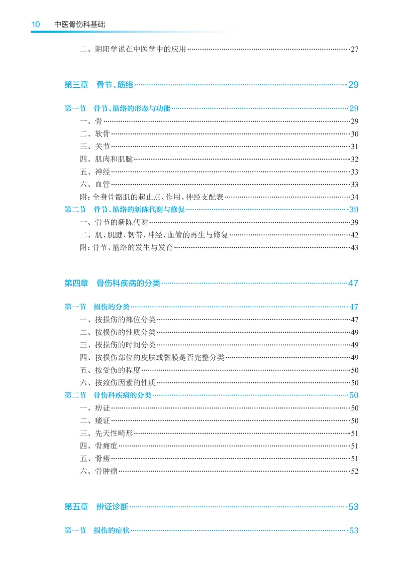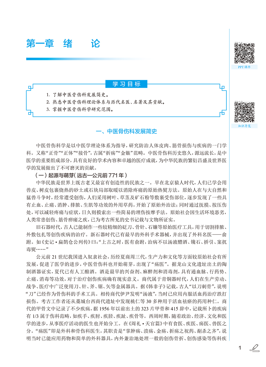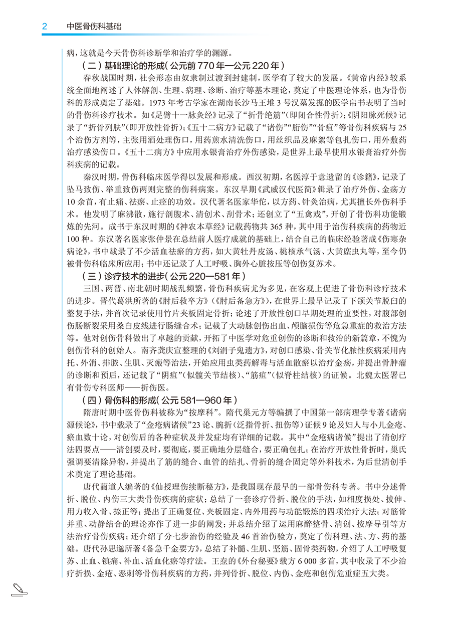本版高职高专教材根据高职教育的培养需求,以教学和临床实用为前提,对上版教材进行修订。全书共13章,插图近300幅,图文并茂,简要实用,突出中医特色。第一至四章为绪论、中医骨伤科基本理论、骨节筋络、骨伤科疾病的分类,较全面地叙述了骨伤科的基础理论和基本知识。第五至七章为辨证诊断、筋骨关节检查法、辅助检查,较系统地阐述了骨伤科各种诊查方法、辨证方法及现代常用的各种检查手段,以适应临床与教学的需要。第八至十三章为手法、固定疗法、药物治疗、功能锻炼、手术疗法和其他疗法,主要介绍中医骨伤科常用的各种治疗方法,培养学生的操作技能,以突出中医骨伤科“整复、固定、练功、药物”四项基本治疗法则。