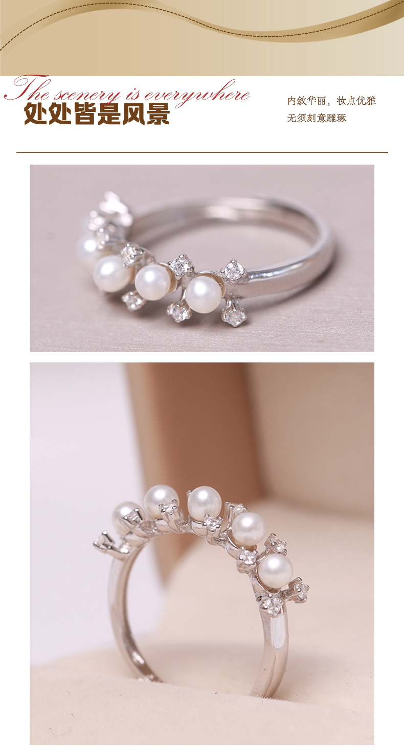 美裕 925银淡水珍珠戒指 可调节 3-4mm 108490W