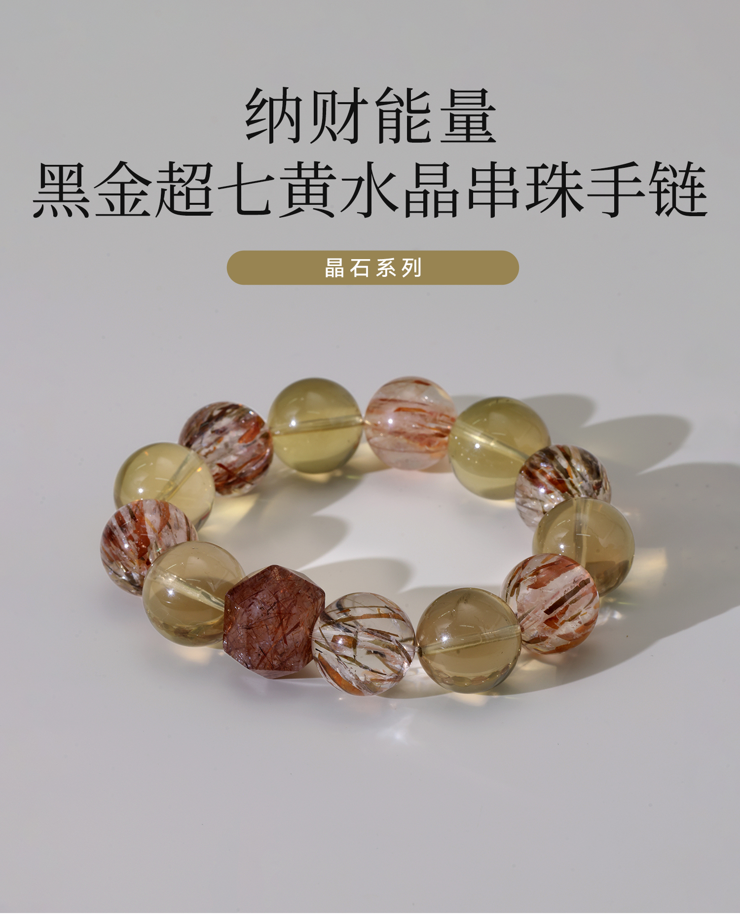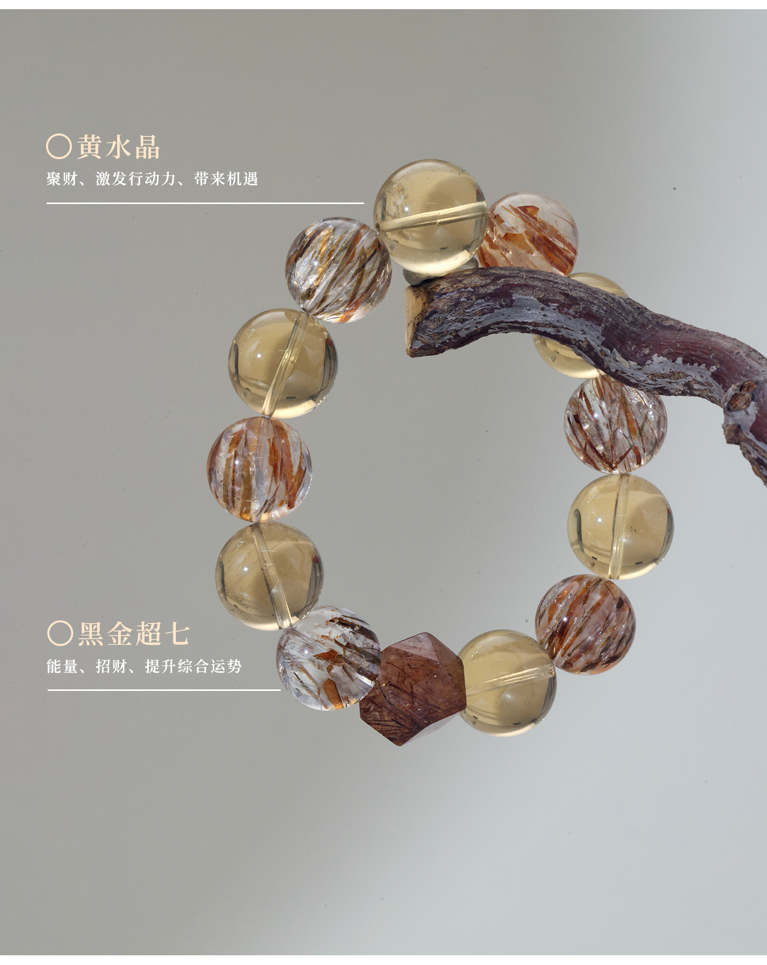 ARSIS|晶石系列 纳财能量·黑金超七黄水晶串珠手链