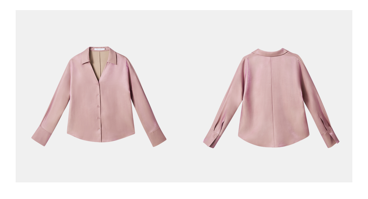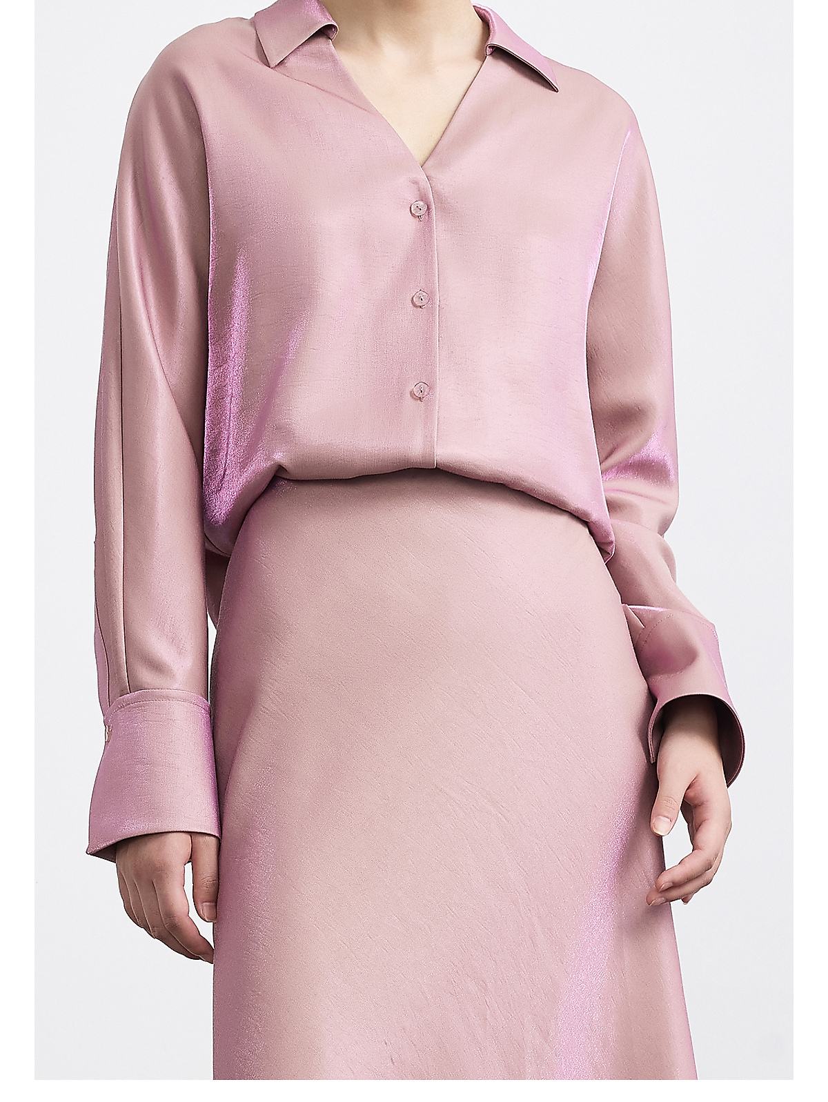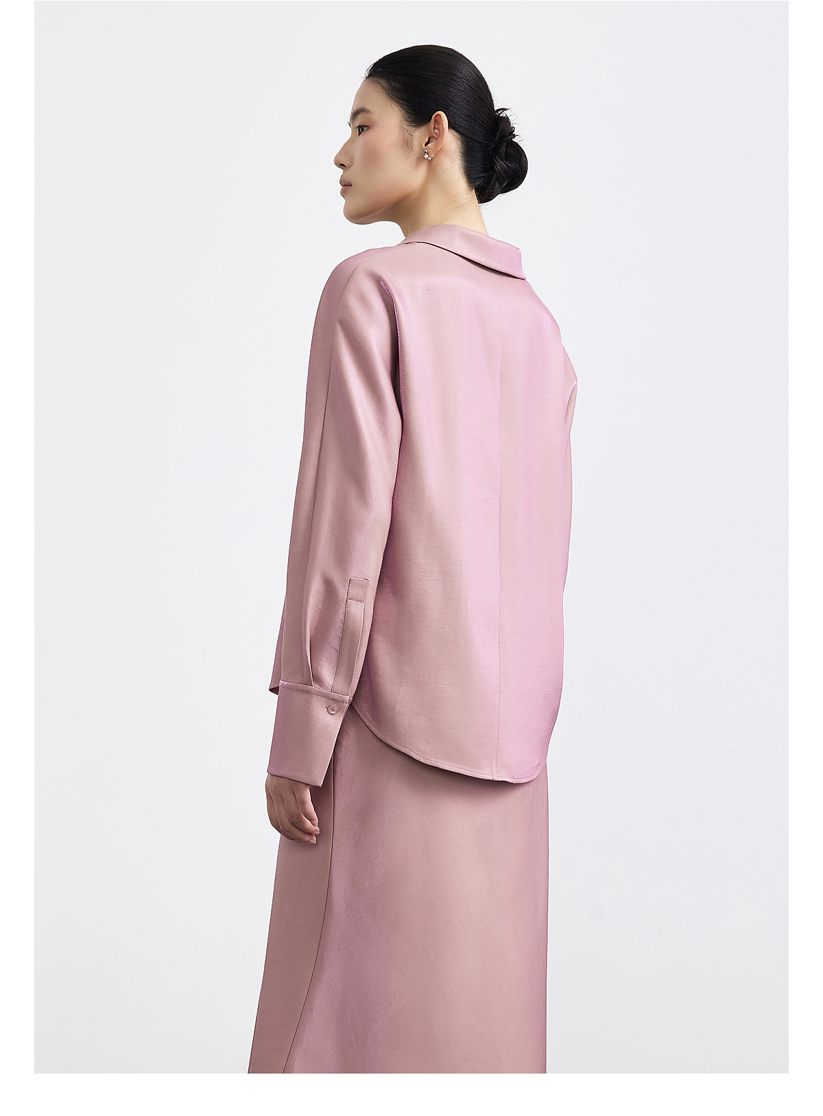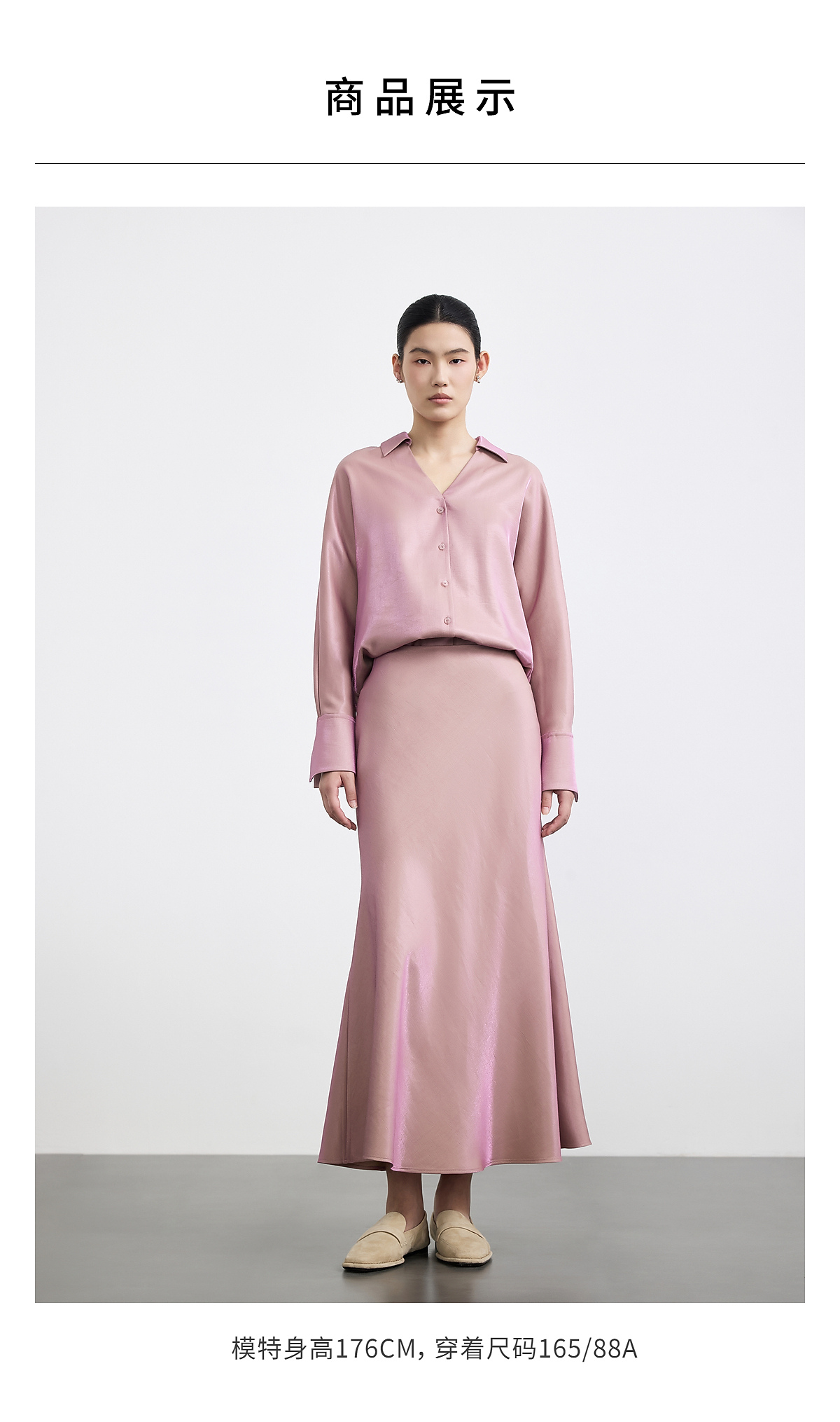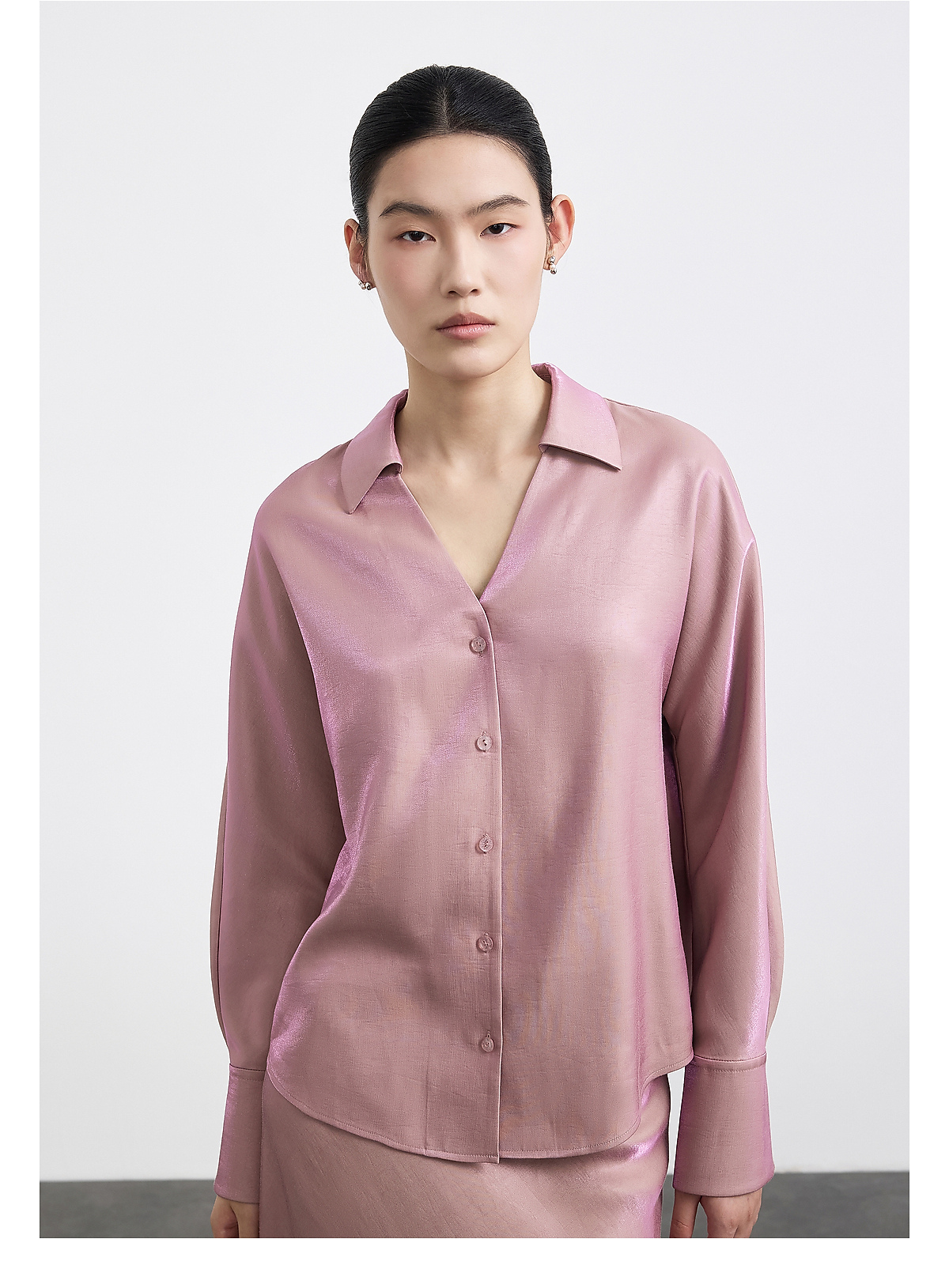 PURE TOUCH女装 25秋冬新款v领缎面长袖衬衫极简直筒微收腰珠光感