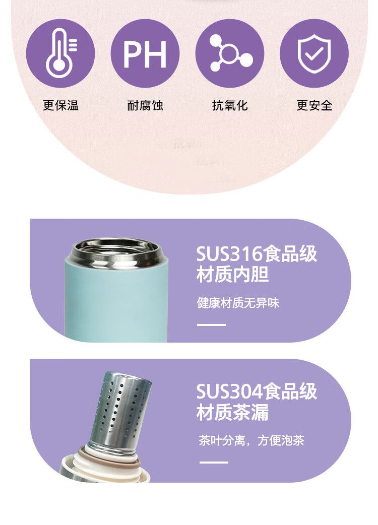 飞利浦PHILIPS保温杯316不锈钢随身杯便携杯茶水分离口袋杯办公200ml AWP2564