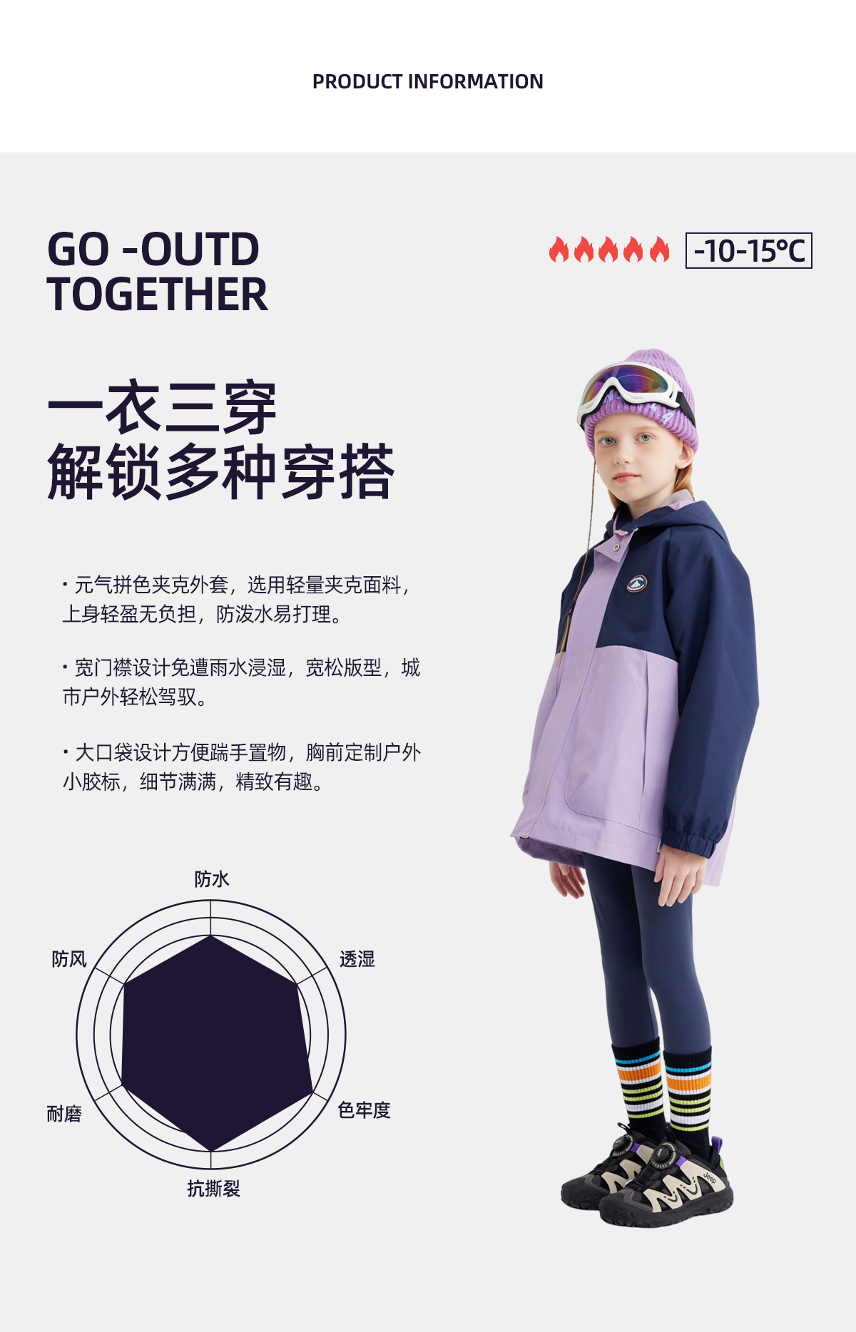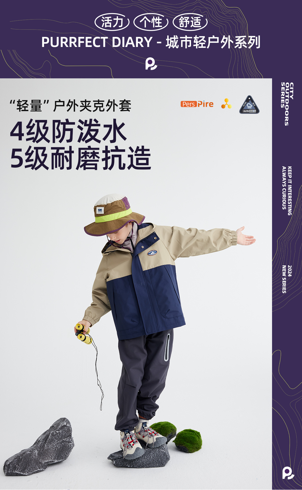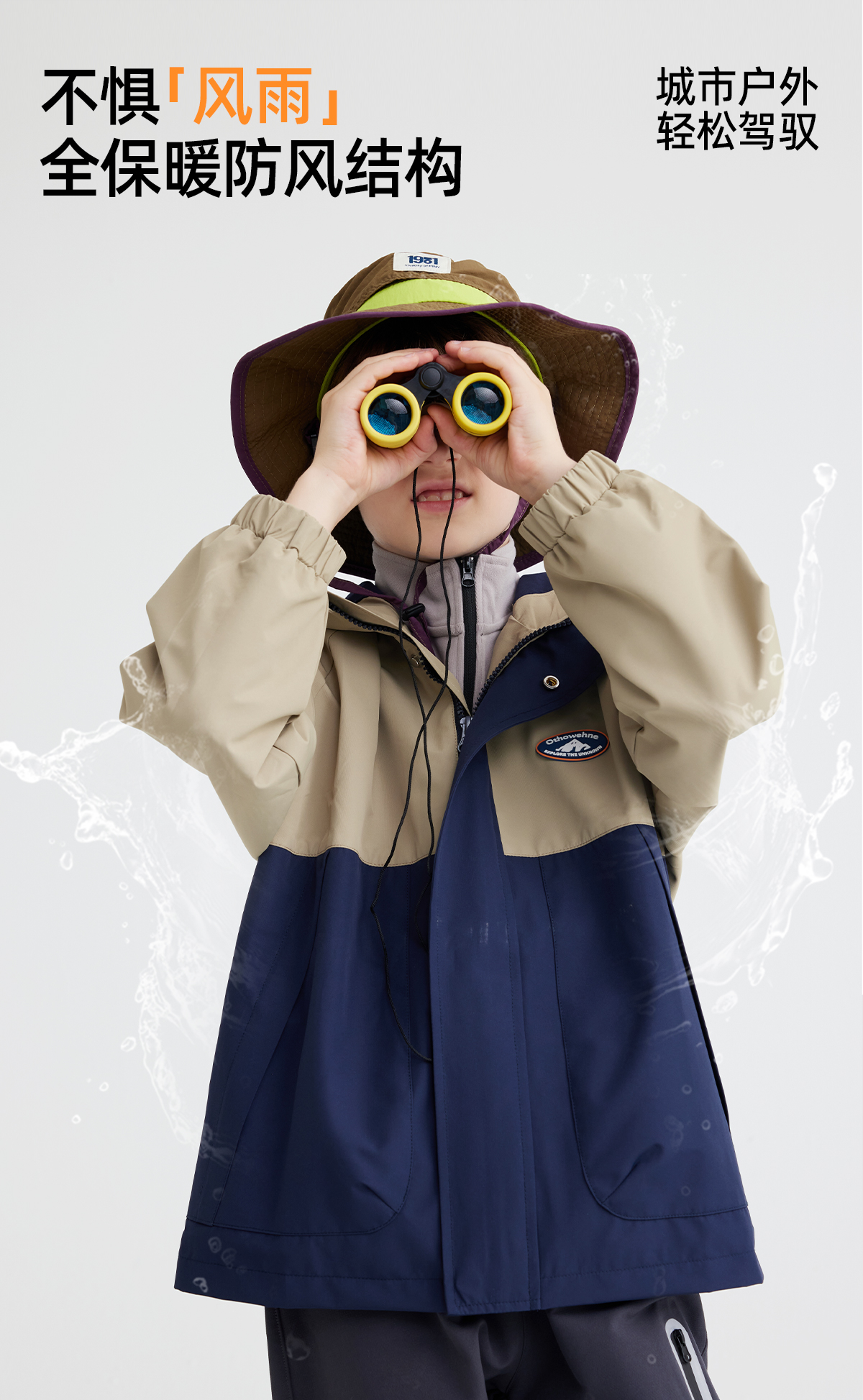 【高密三防硬挺系列】儿童徽标户外夹克外套 PQWT2417