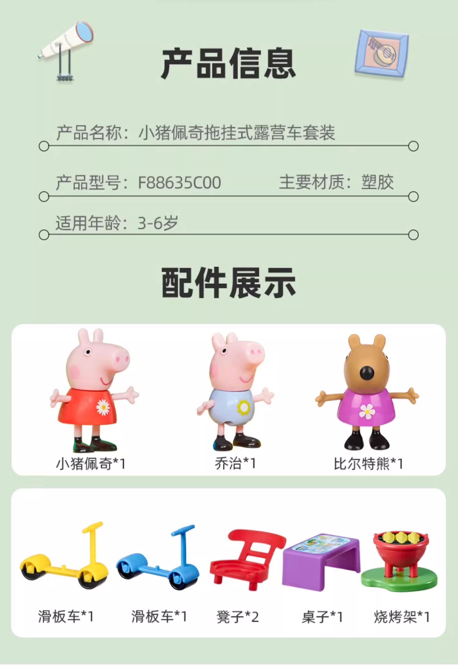 孩之宝Hasbro 小猪佩奇拖挂式露营车套装HASCF88635C00