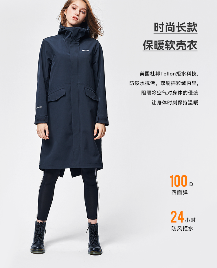 伯希和户外软壳衣女中长款防风休闲显瘦运动风衣透气耐磨登山外套