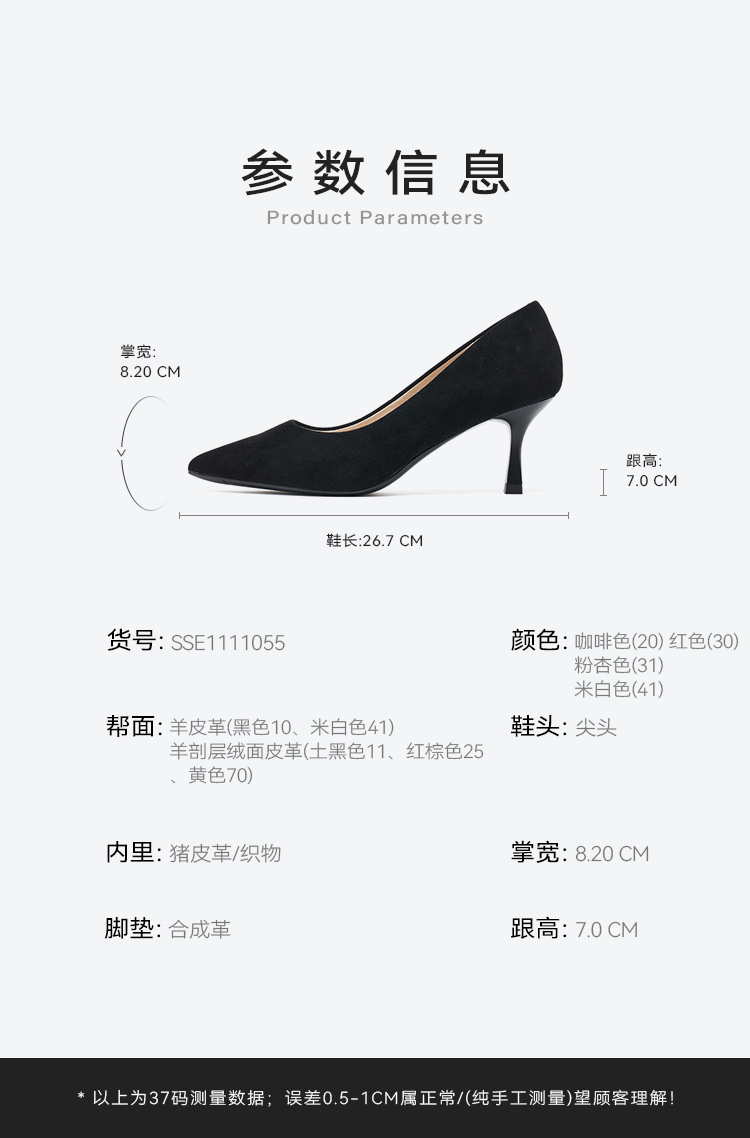 【糯米糍系列】星期六26春新款极简风日常通勤百搭细跟单鞋SSE1111055