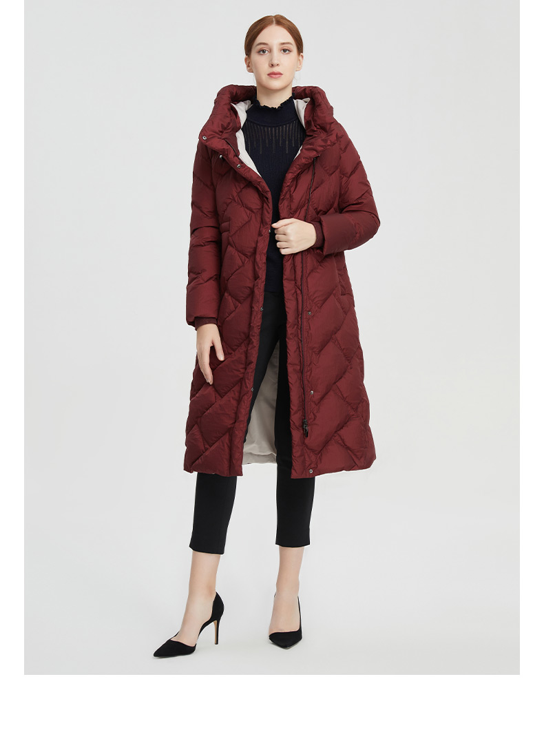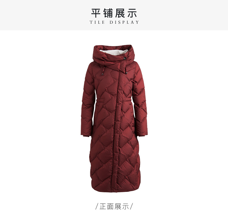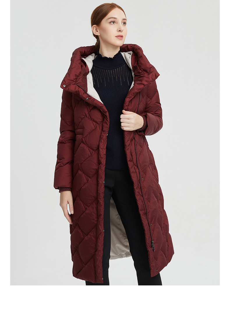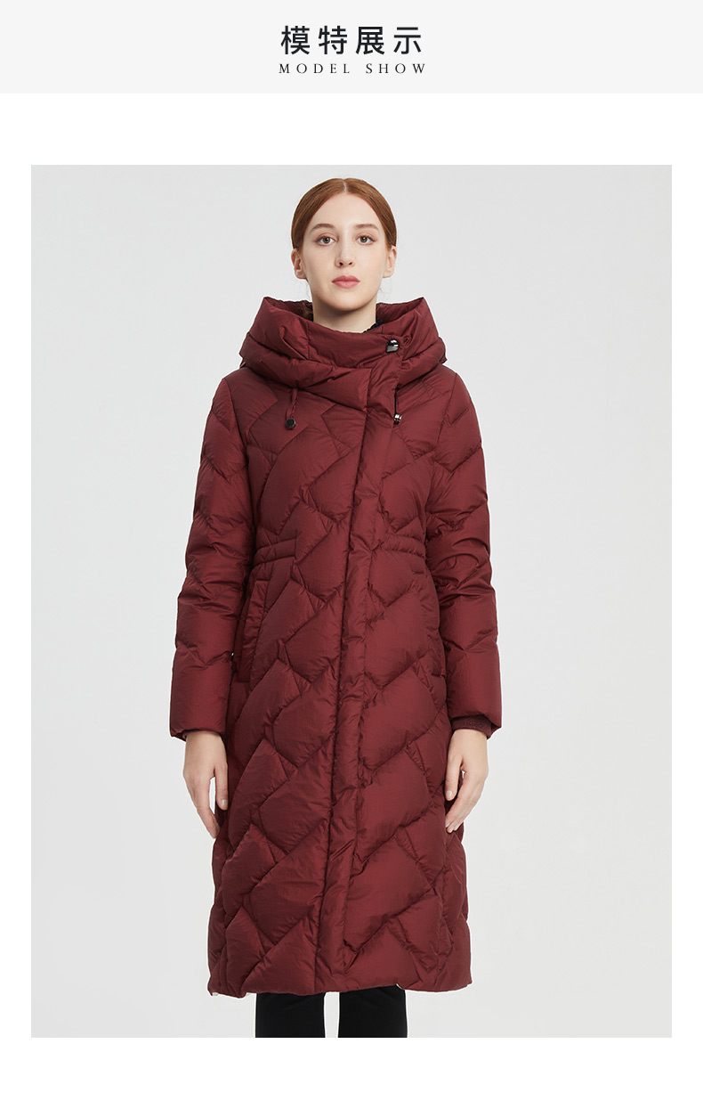 皮尔卡丹女装时尚复古红保暖通勤收腰连帽羽绒服P1489Y1411T0