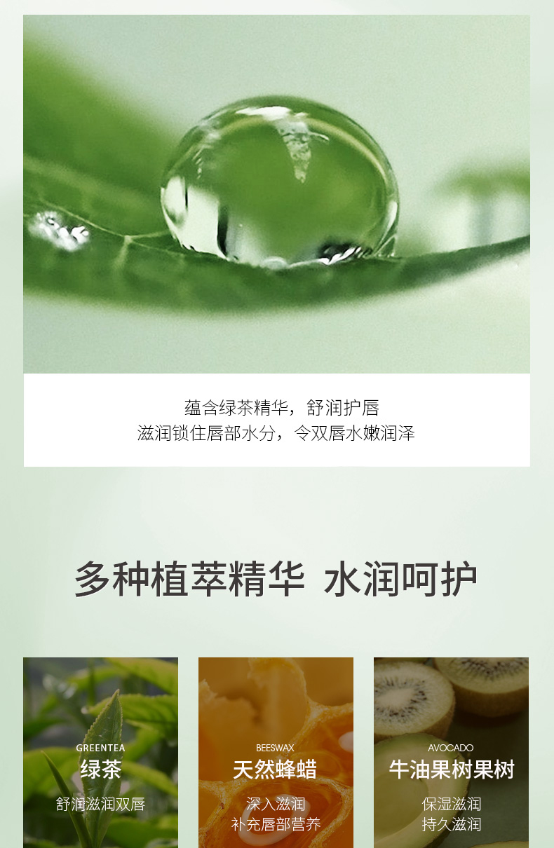 雪完美绿茶润唇膏3.2g无色滋润保湿护唇膏