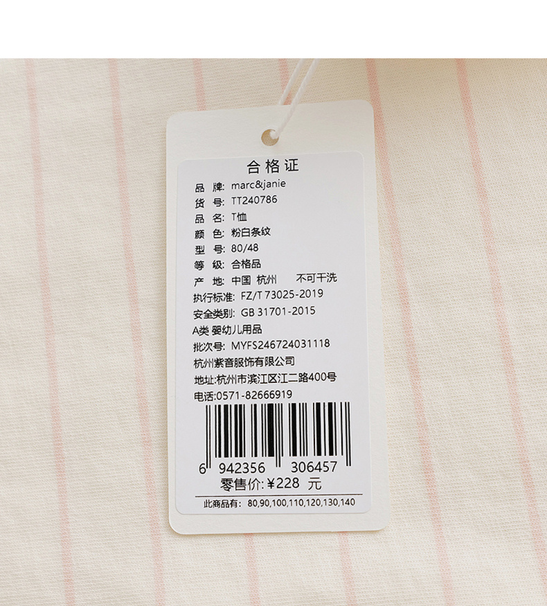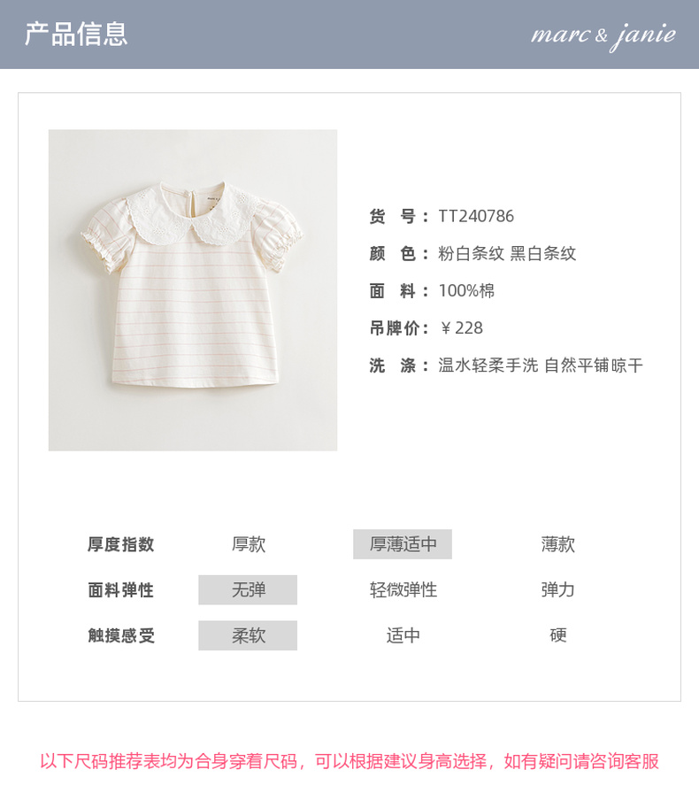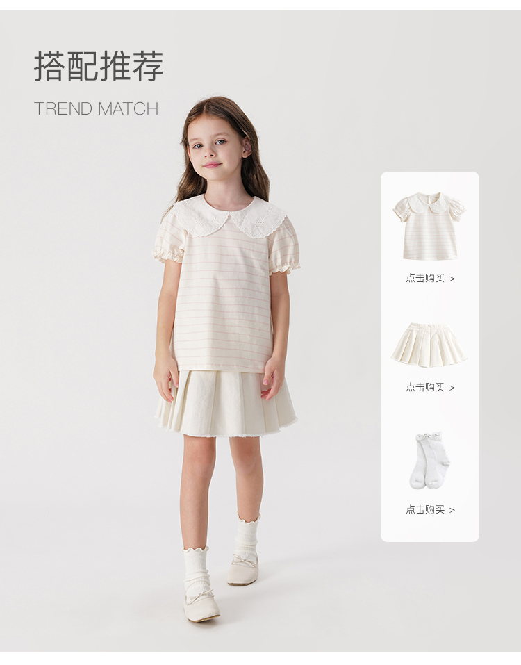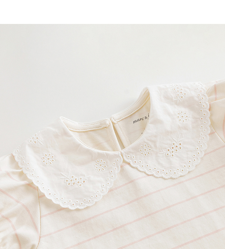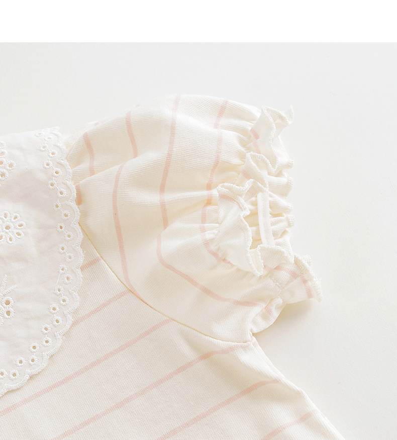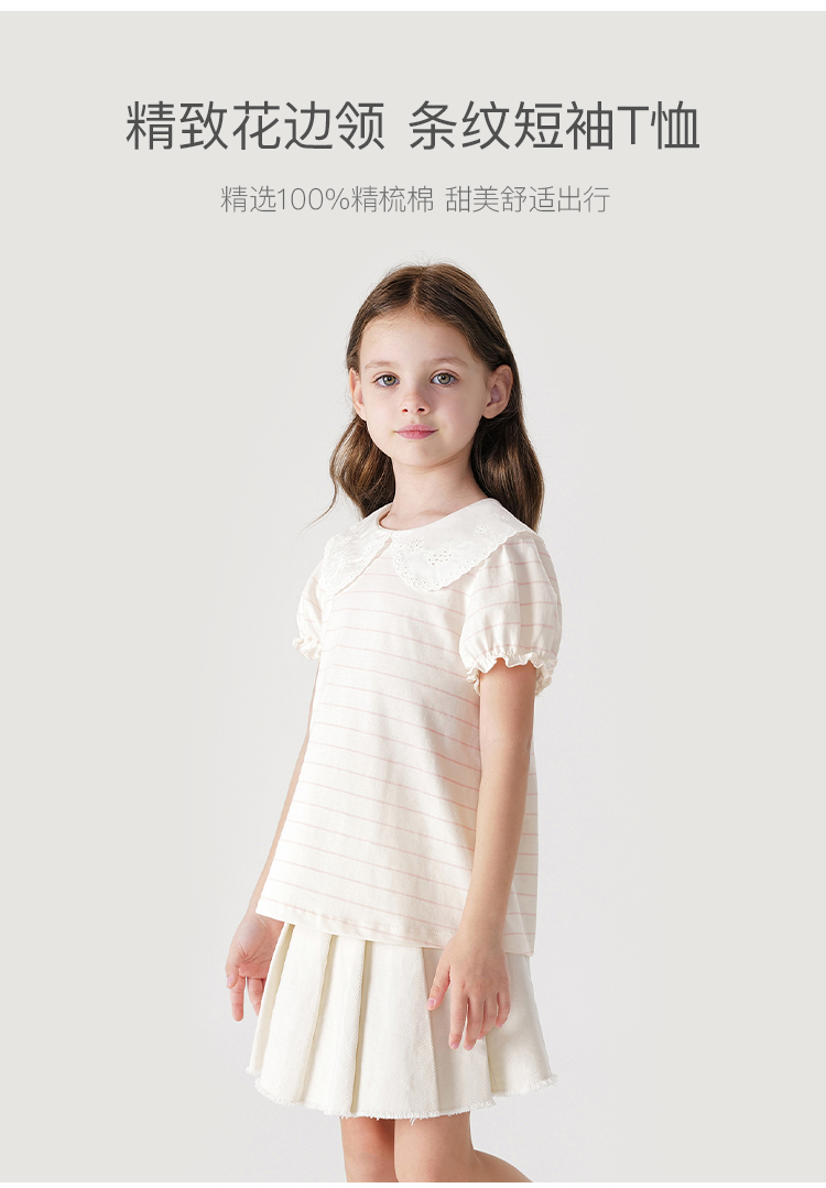 马克珍妮女童花边领泡泡袖条纹短袖T恤 儿童上衣夏装新款240786
