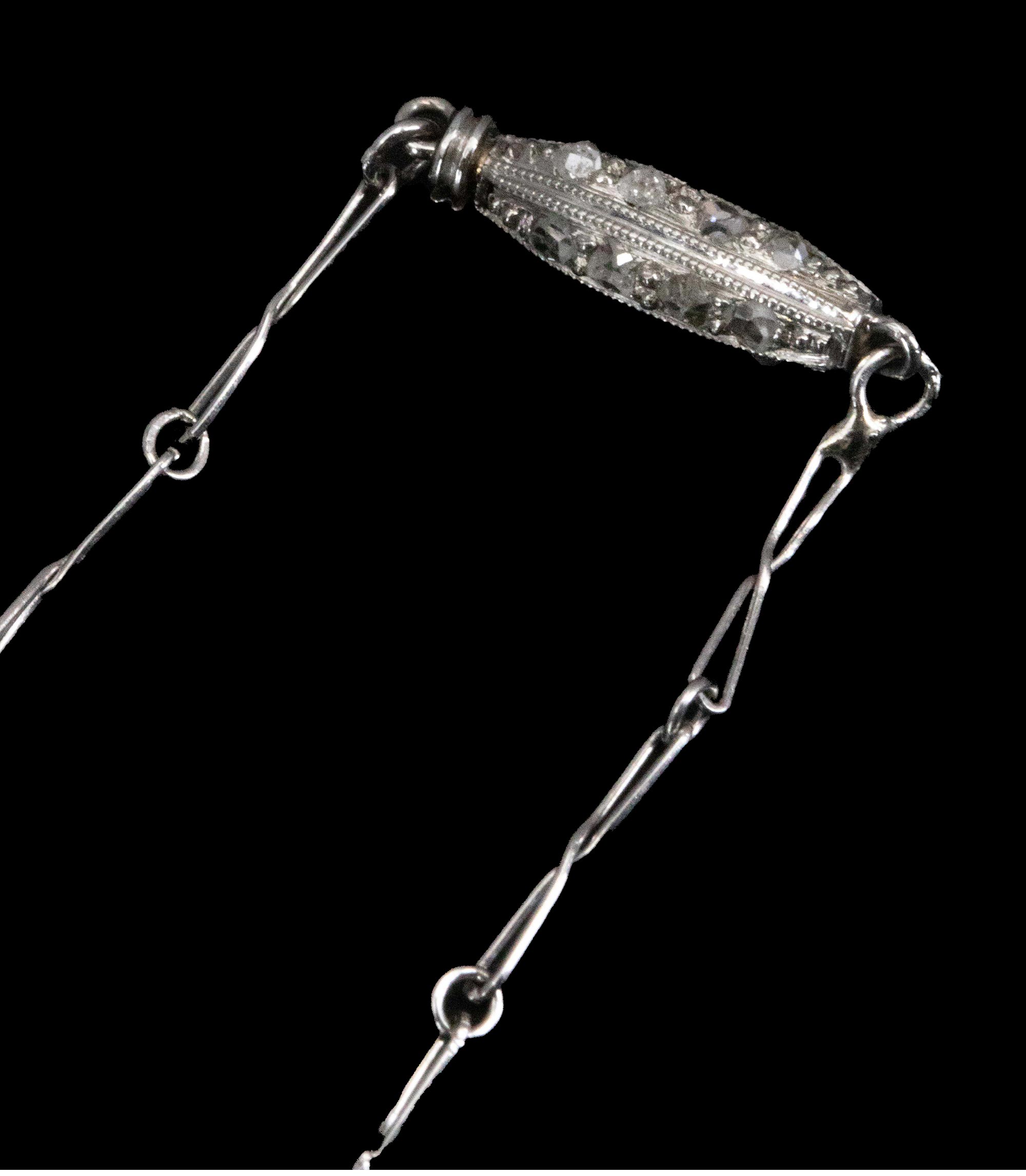 独角鹿西洋古董 1920年代法国出品美好时代风格花束造型铂金镶嵌钻石及天然海水珍珠吊坠项链