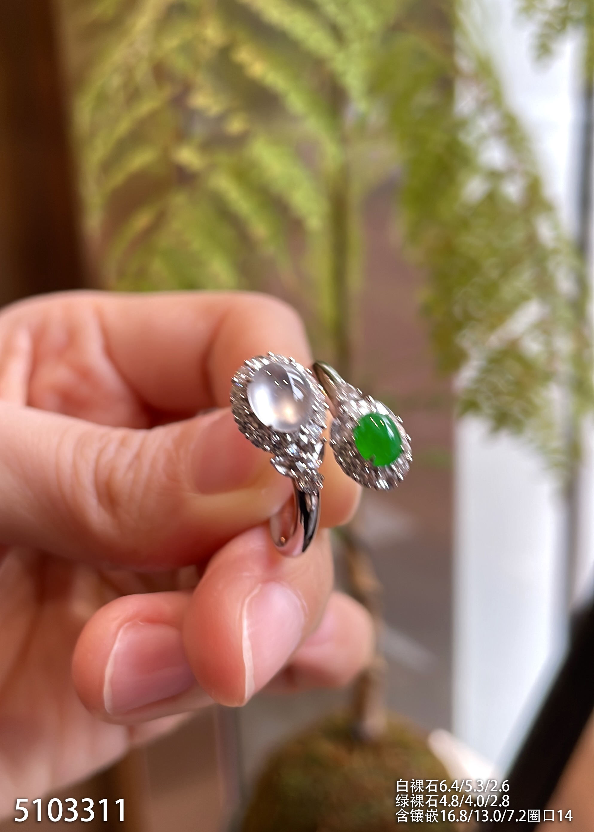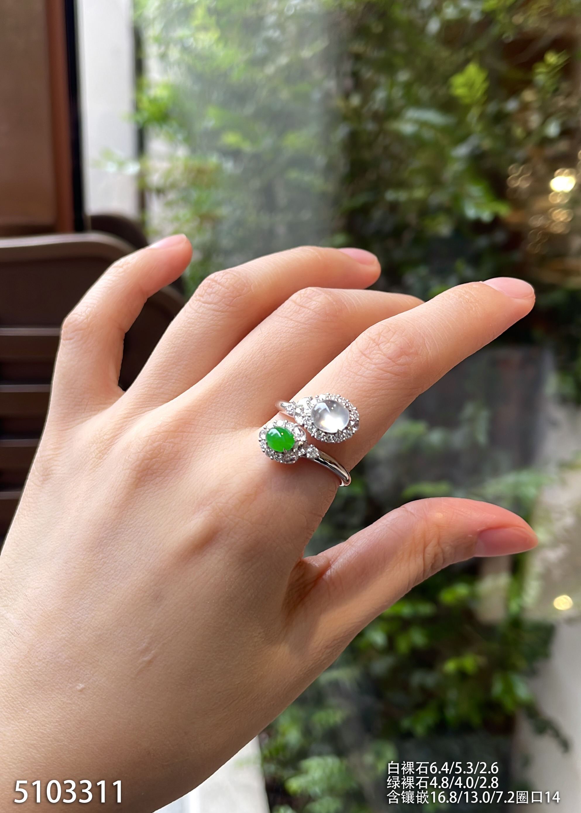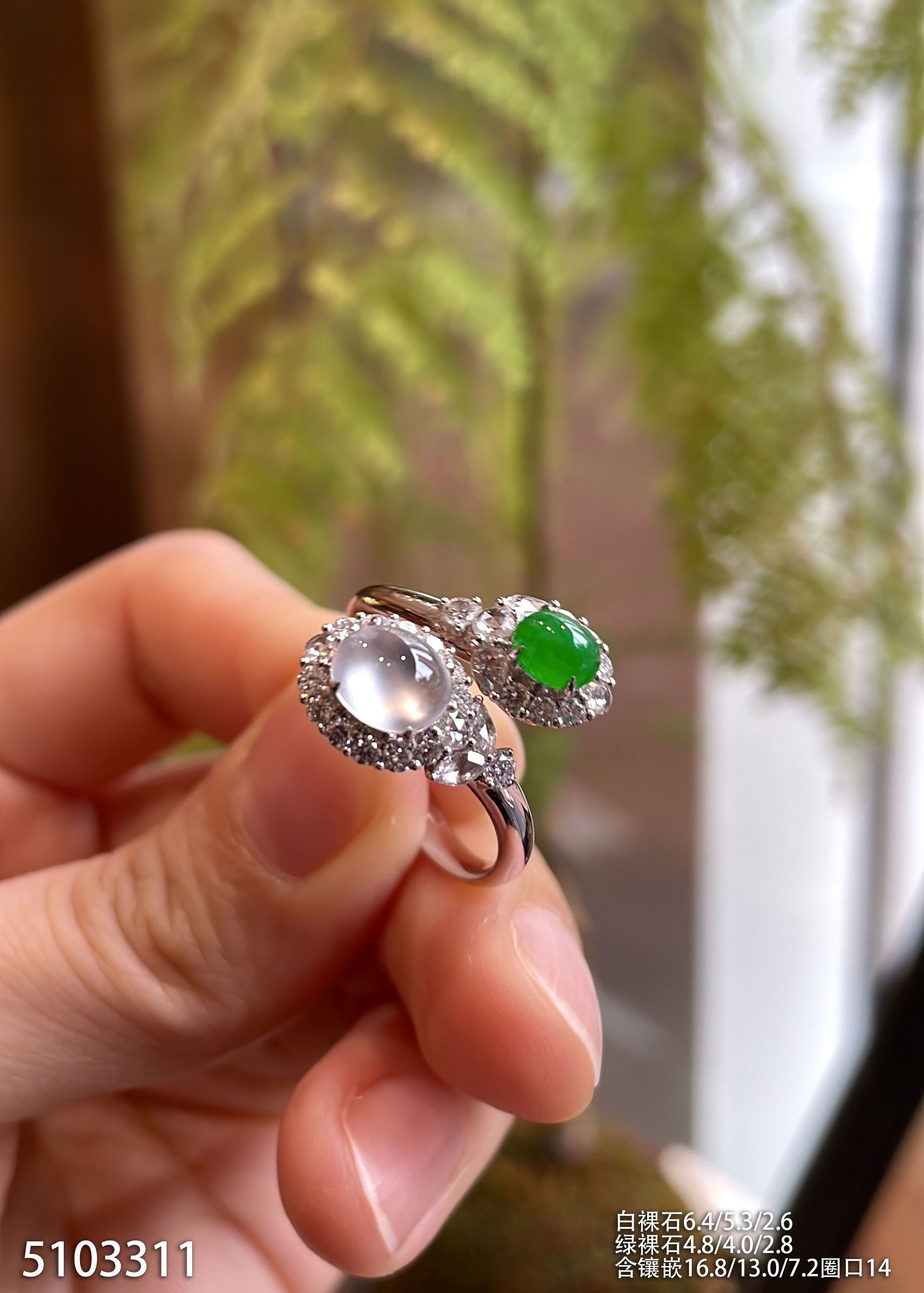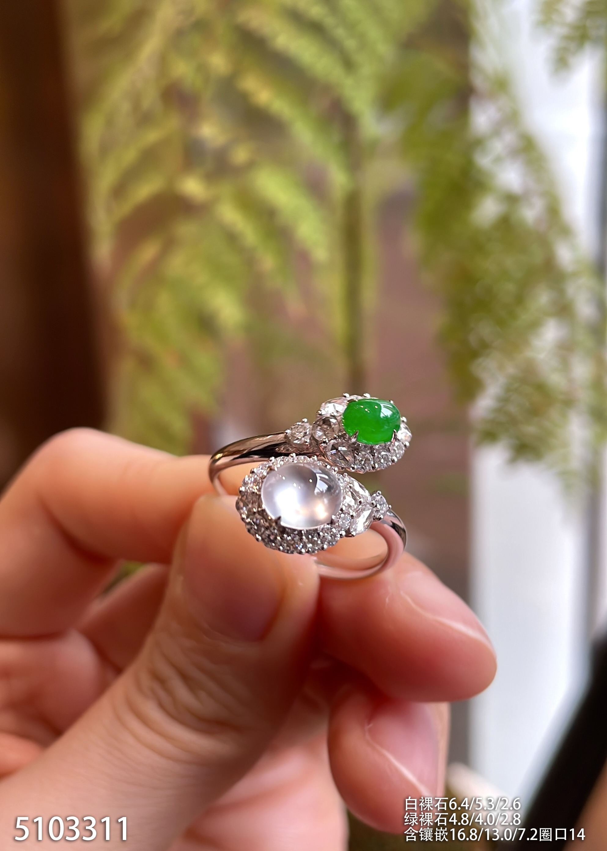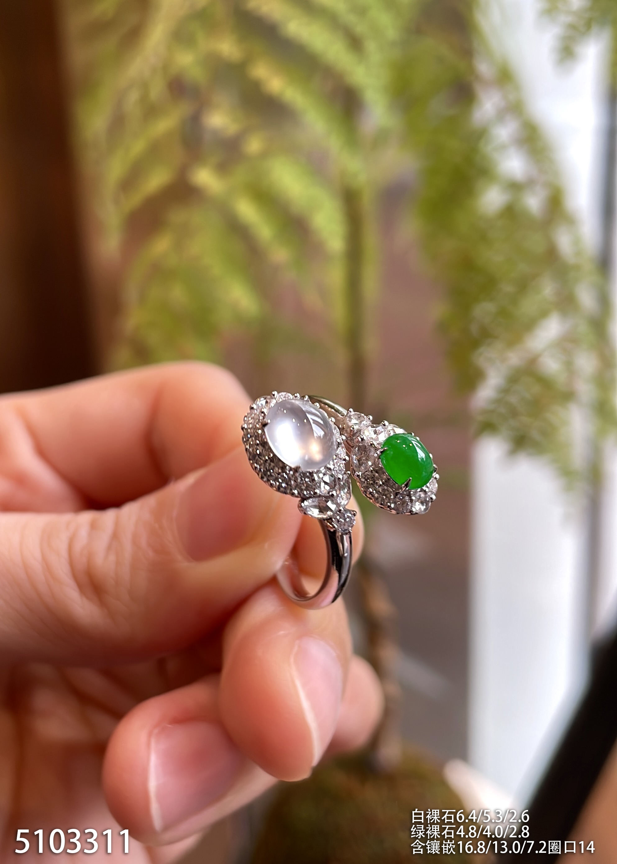 132-2123701,老坑高冰艳绿蛋面戒指,6599