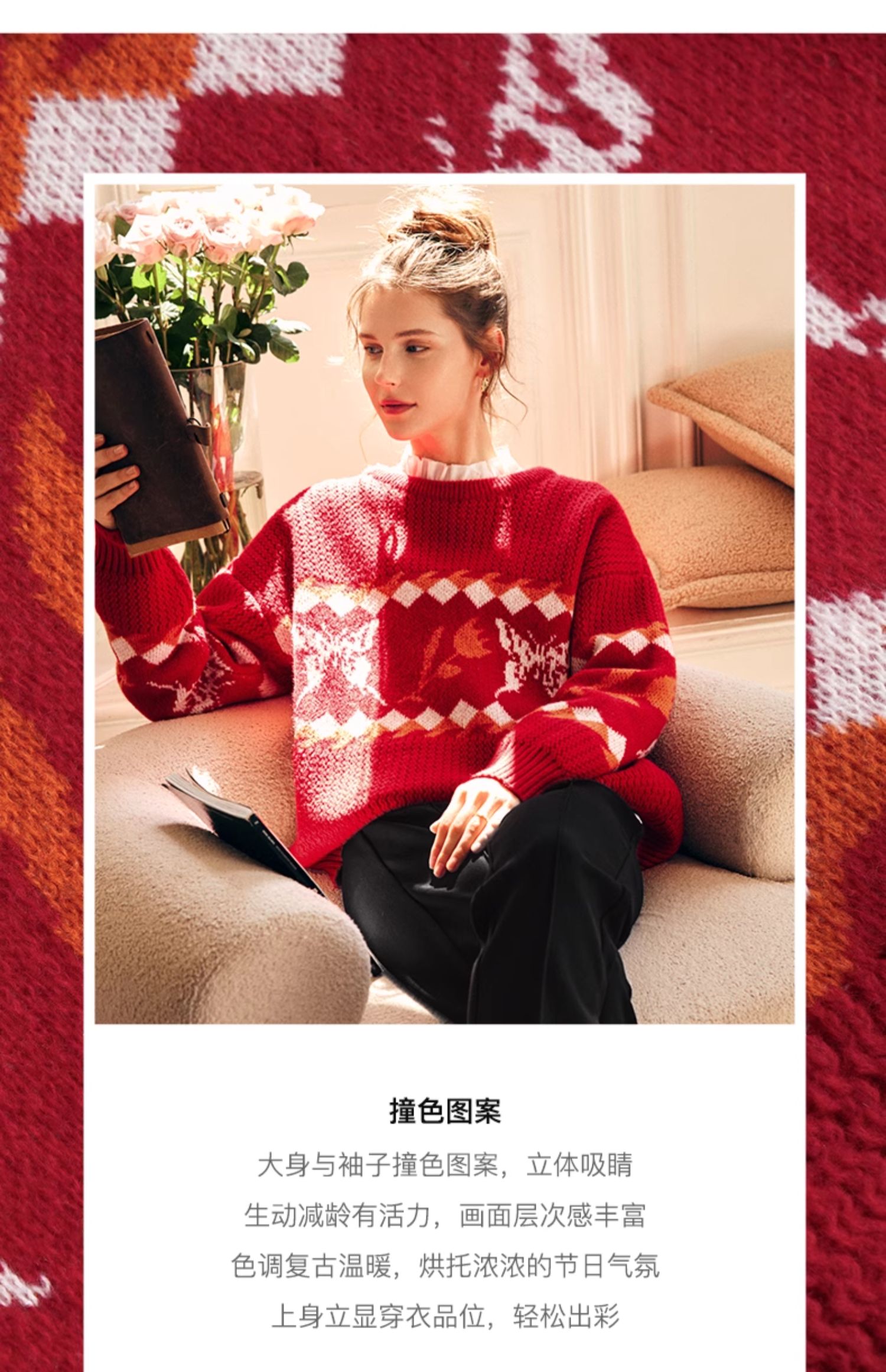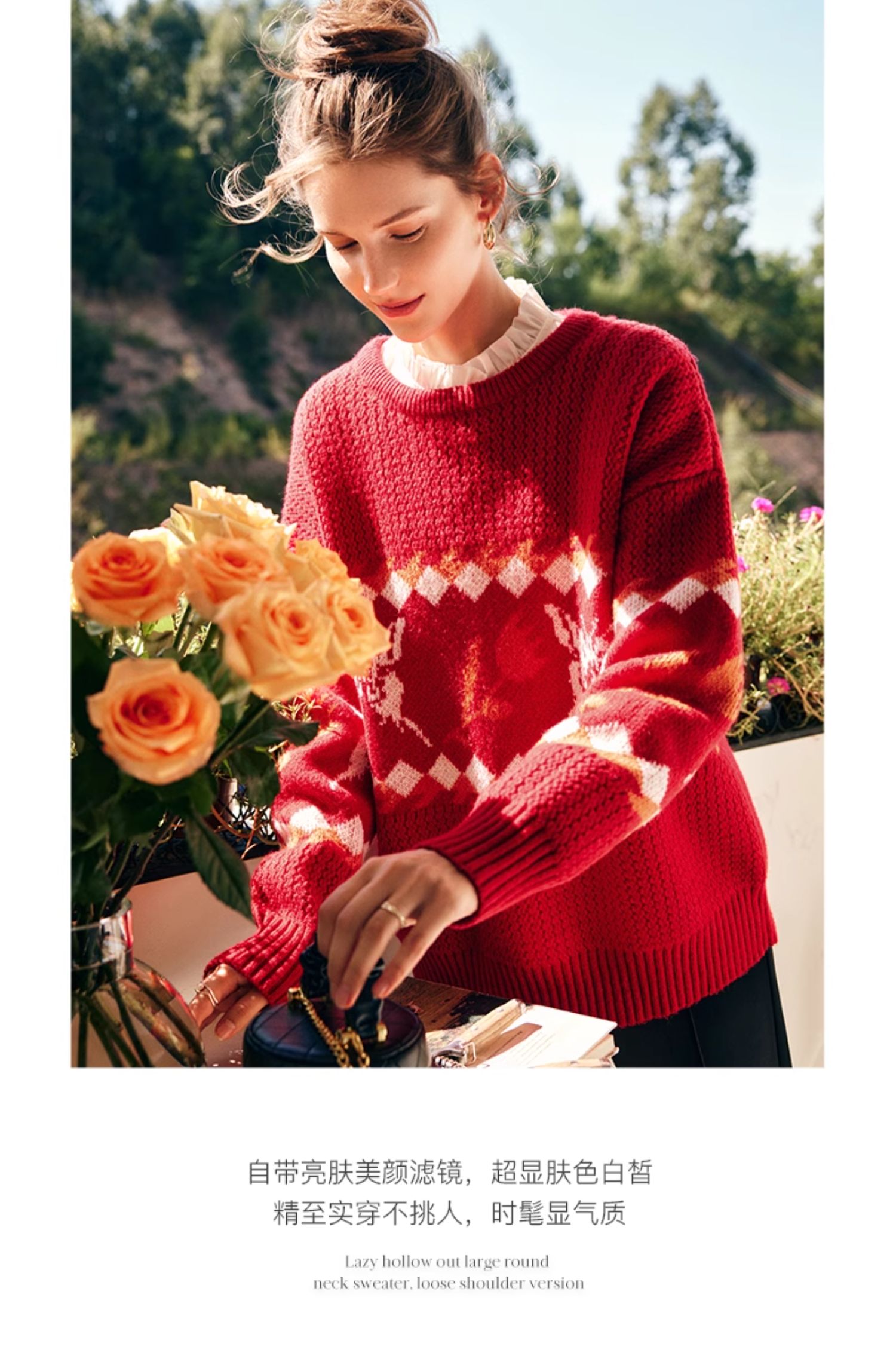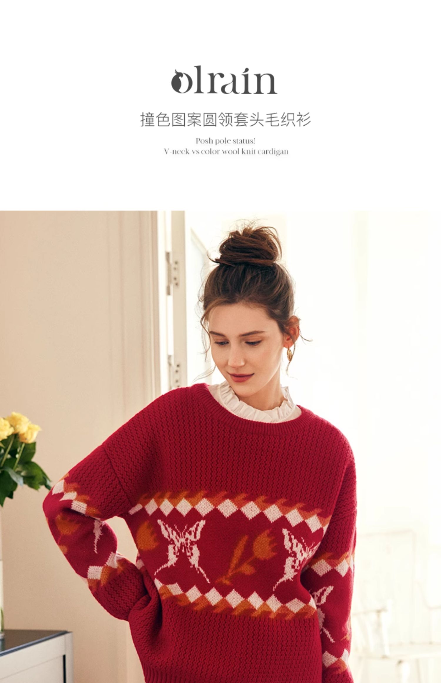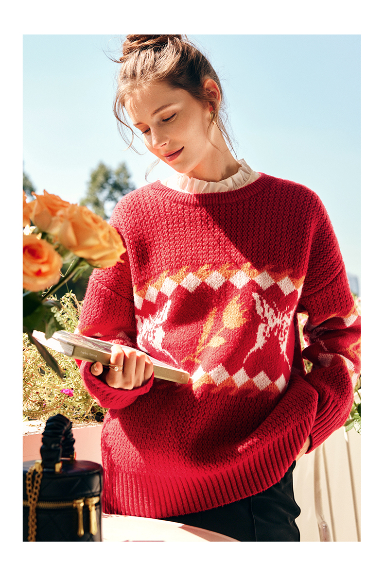 OLrain欧芮儿法式红色毛衣女秋冬2023年新款宽松慵懒毛绒针织上衣