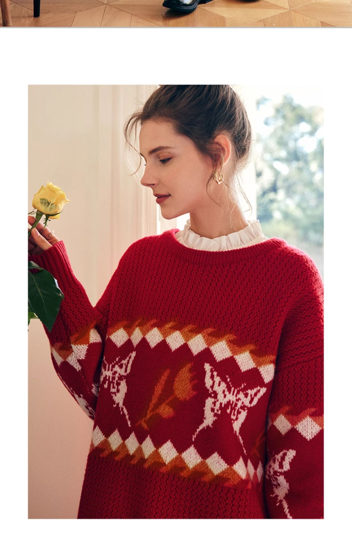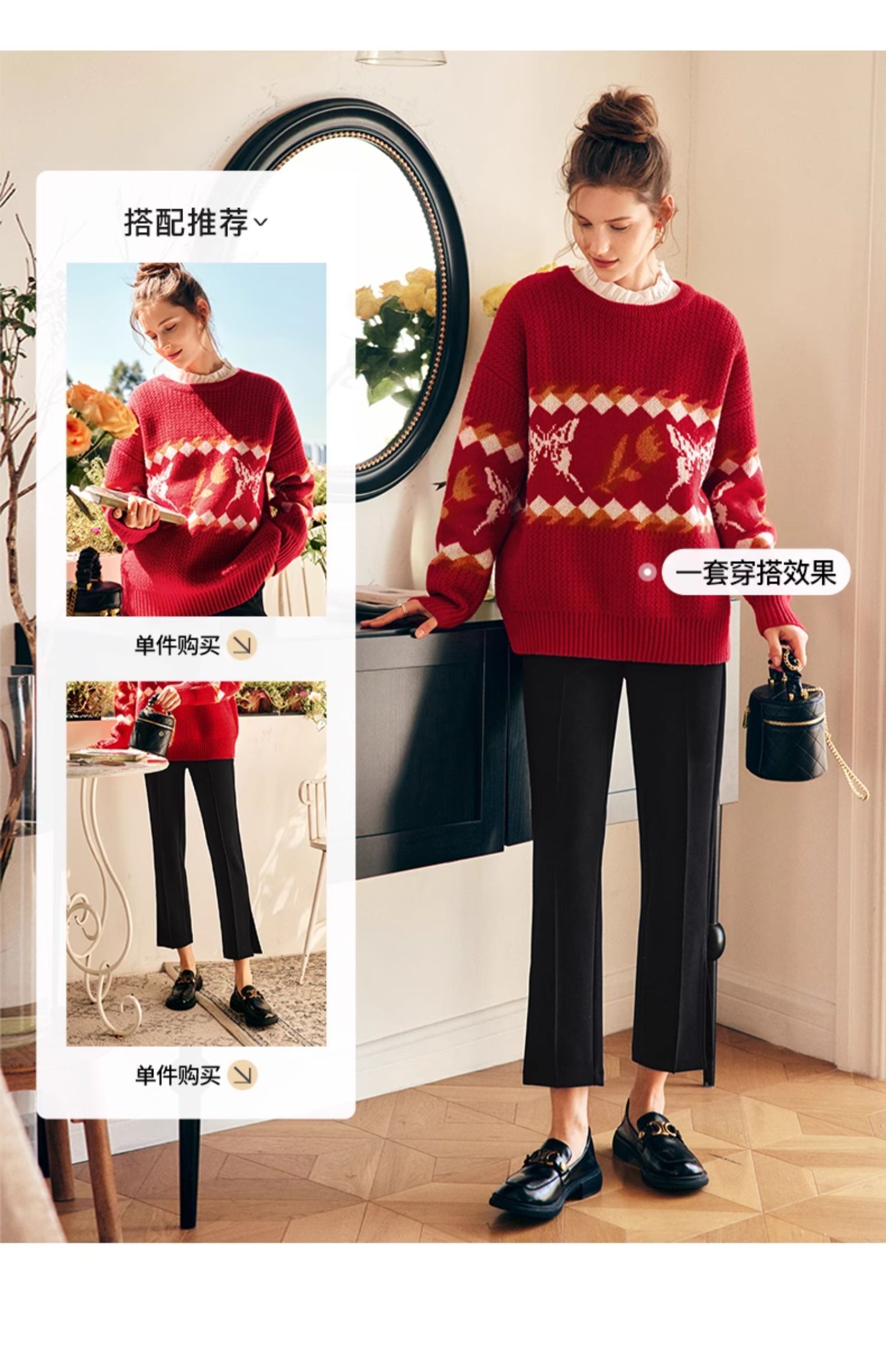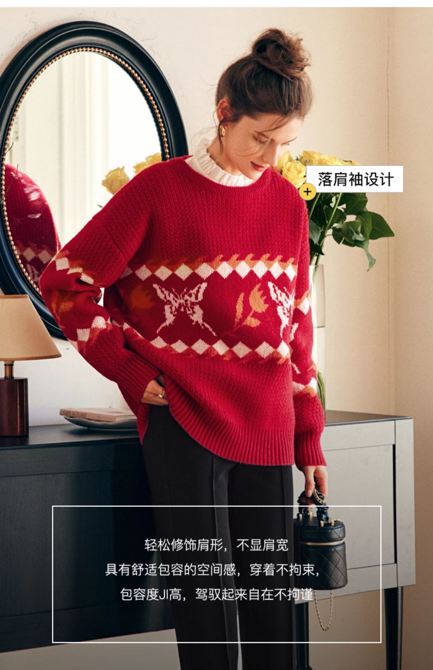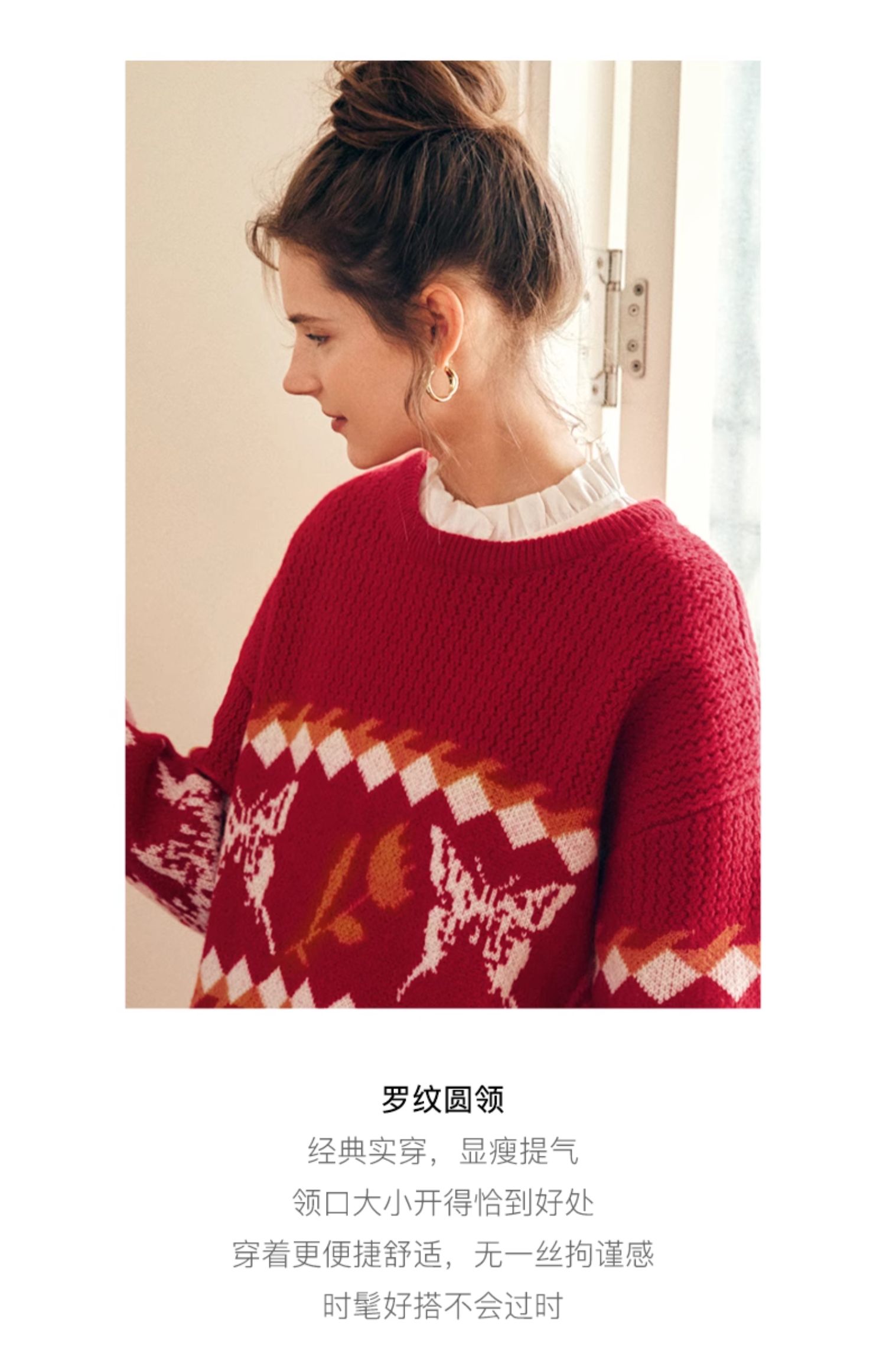OLrain欧芮儿法式红色毛衣女秋冬2023年新款宽松慵懒毛绒针织上衣