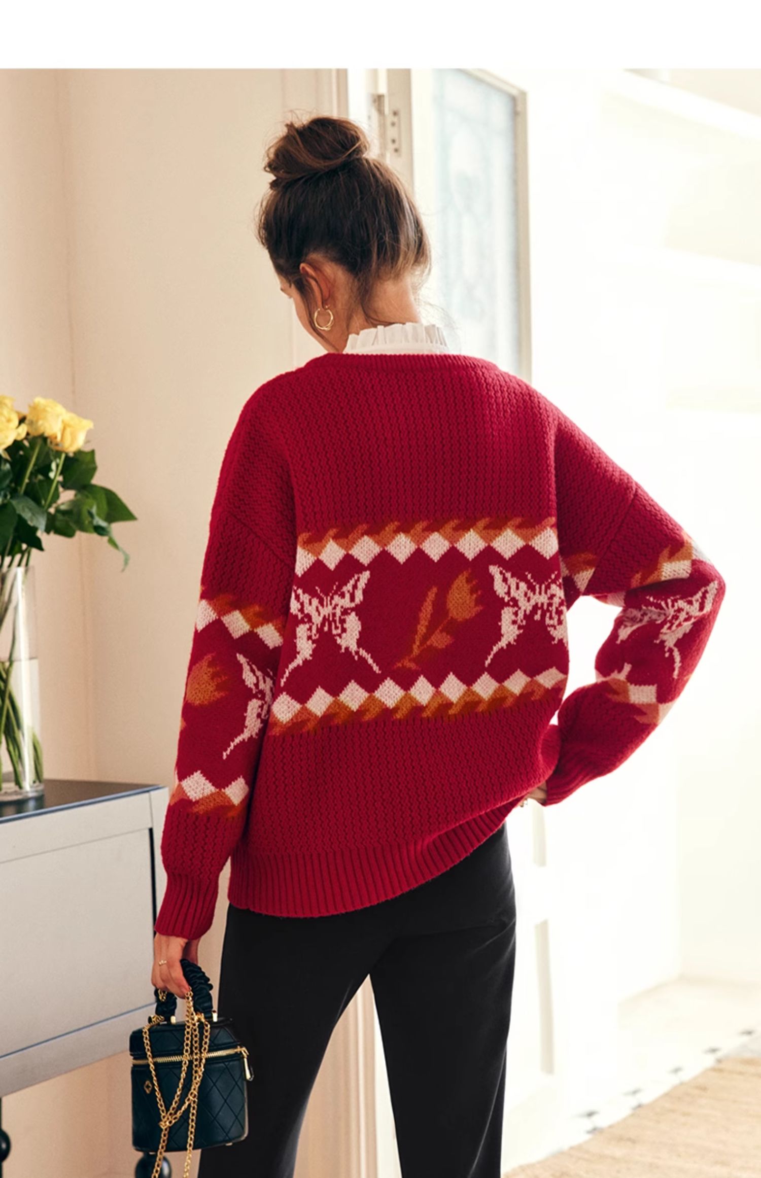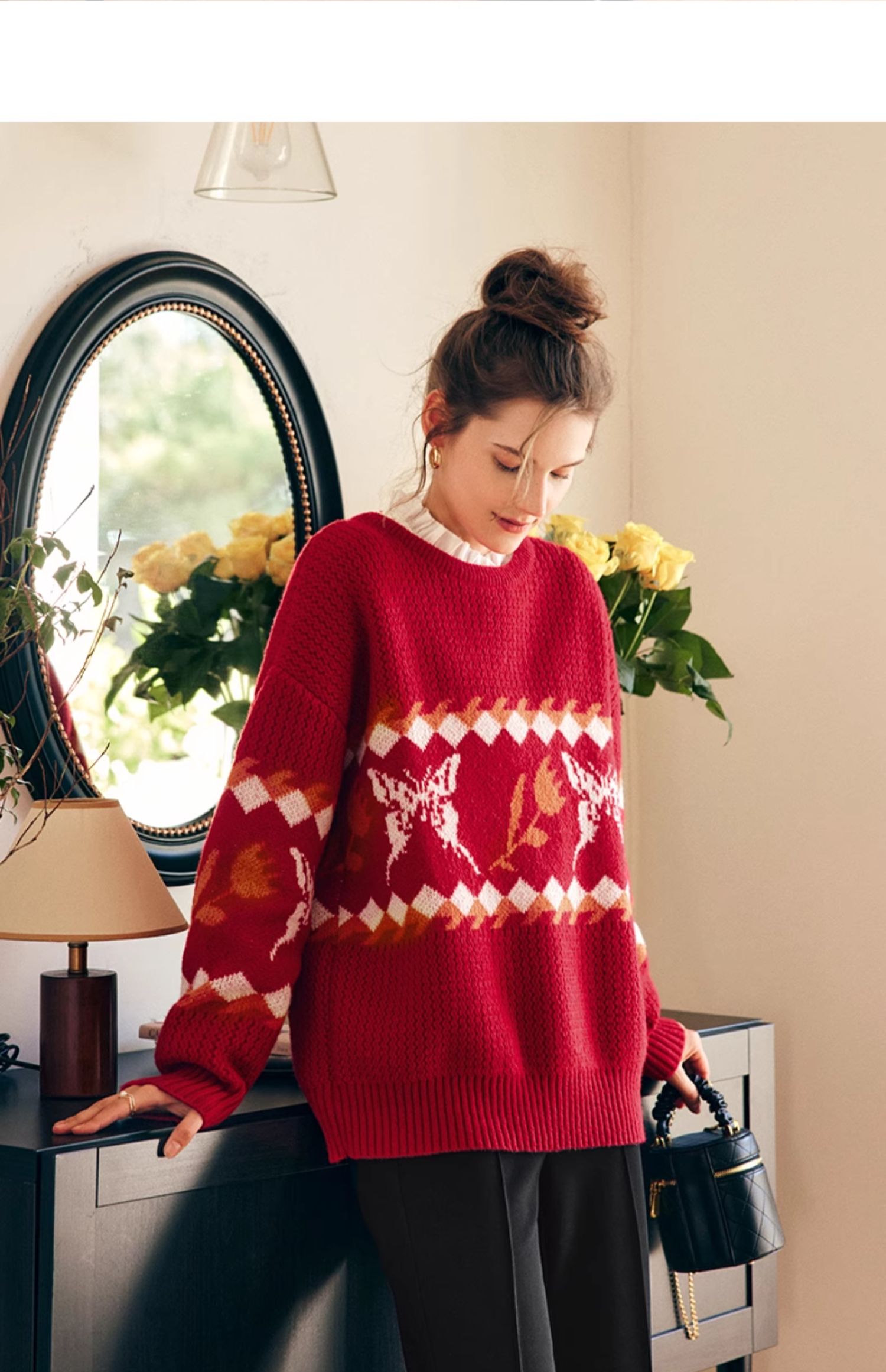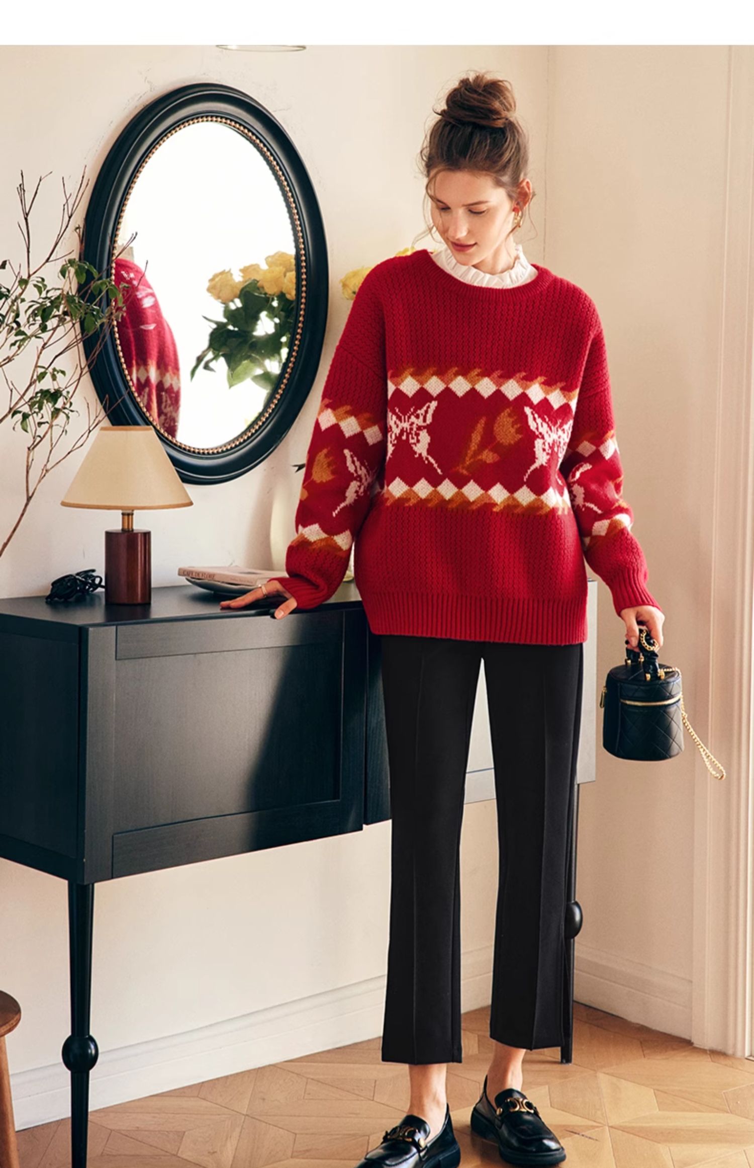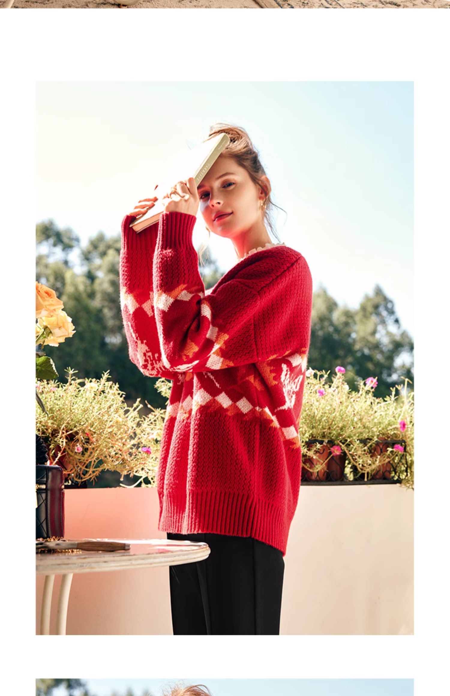 OLrain欧芮儿法式红色毛衣女秋冬2023年新款宽松慵懒毛绒针织上衣